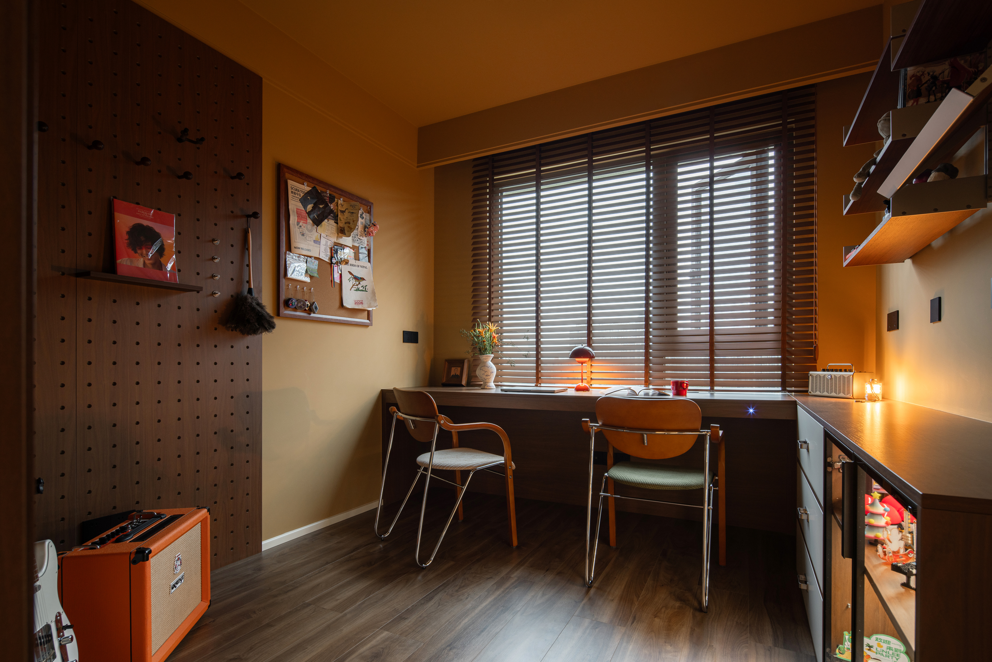 设计之初就是想要一个岛台以及书房要设计成乐器房+电竞房结合,这两个都实现啦。特别是书房,来家里玩的朋友都说最喜欢这个房间,黄色的墙面加大面积的洞洞板给人眼前一亮的感觉。客厅电视墙也属于比较惊喜的地方,在家里最显眼的位置并且色彩很亮眼。