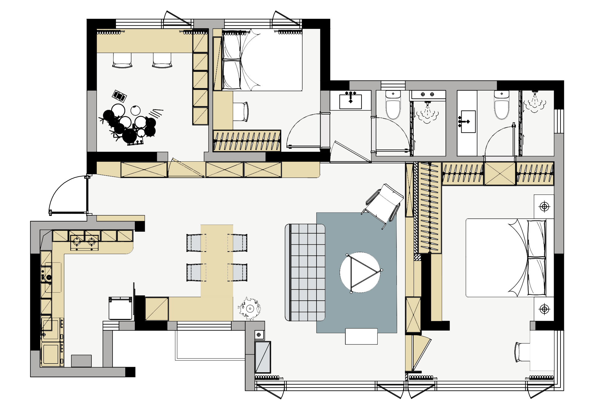 项目定位:因为是精装房改造,但是坚持绝不将就的原则,保留适合的部分,拆除不需要的部分,大刀阔斧的改才能一步到位。