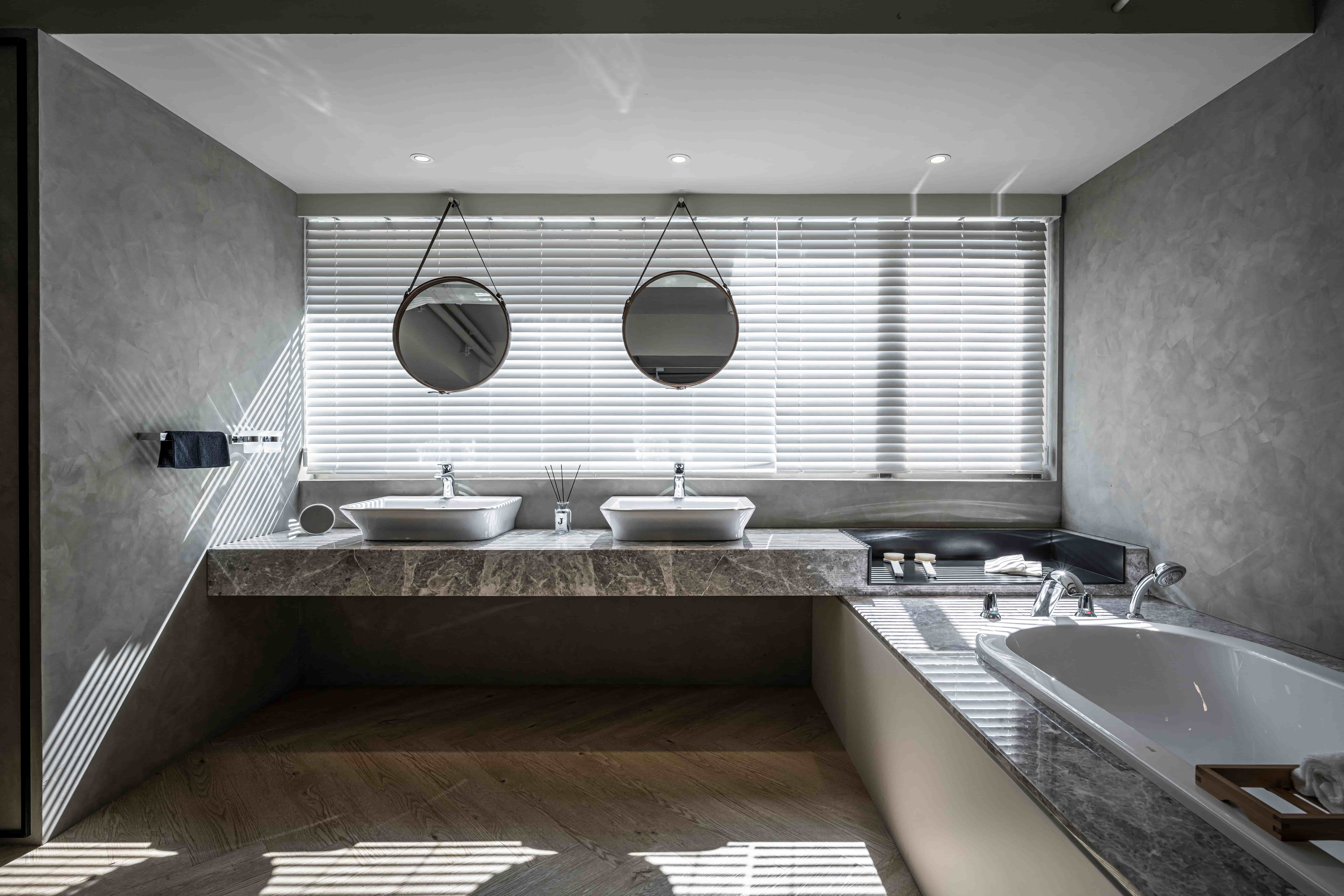 设计选材:選用藝術塗料、鐵件與大板磚,透過材質原始肌理展現長效美學。以耐候性高的天然建材結合 LED 影音系統,實踐低碳減損並降低汰換率,達成永續與經濟效益的平衡
