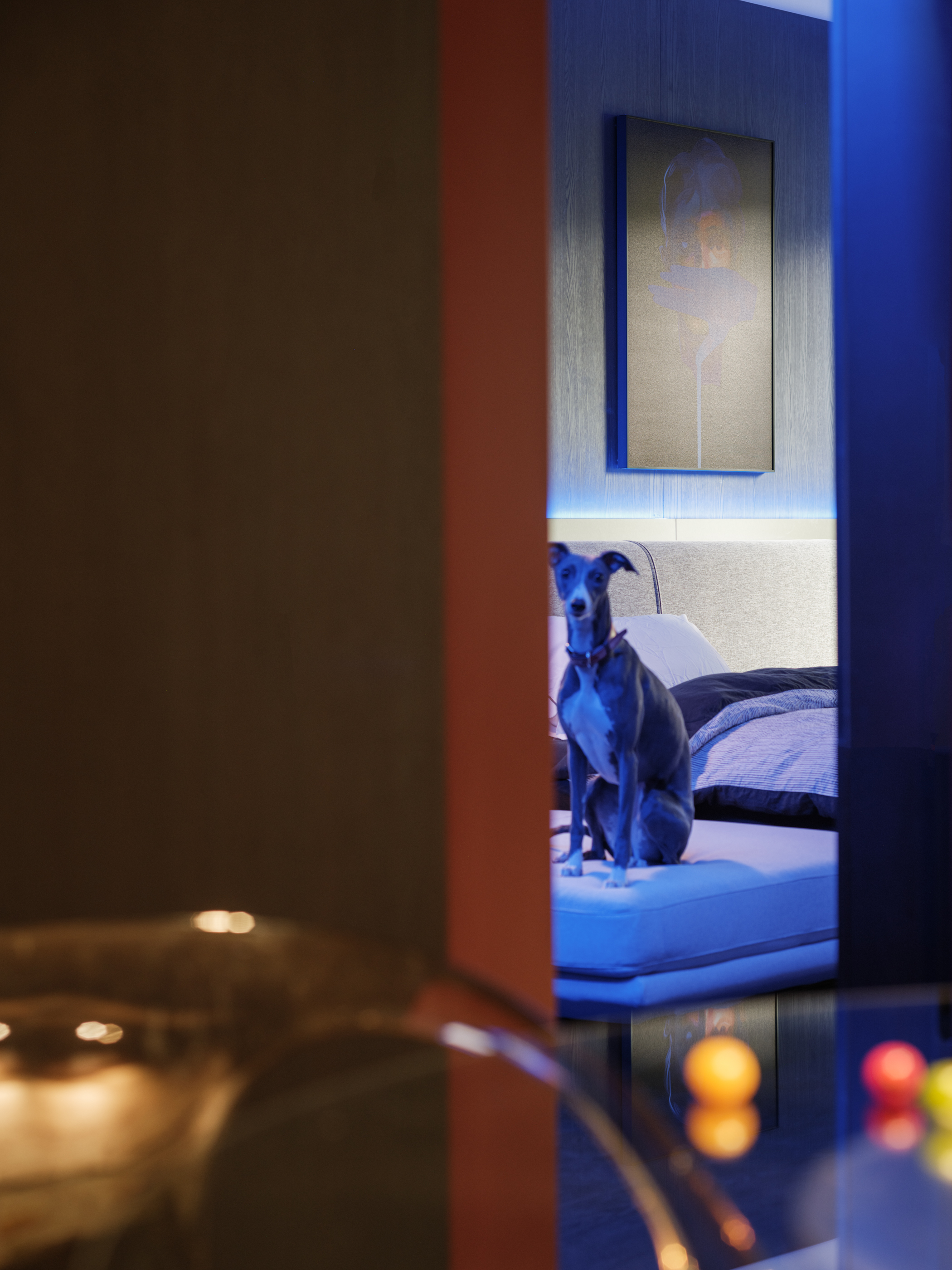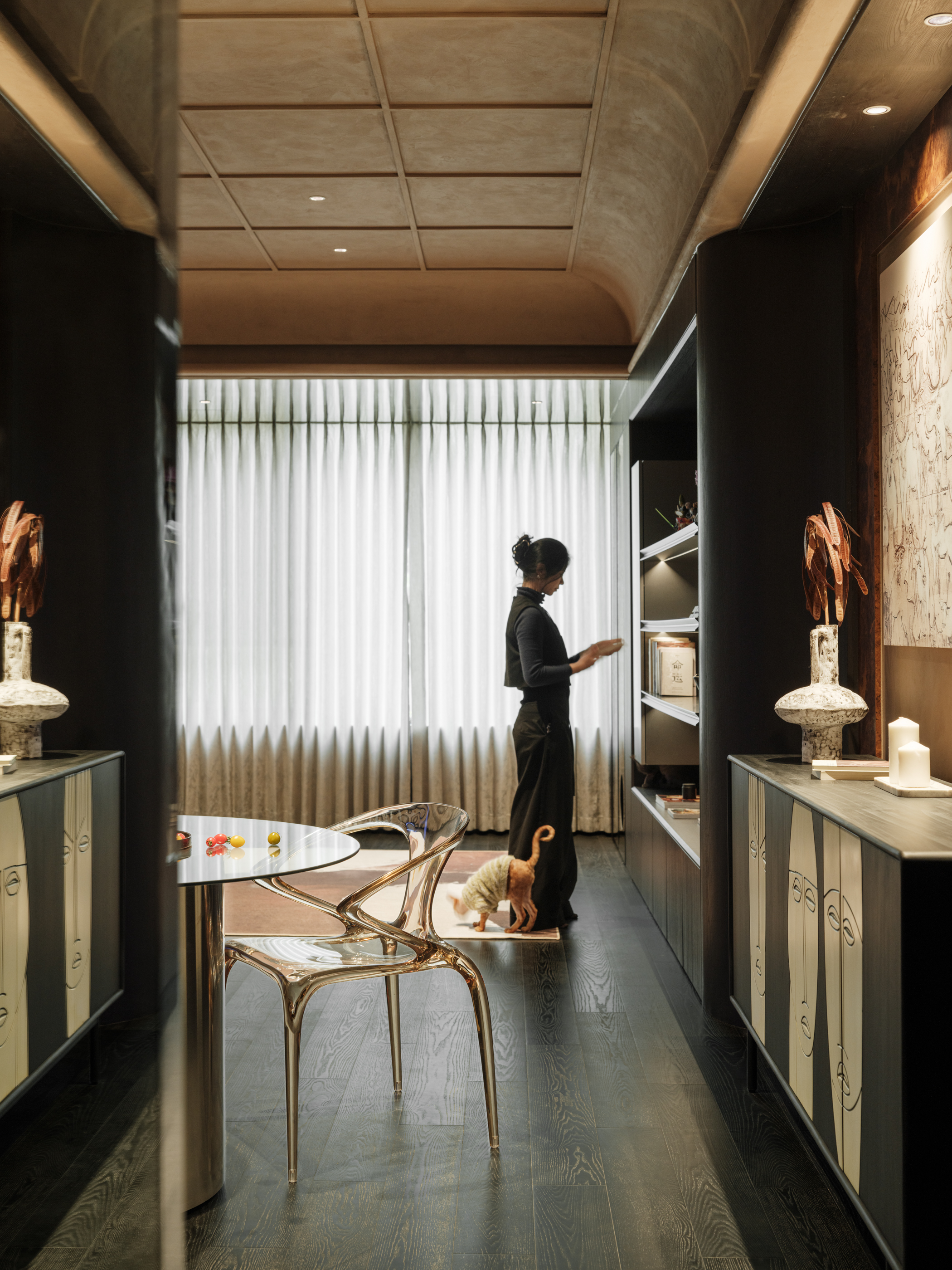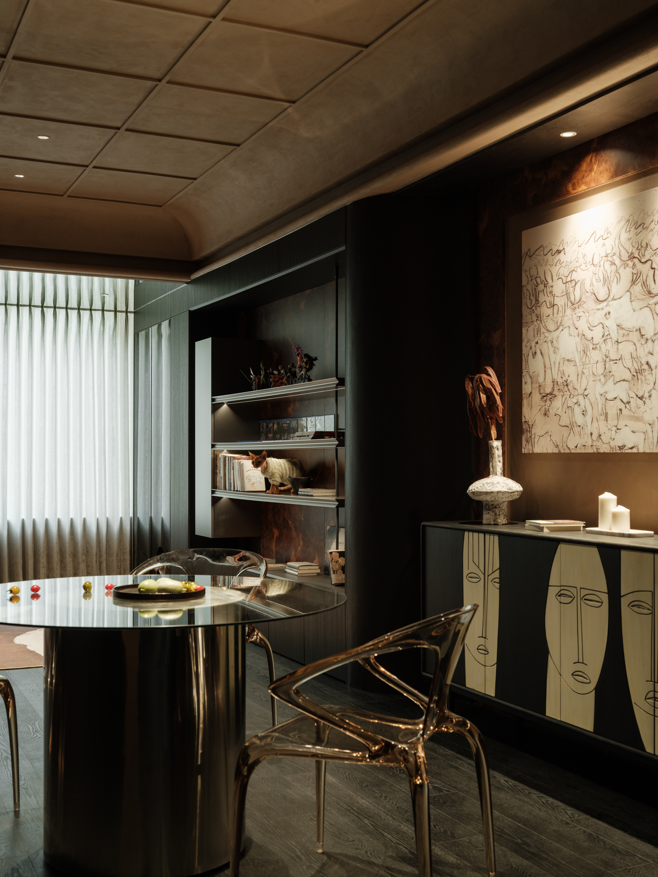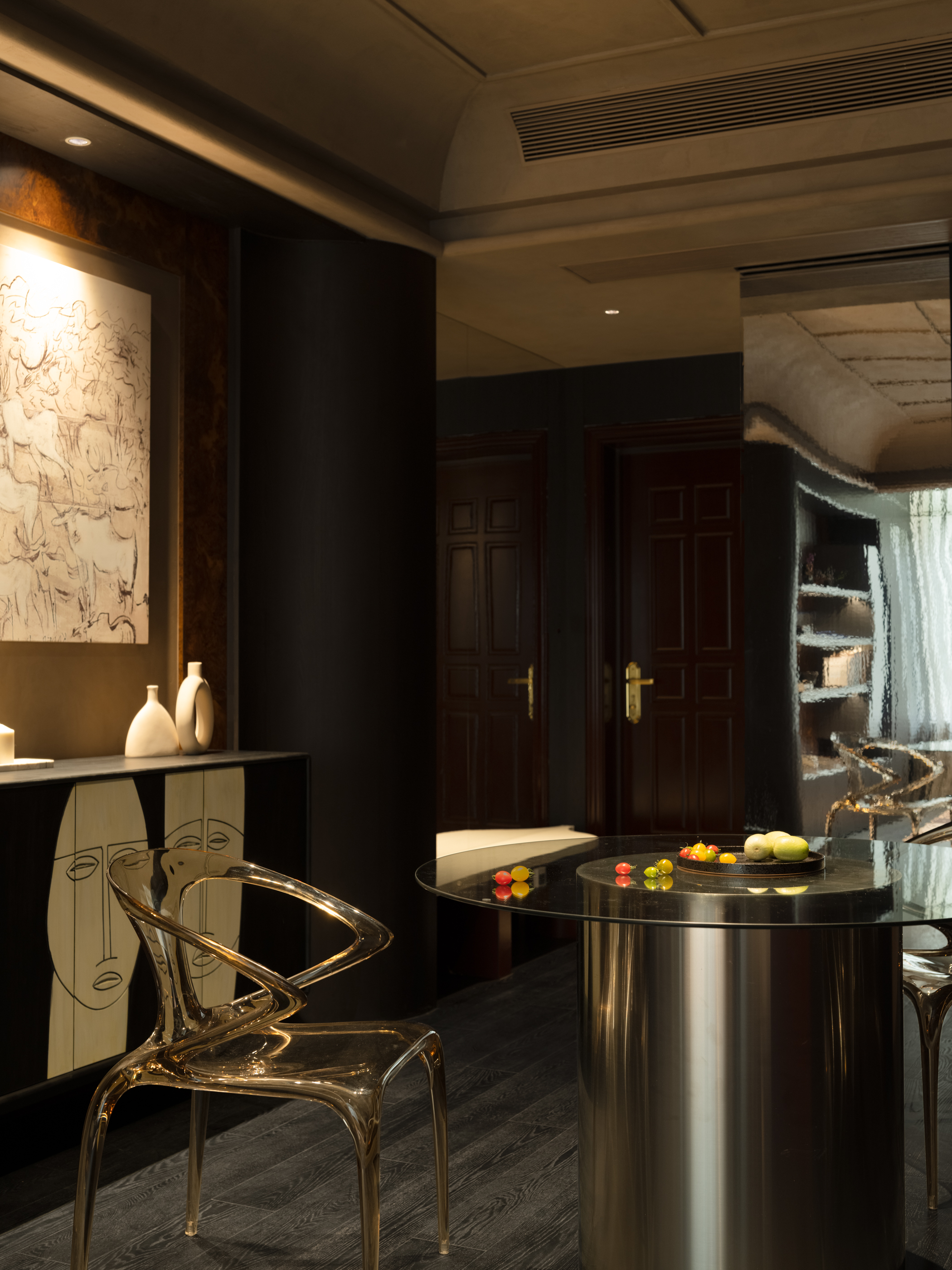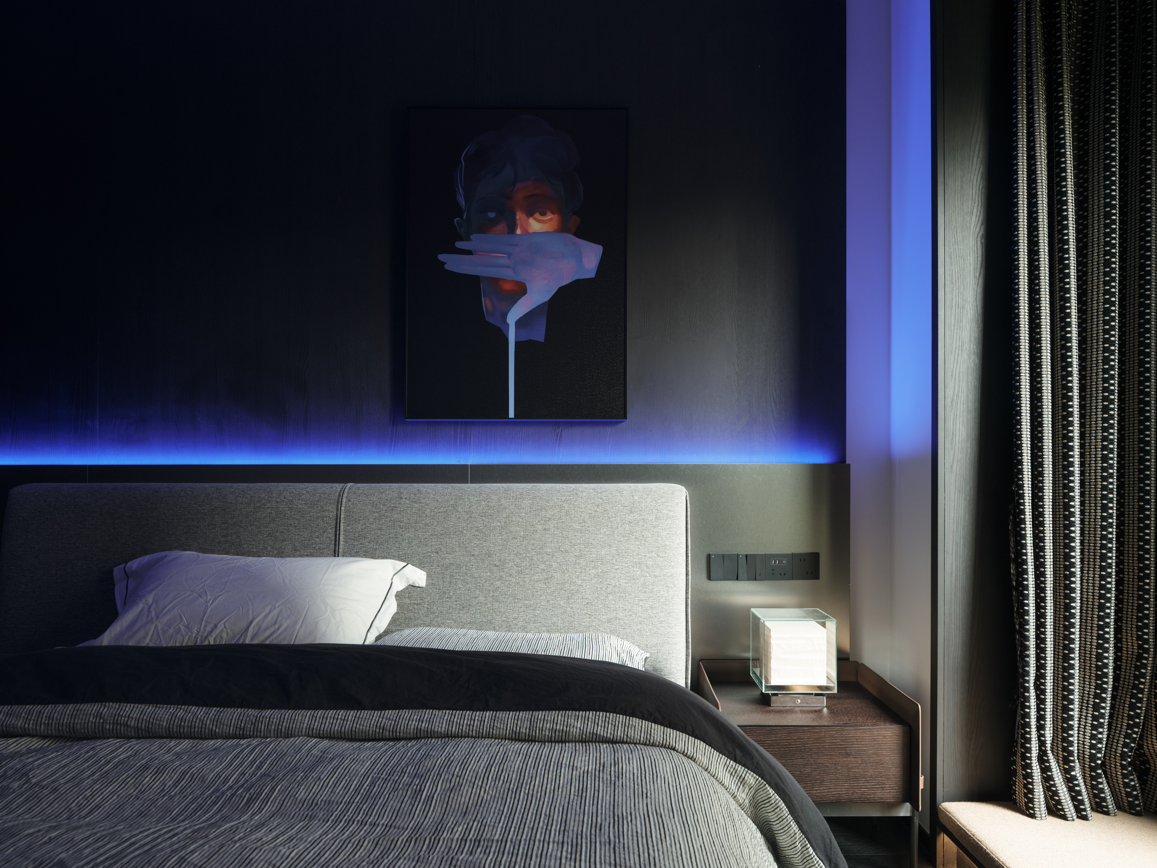 项目定位:以“暗黑轻奢+宠物共生”为设计内核,打破传统暗黑系空间的冷硬感,将宠物的陪伴属性与高端轻奢的材质、艺术化的设计语言融合,打造“人宠共居的艺术奢宅”。
