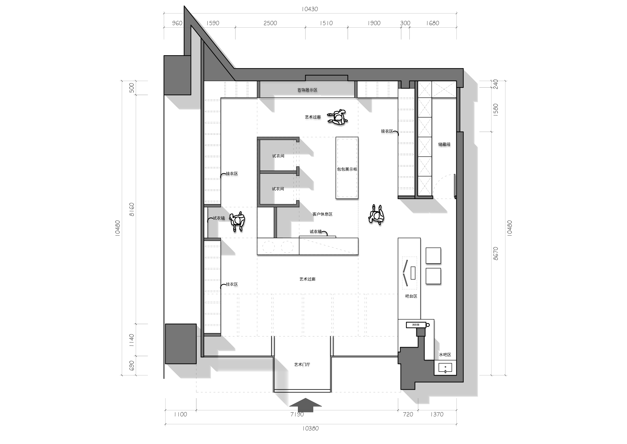 项目定位:设计策划:以极简美学构建空间,主打中性色调与柔和照明,营造沉浸式购物体验。