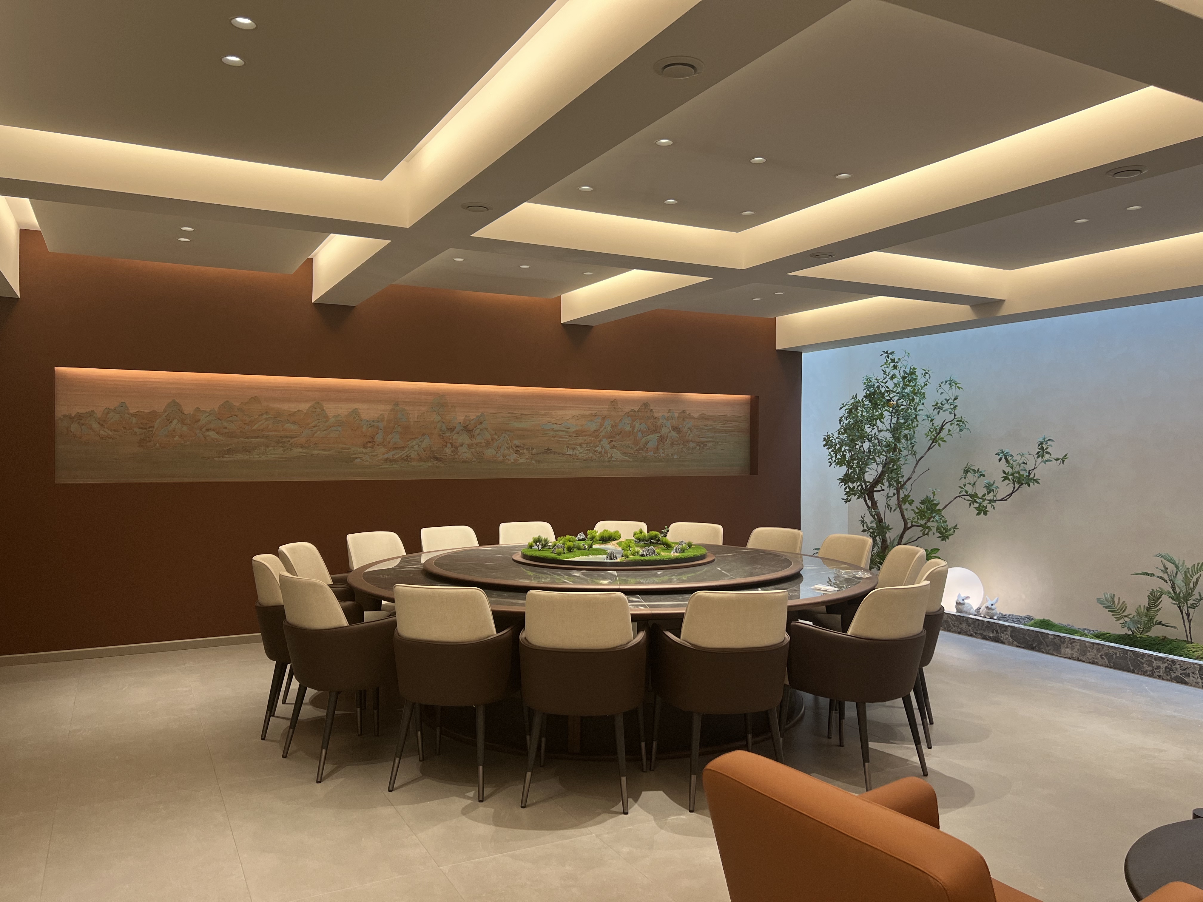 以东方意蕴为骨,现代雅奢为翼的核心理念,融合中式宴请的礼序文化与现代商务的舒适需求,打造出兼具仪式感、私密性与社交性的复合型空间,适配企业顶级客户接待、重要商务洽谈宴请等高端场景。