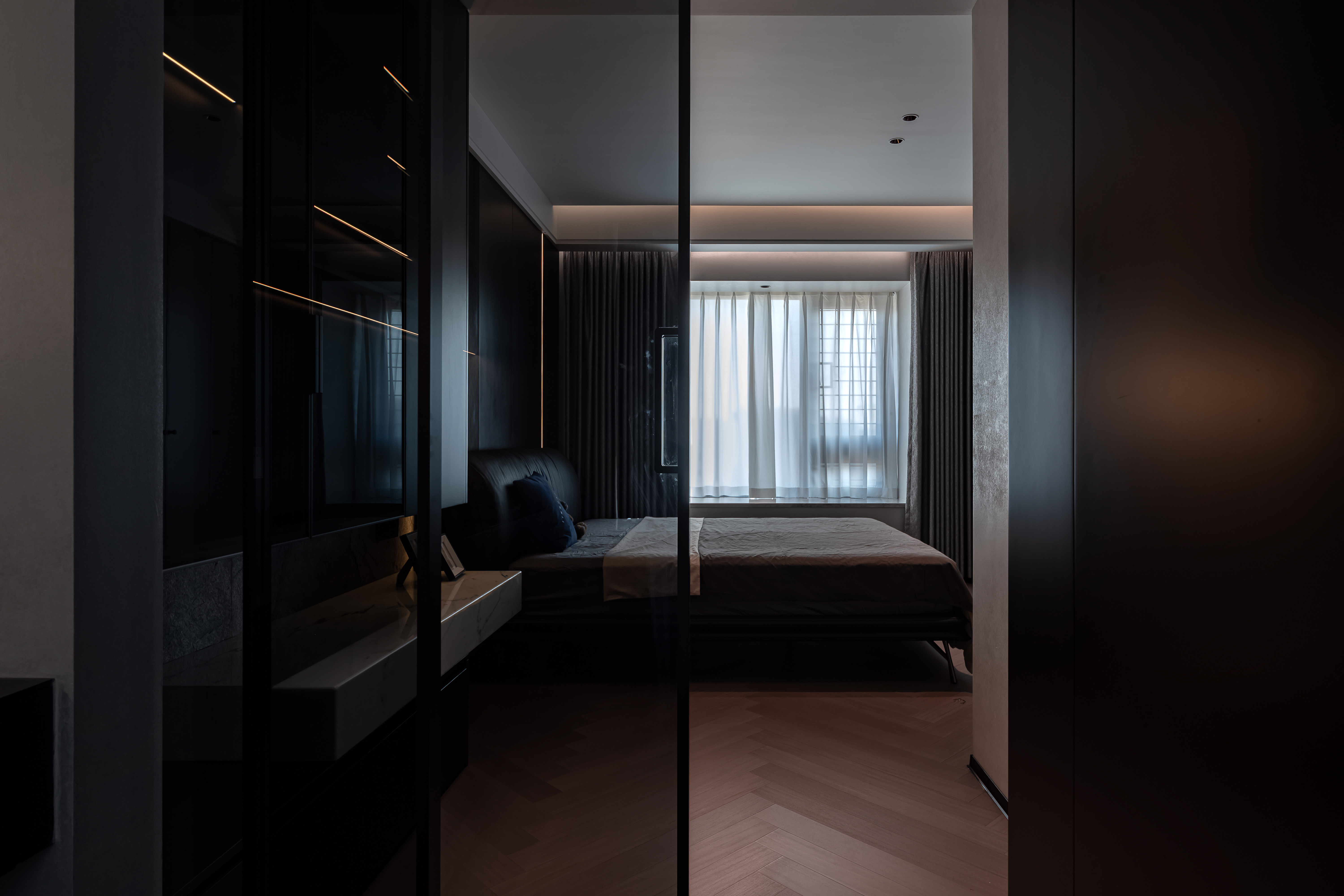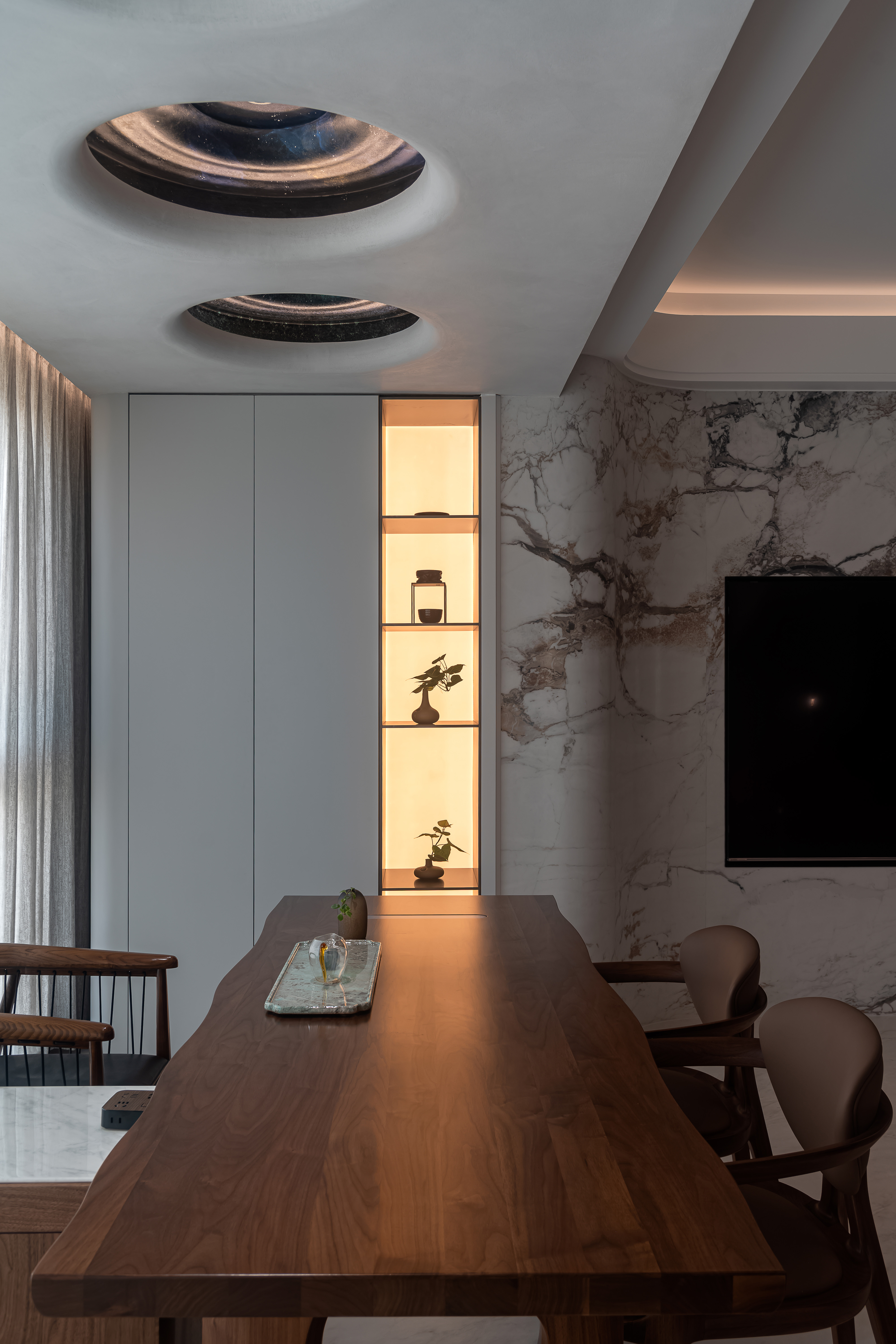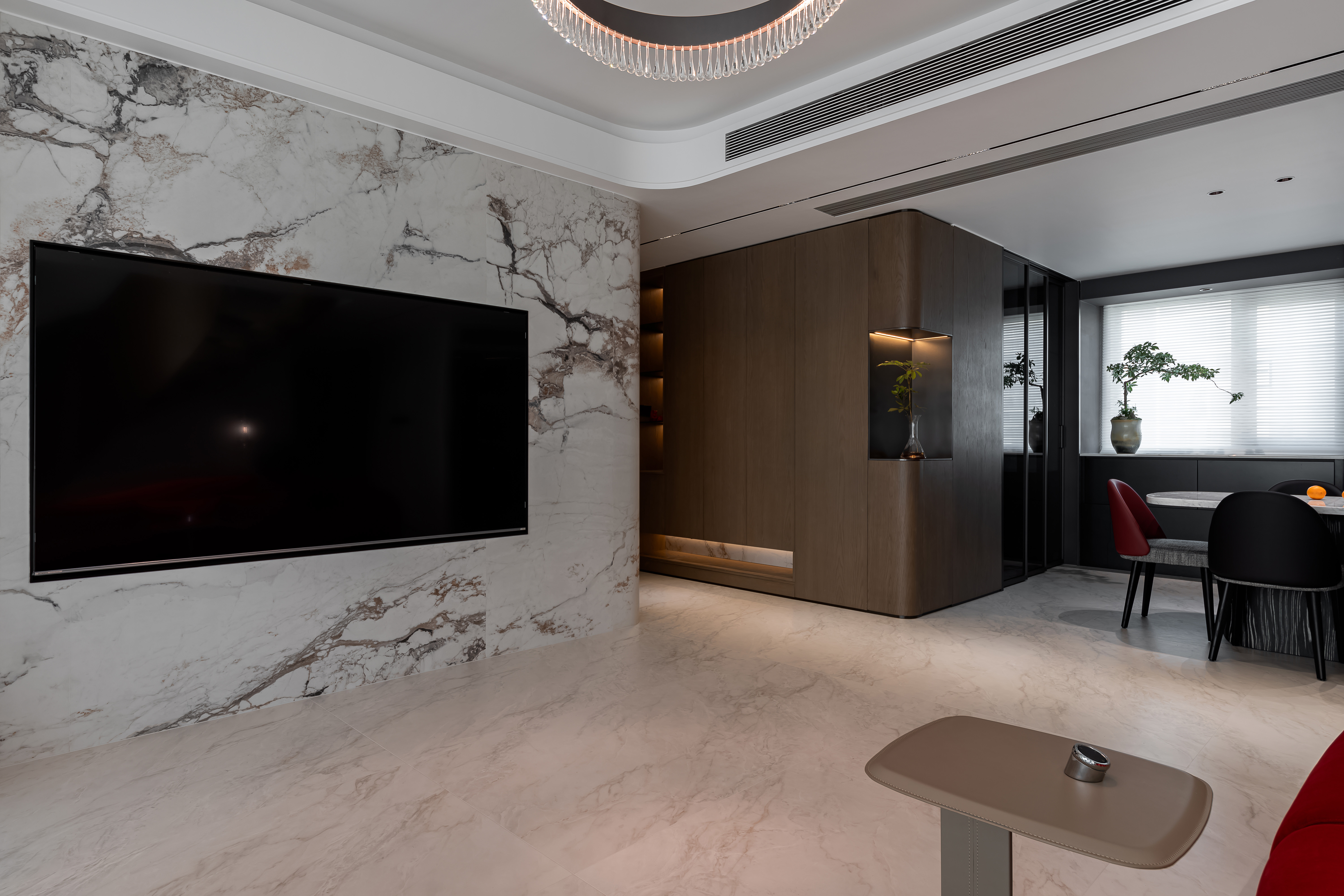 项目定位:是现代轻奢风格的室内空间设计,整体呈现出高端、精致且富有艺术感的氛围