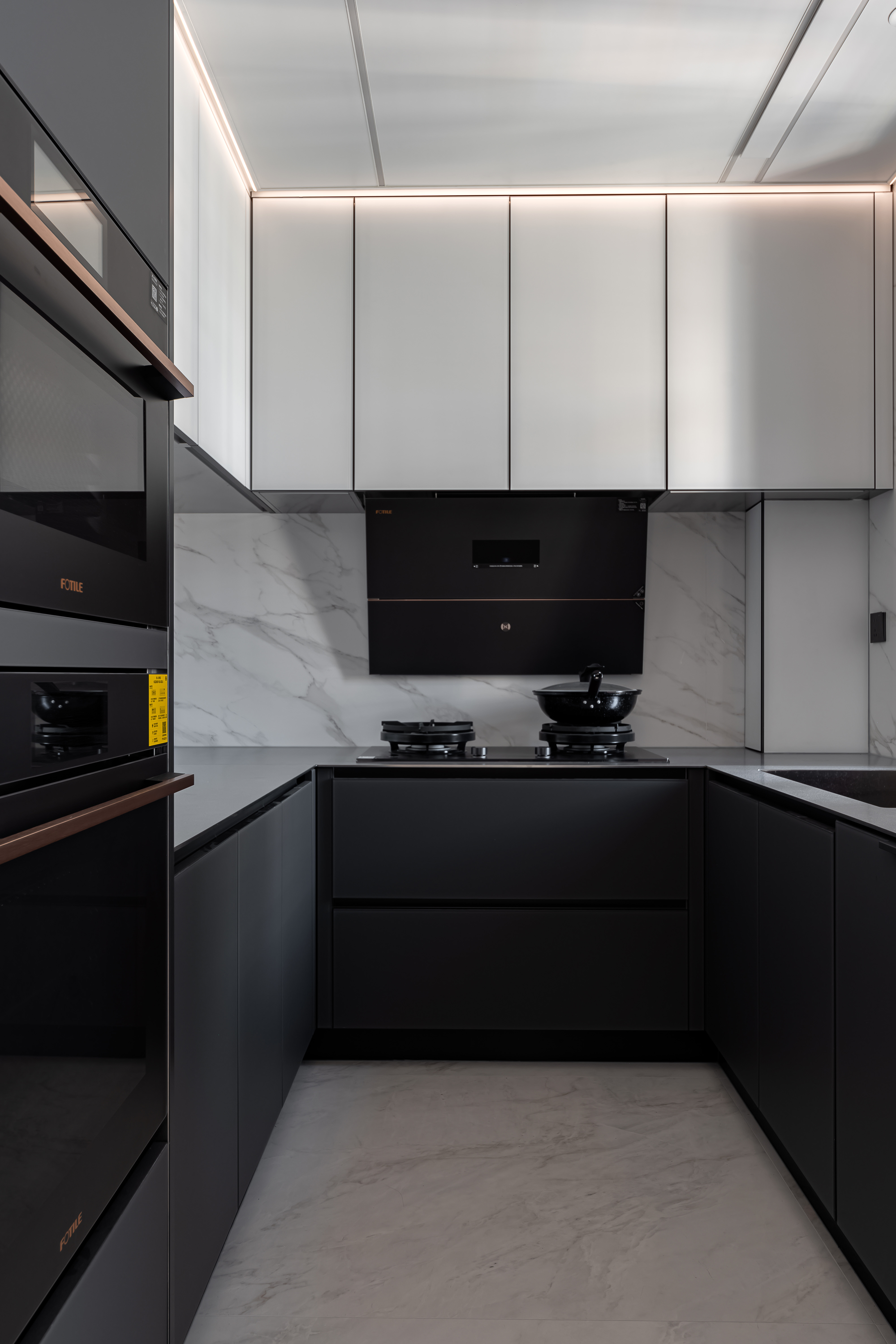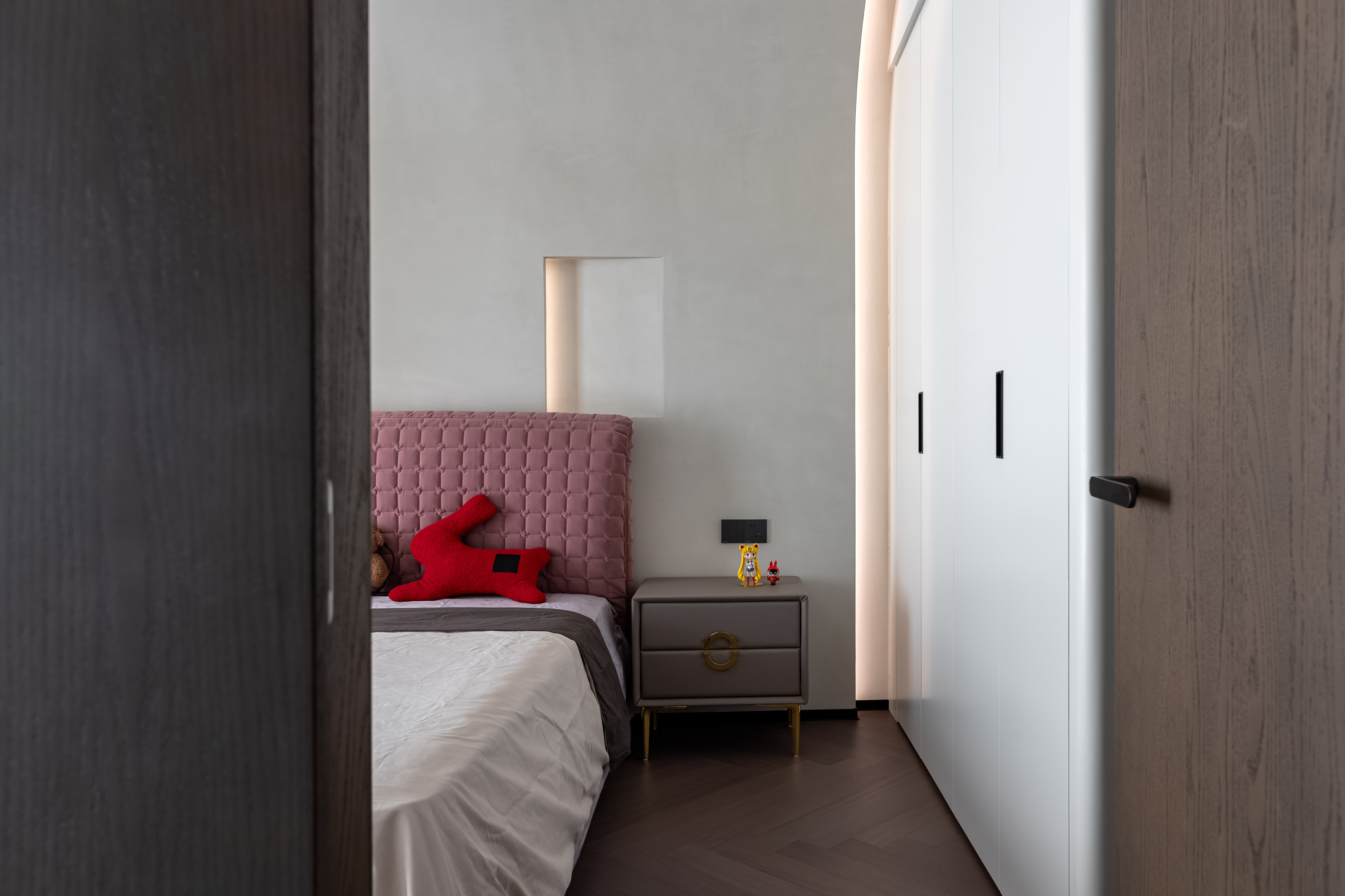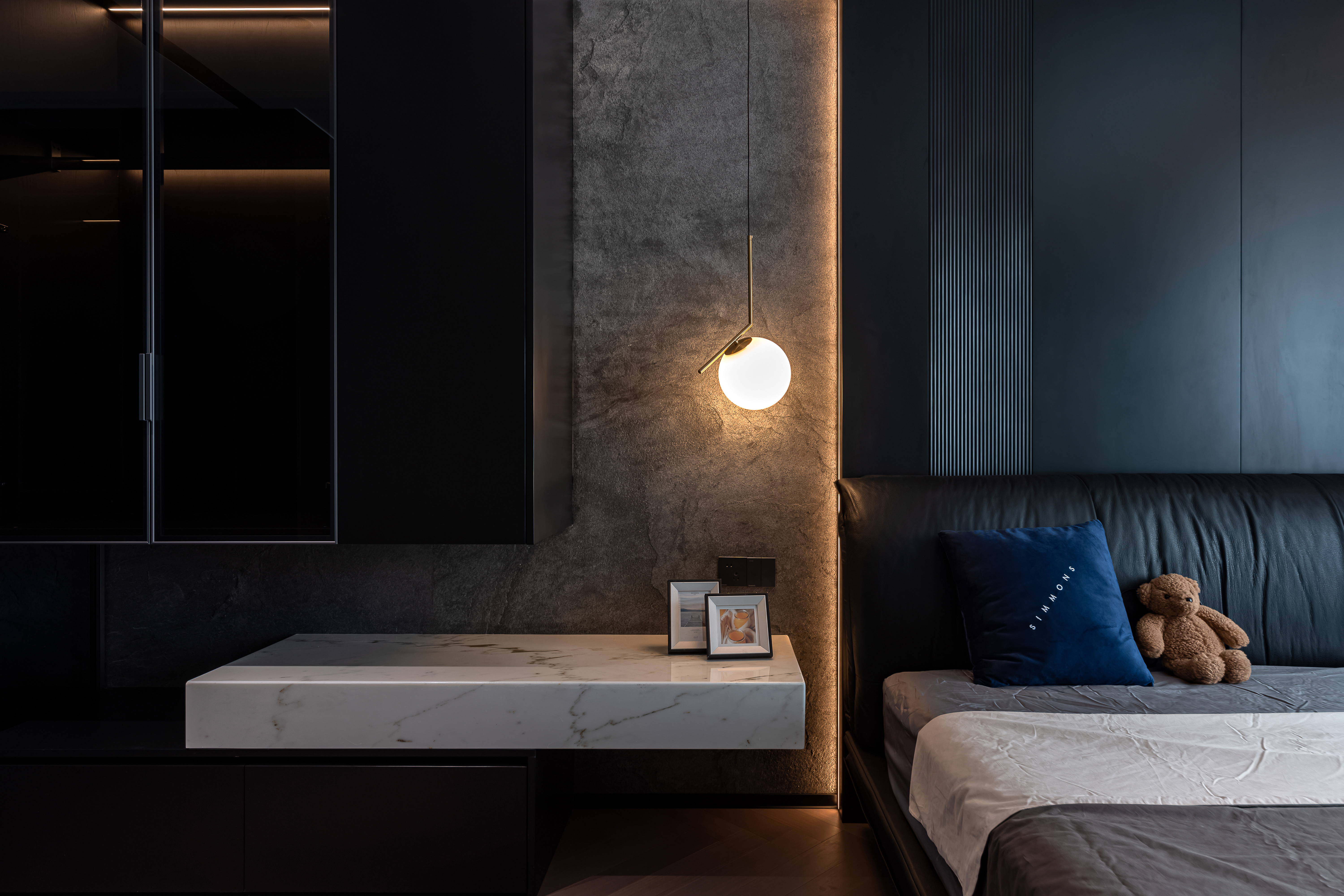 用户体验:采用弧形灯带、水晶吊灯等多种灯光形式,重点区域(如大理石装饰面、柜体凹槽)辅以氛围灯,营造出温馨且高级的照明效果,是业主想要的方式。