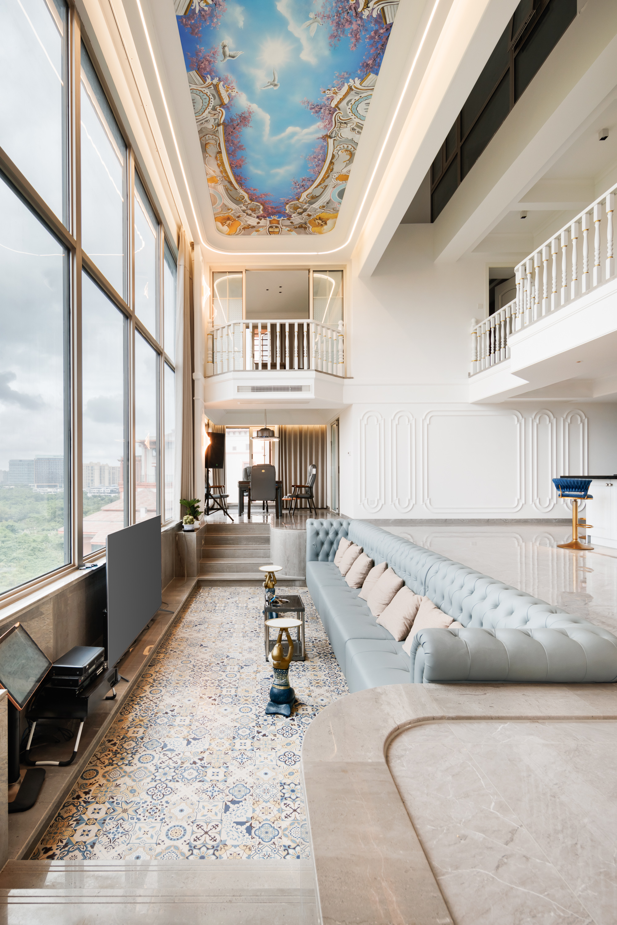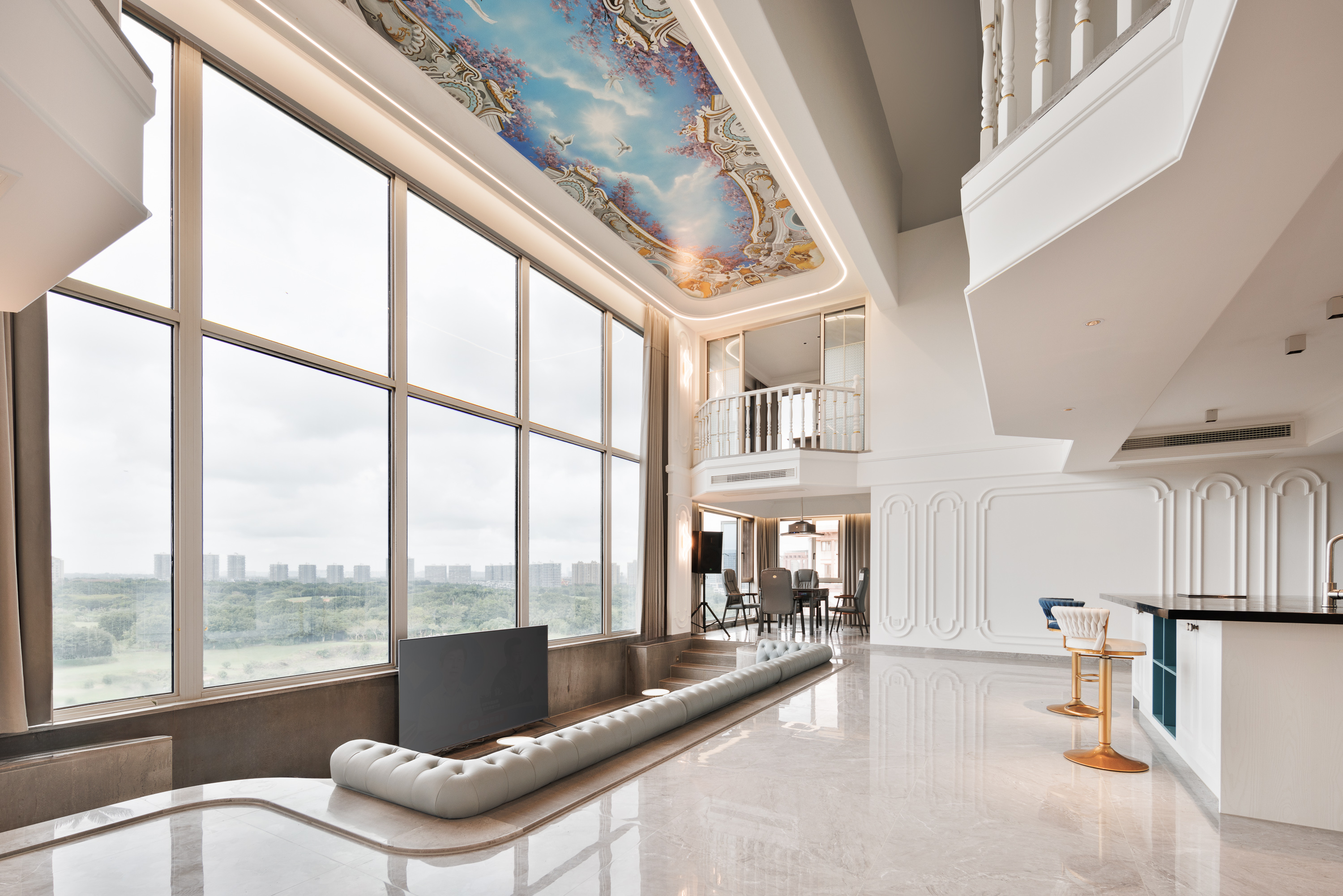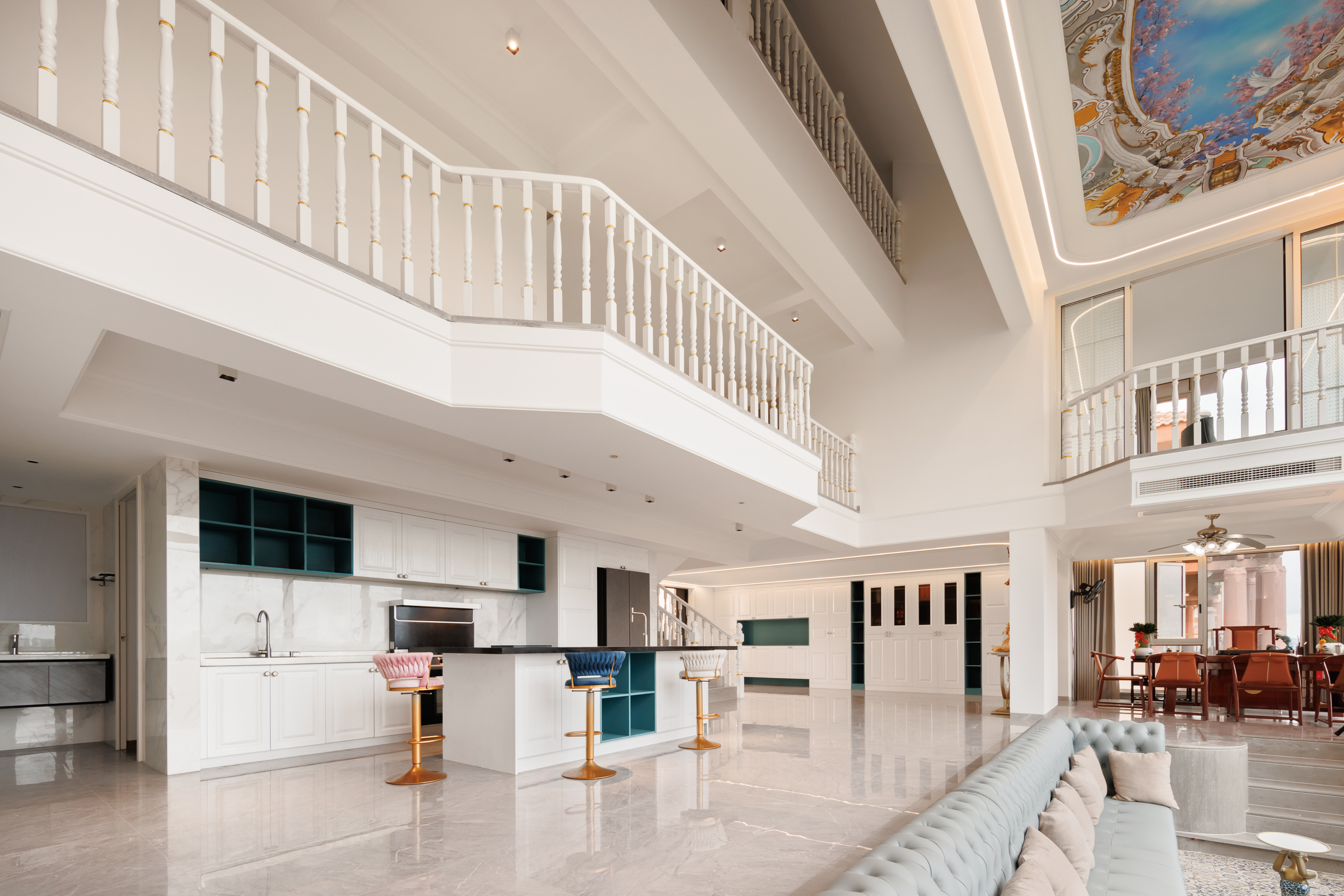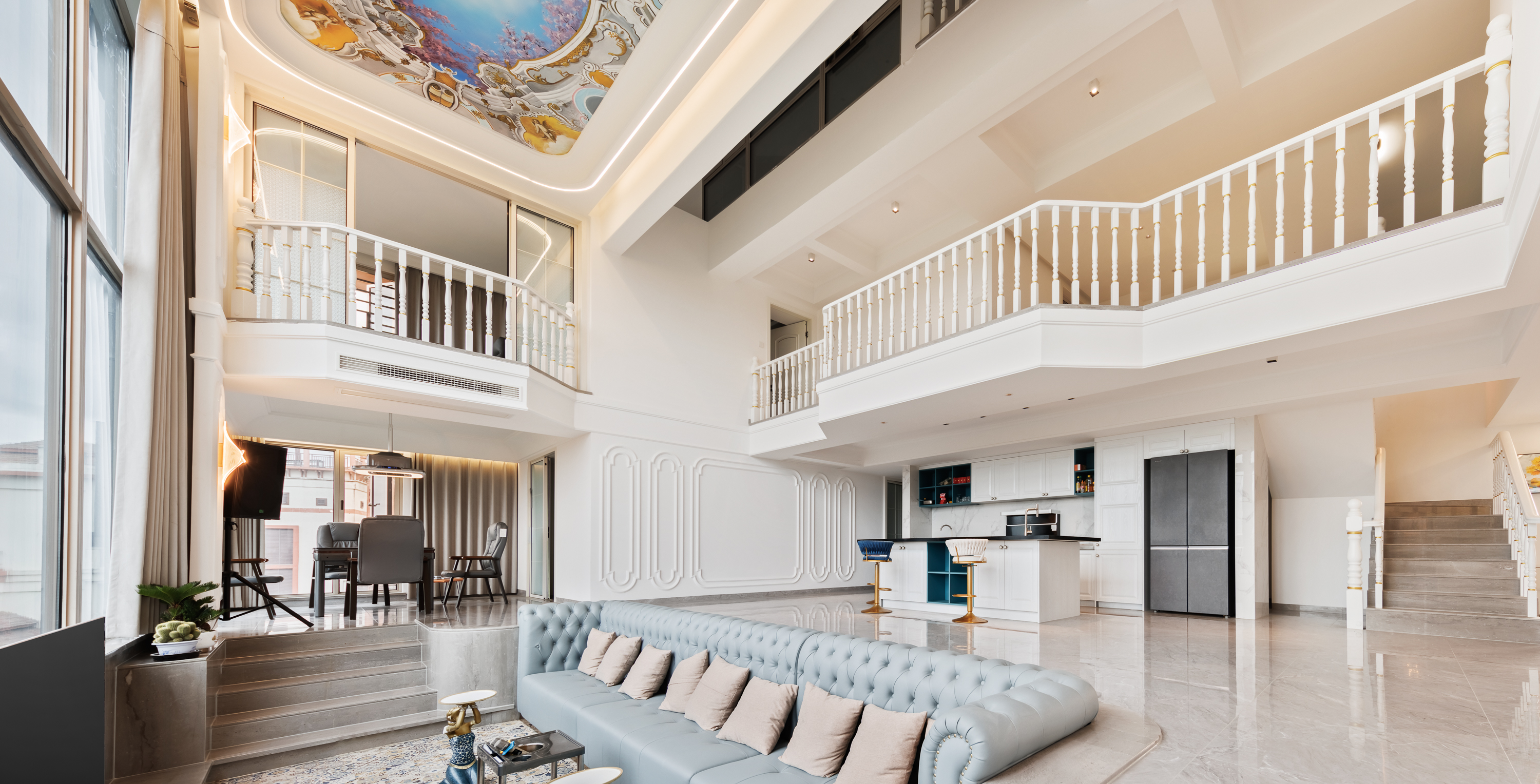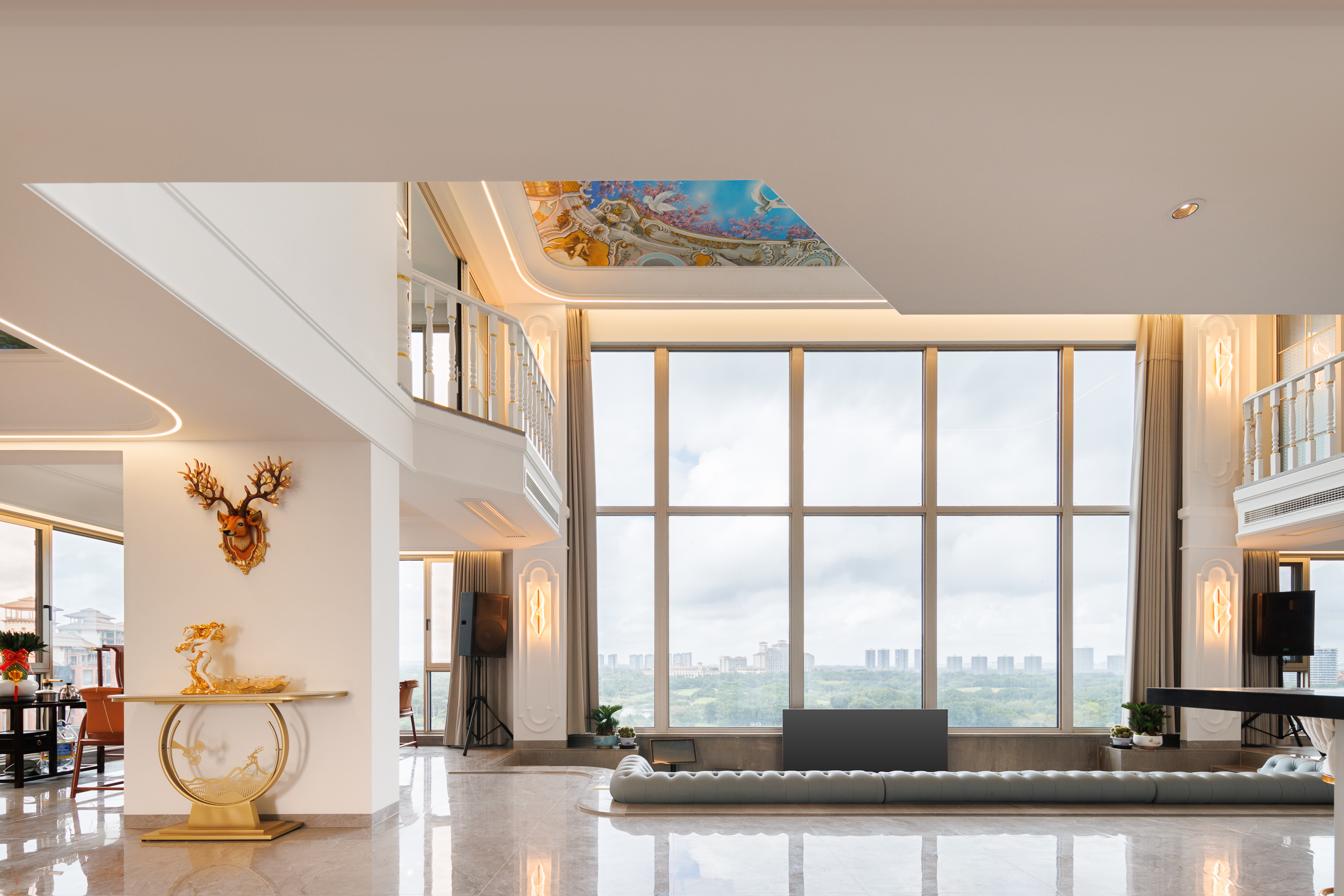 空间意境:法式古典/宫廷风格:以凡尔赛宫为蓝本,恢弘大气,大量使用金色、雕花、水晶、油画,适用于挑高空间。