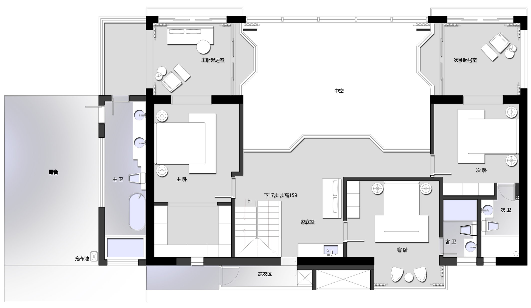 · 对称轴线:家具摆放、门洞设计常沿中轴线对称布局。