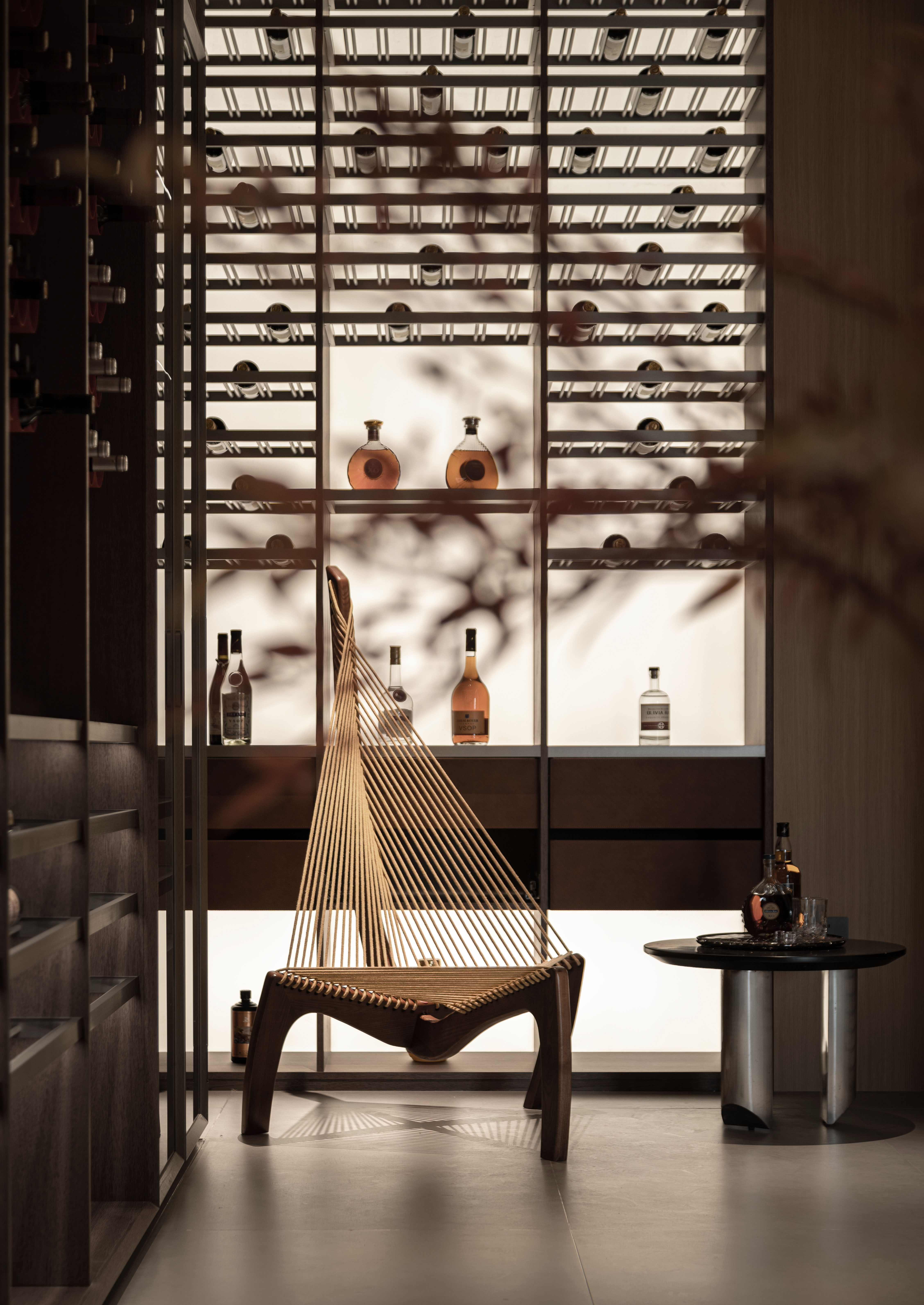 透光的酒柜与古琴座椅,如诗如画。 The translucent wine cabinet and the guqin seats are as beautiful as a painting.