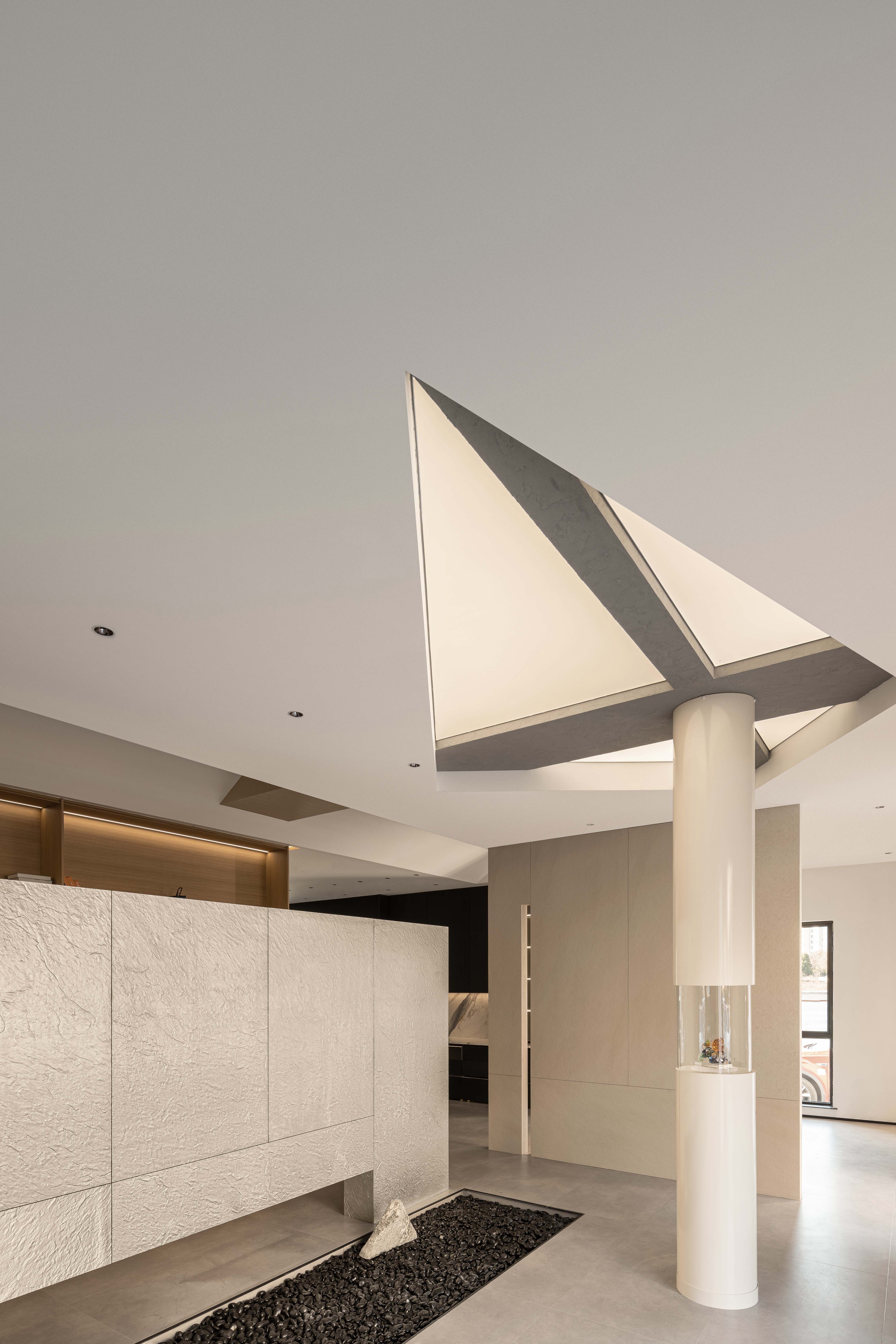 顶面和立面几何形体的运用使空间更具张力。 The application of geometric forms on the top and top surfaces makes the space more dynamic.