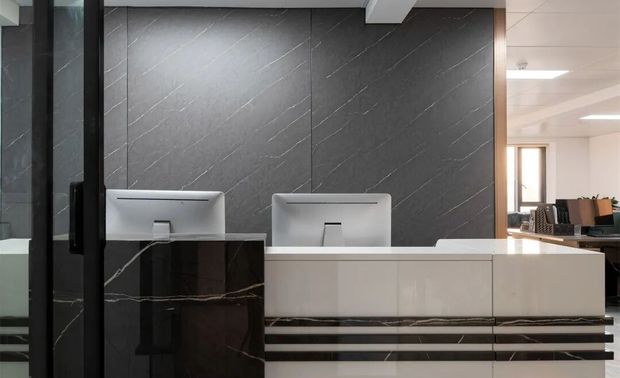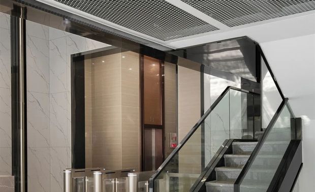 步入接待大堂,地面材质的变化,成为空间的亮点。