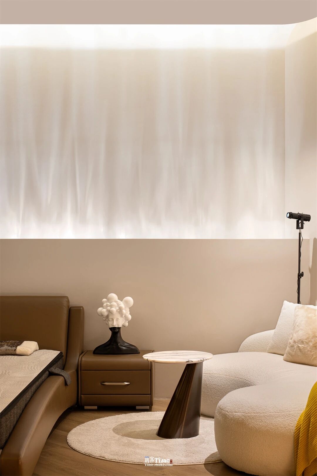 项目定位:以“净、静、镜、径、境”为核心脉络,打造开放连贯的休憩产品体验展厅。打破传统展示模式,弱化产品孤立属性,通过空间设计构建沉浸式休憩探索场景,传递“深度休憩与活力共生”的核心理念。