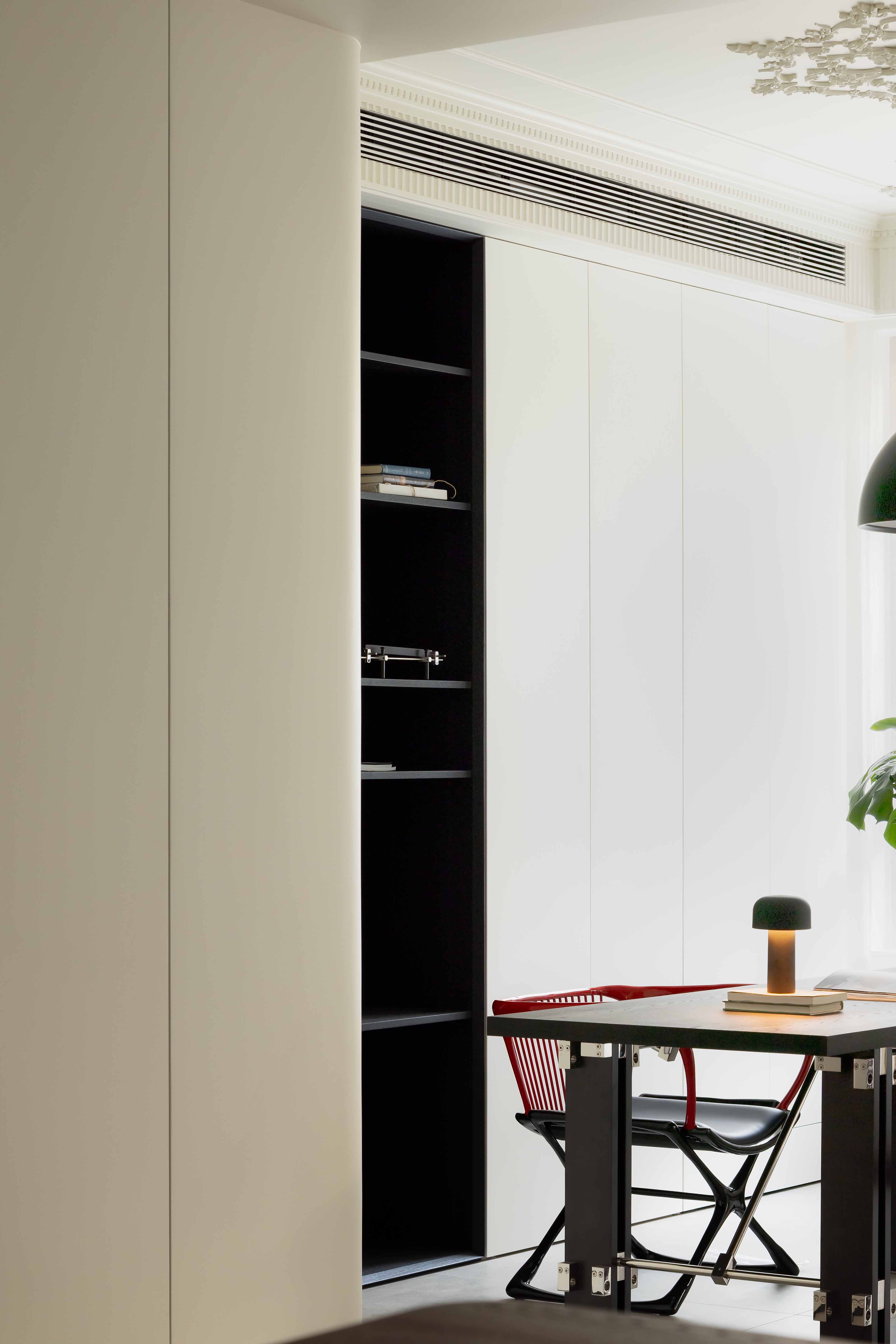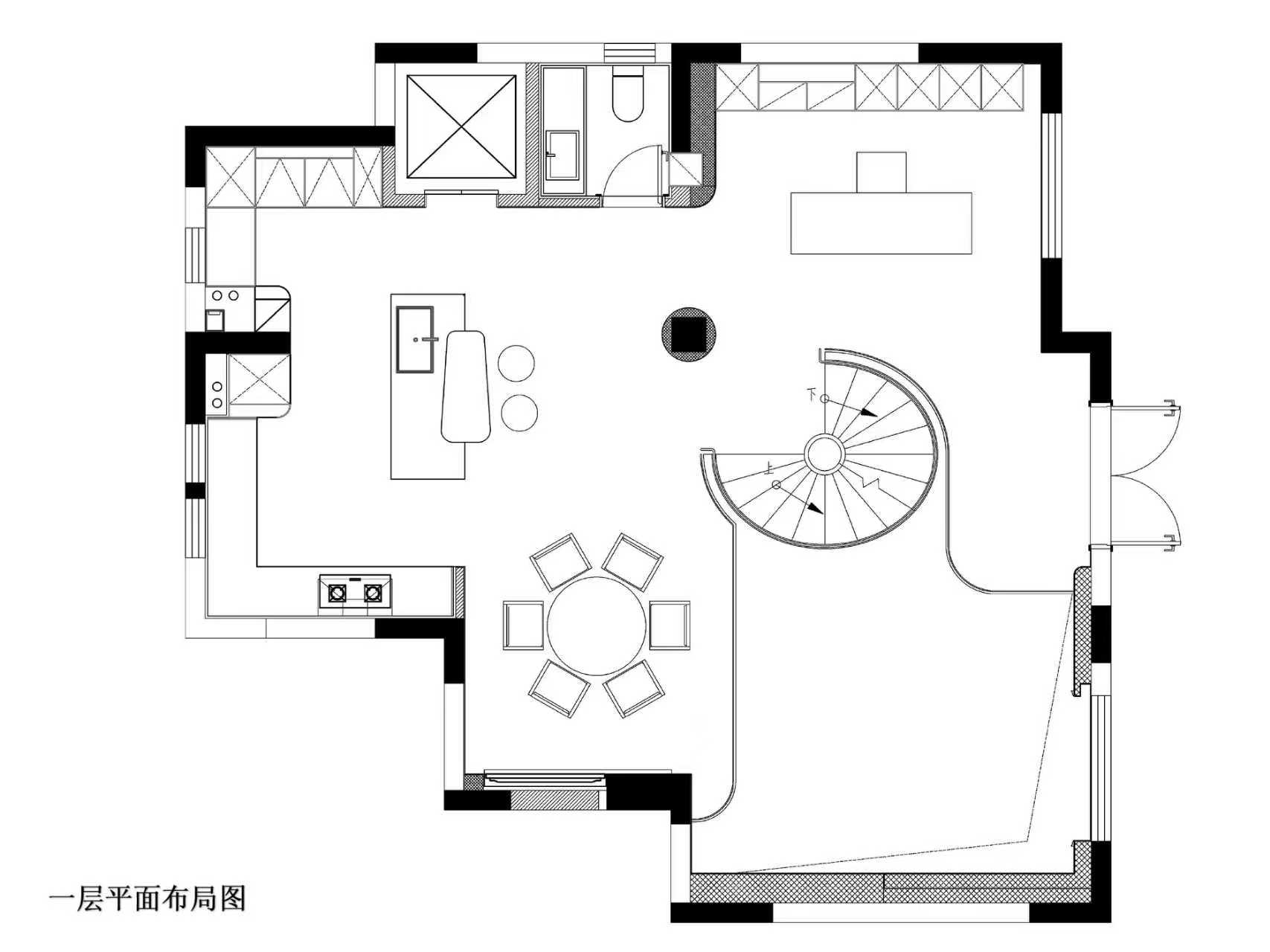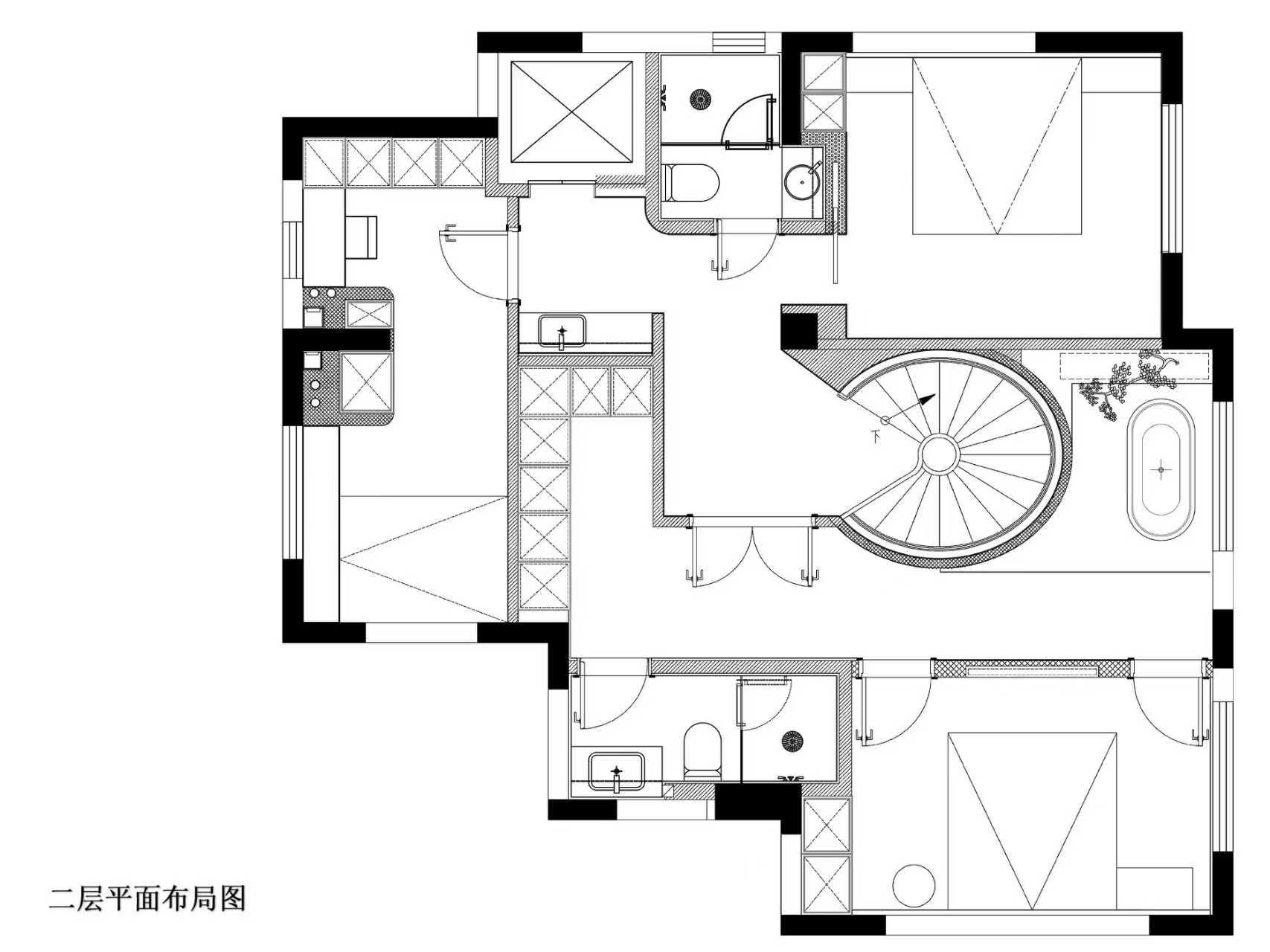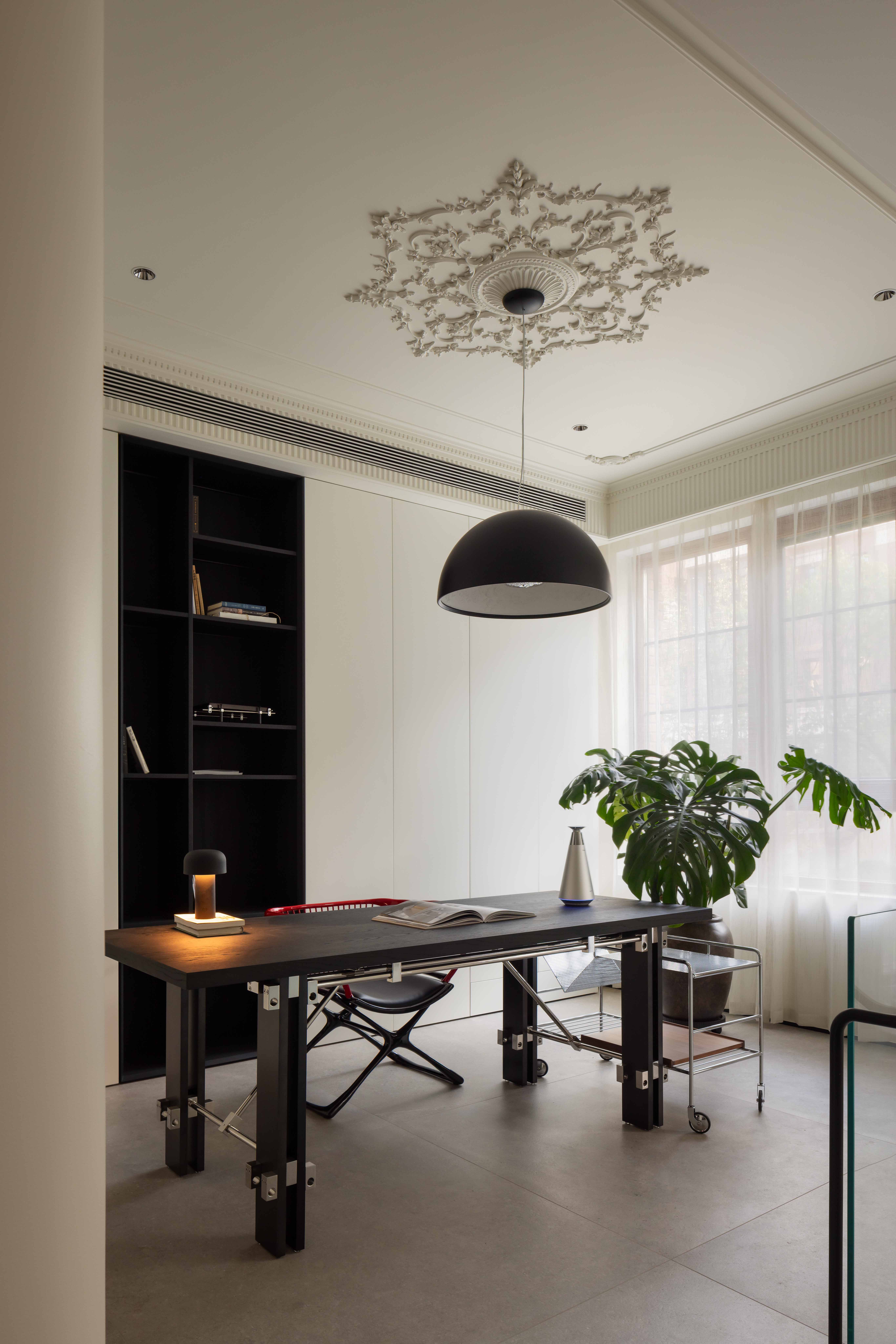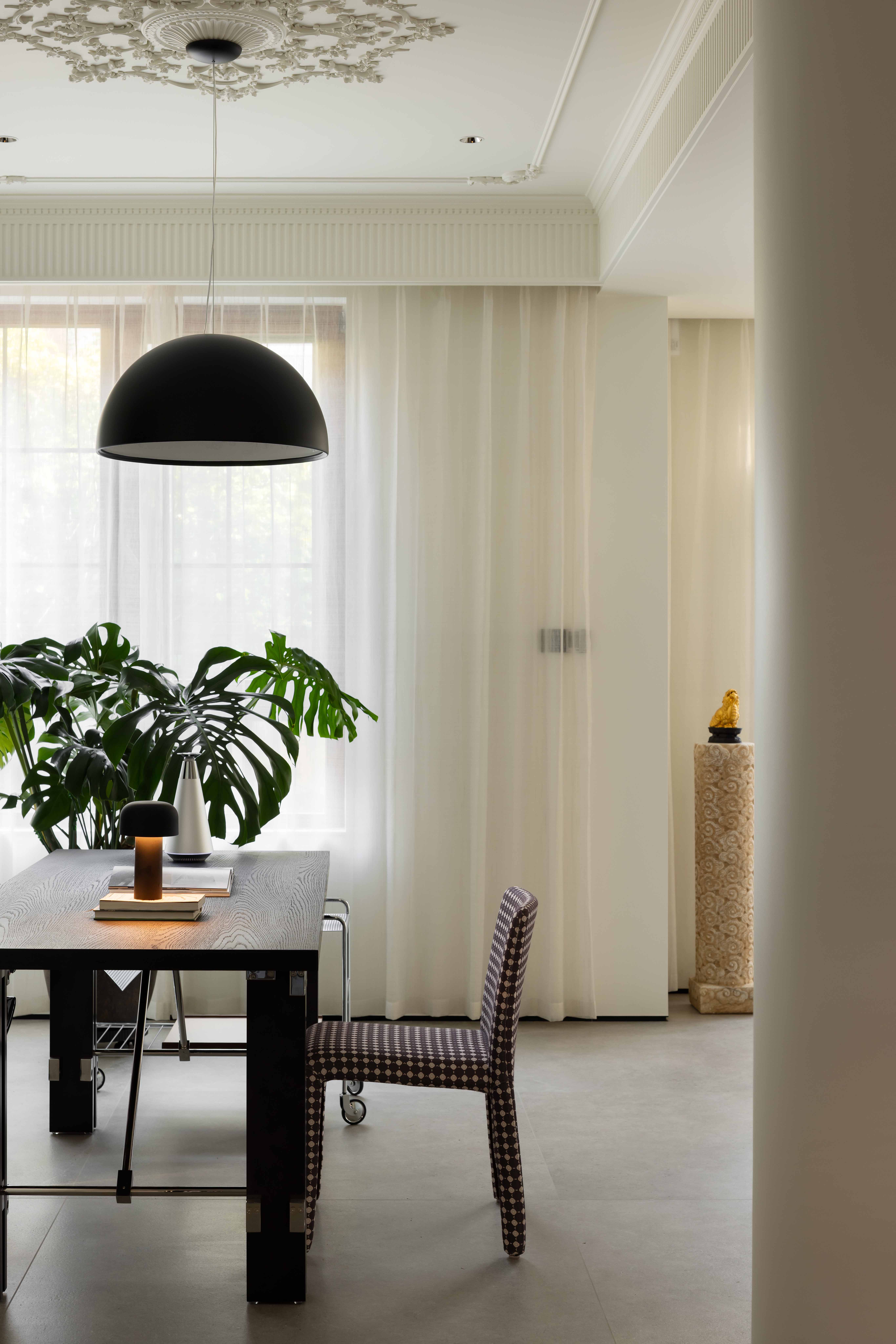 空间意境:空间的绝对焦点,是那座宛若艺术雕塑的旋转楼梯。它不仅是连接垂直空间的功能性构件,更是整个家的精神象征。其优美的螺旋曲线,以一种毫不费力的姿态,打破了空间的静态格局,引入了动态的流动感。楼梯的线条柔和而富有张力,在自然光线的雕琢下,于墙面和地面投射出不断变化的光影画卷,使空间随着时间流转而焕发生机