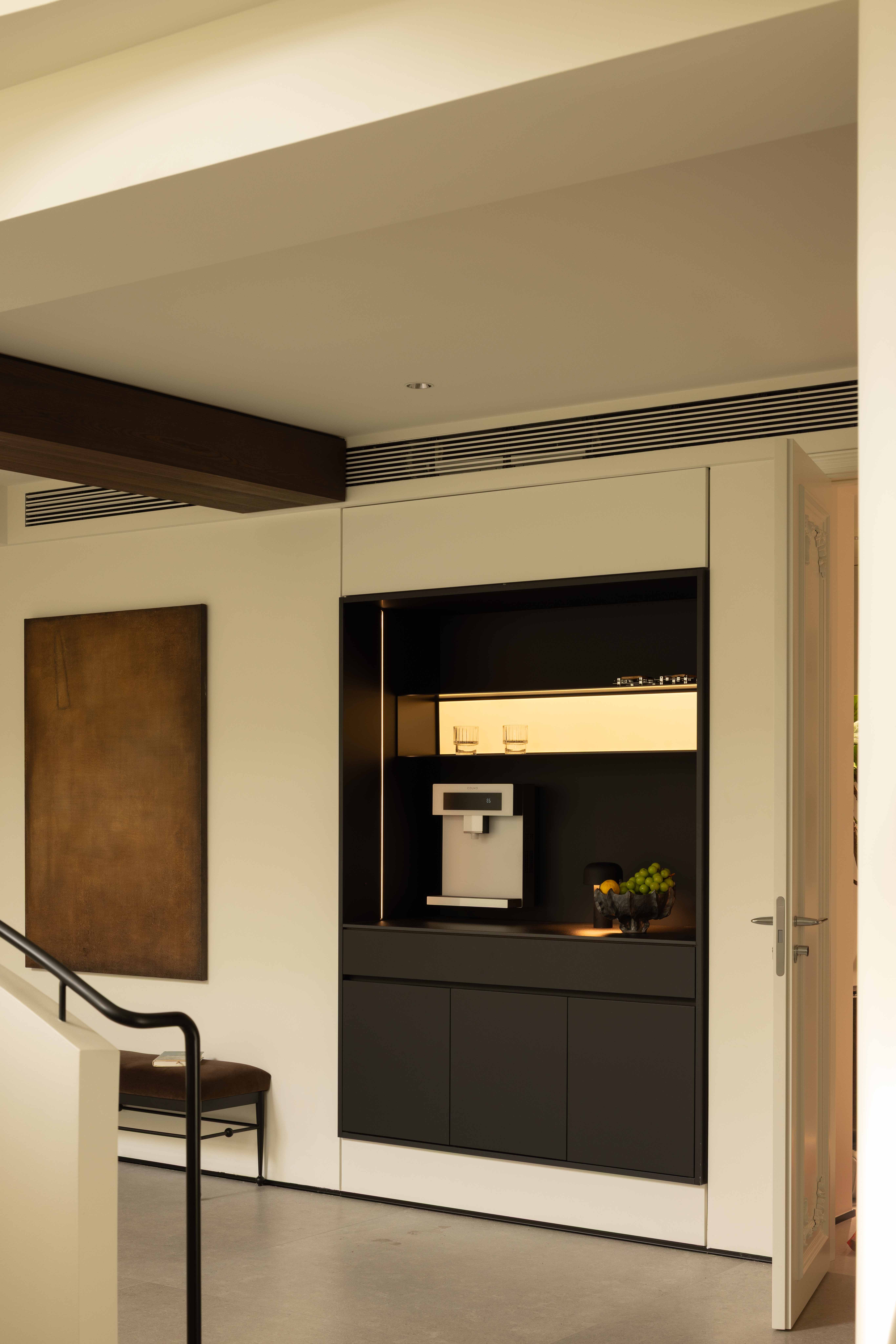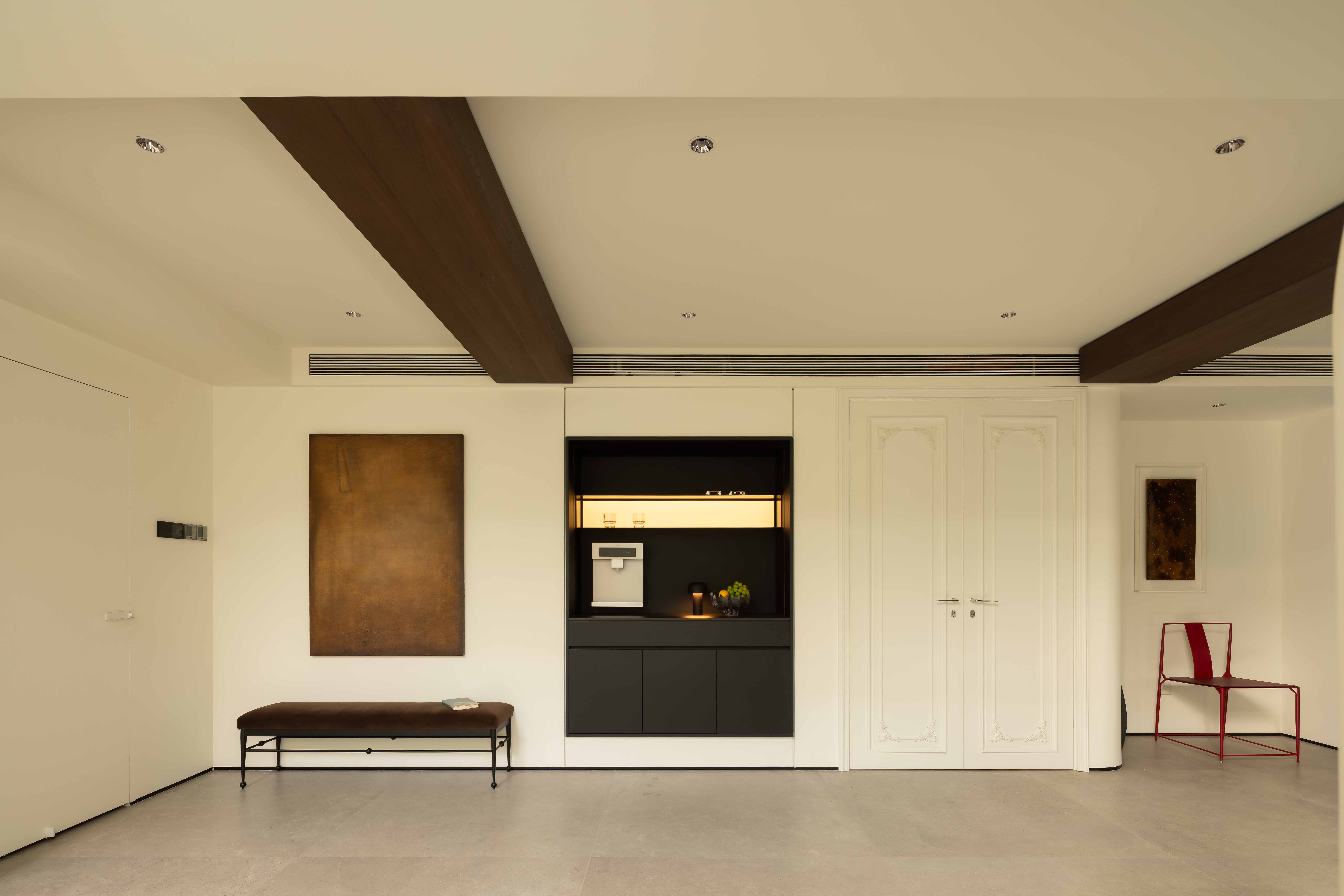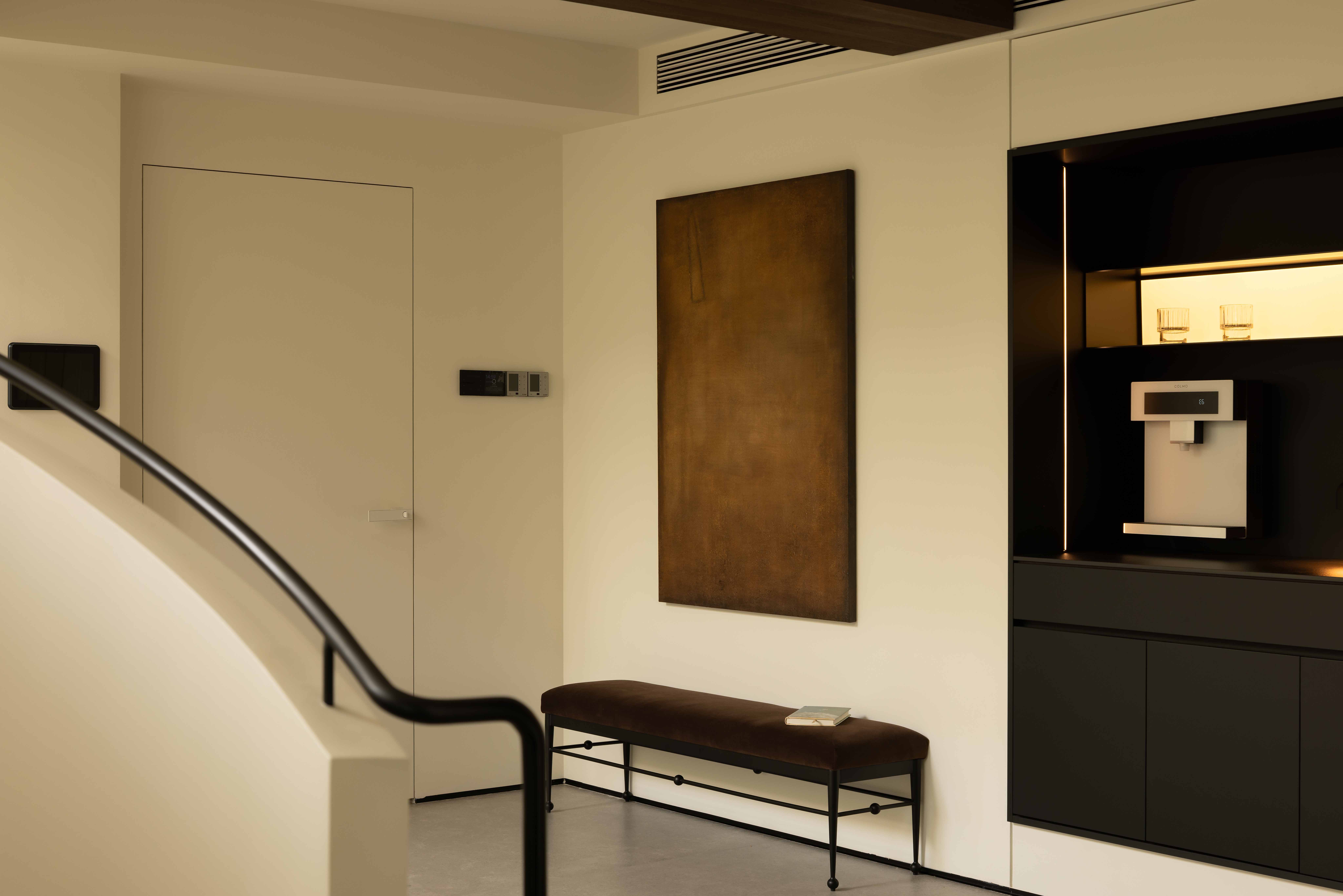 空间布局:我们精选了柔和而温暖的色调作为基底,搭配细腻的材质,以此凸显楼梯的结构之美,并营造出整体宁静、治愈的氛围。在这里,刚与柔、动与静、线与面,达成了完美的平衡。最终,我们呈现的不只是一处居所,更是一个能安放身心、激发灵感的“情感栖息地”。