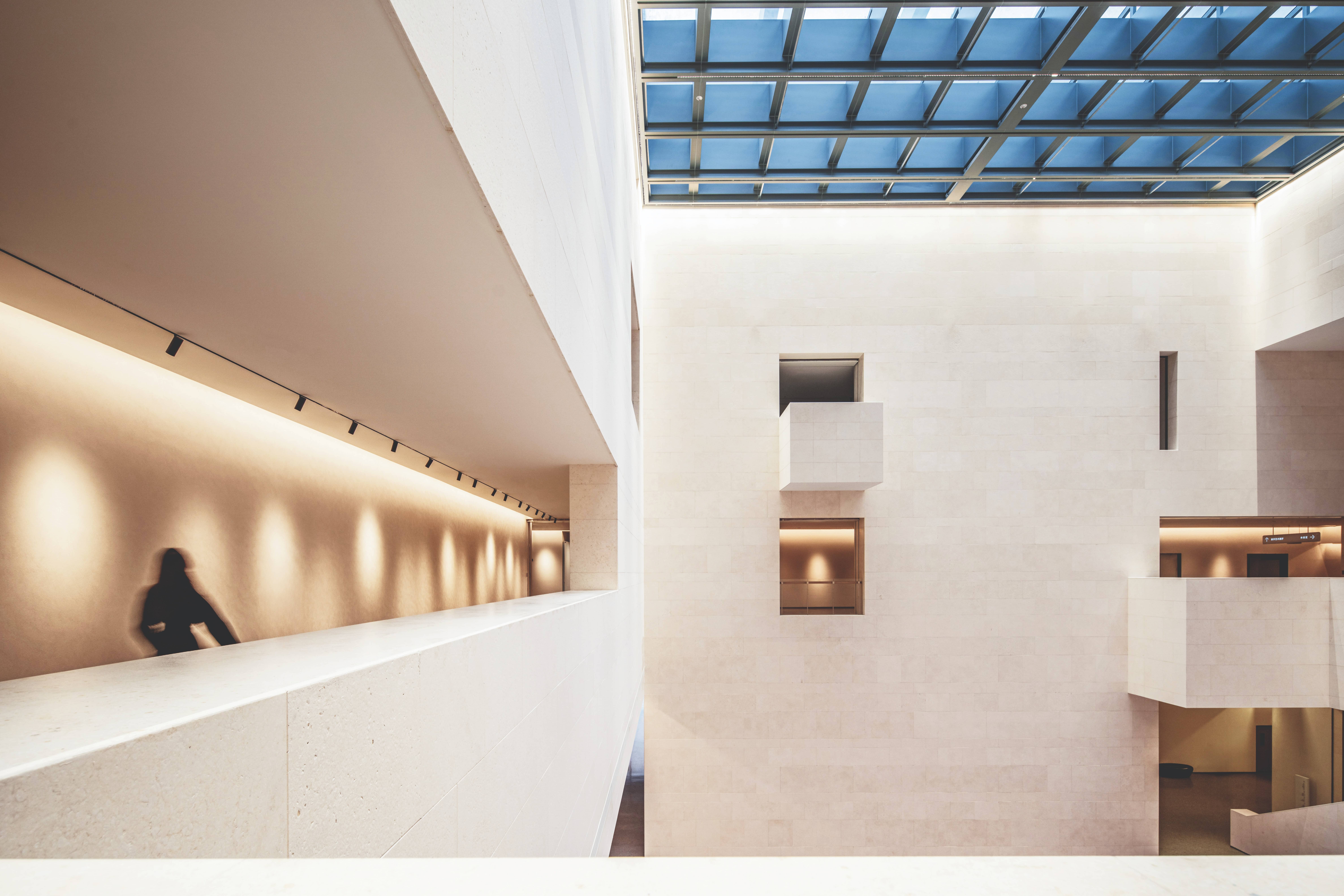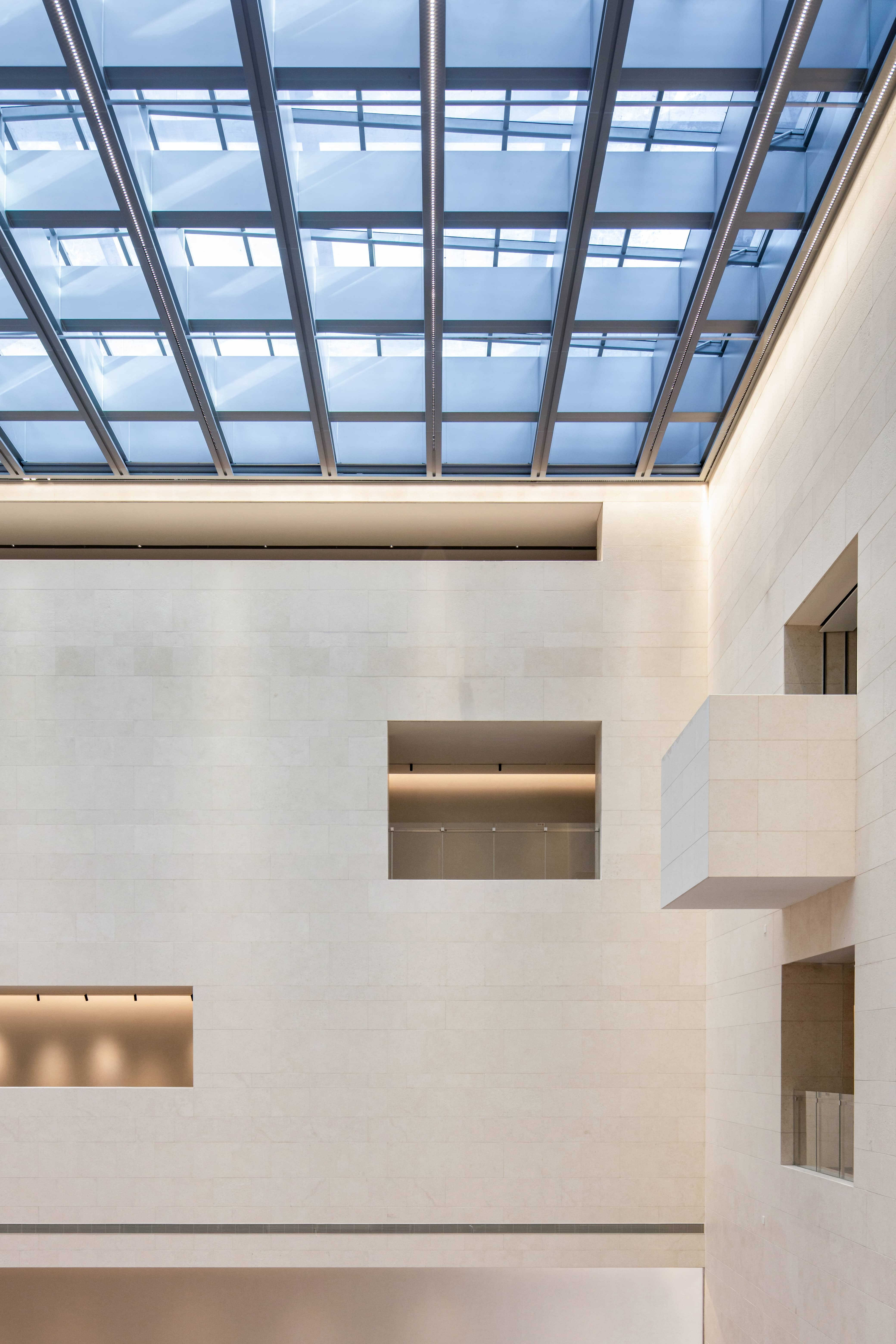 空间意境:江阴国乐岛中国国乐中心的美术馆设计灵感来源于中国近代音乐家刘天华创作的二胡独奏曲《空山鸟语》。标题采自唐代诗人王维的诗句“空山不见人,但闻人语响”(出自《鹿柴》) 。在此曲中,刘天华创造性地运用三弦拉戏式的模进手法,描绘了深山幽谷,百鸟嘤啼的优美意境,是一首极富形象性的作品。刘天华《空山鸟语》曲中描绘深山幽谷、百鸟嘤啼的优美意境,是一首极富形象性的作品。诗词中空谷闻声、斜辉复照那一瞬间特有的寂静清幽,耐人寻味,渗透于对自然景色生动描绘中的是一份独有的禅意。