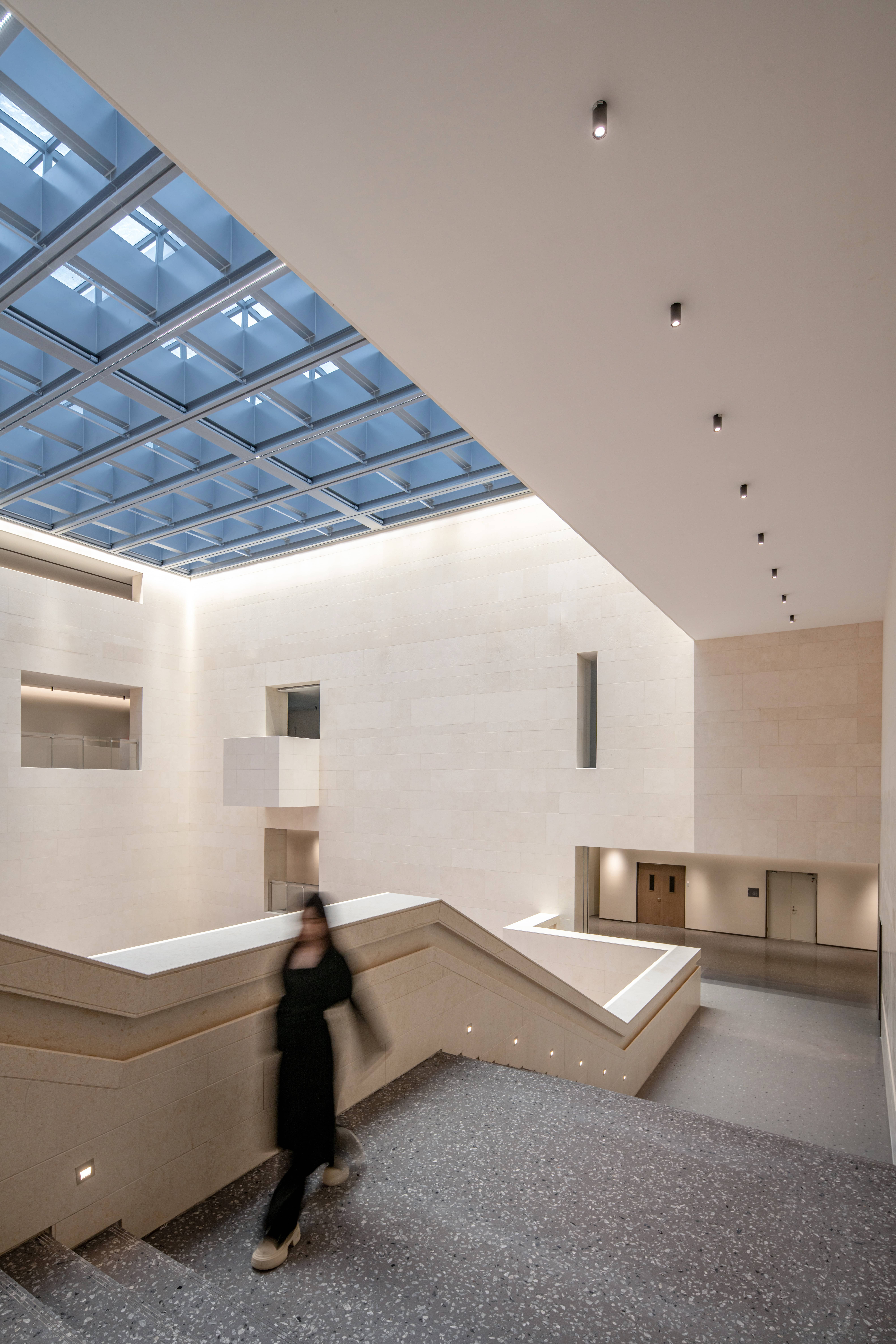 设计选材:天然大理石、现浇无机水磨石、瓷砖、人造石、仿水磨石瓷砖等江阴国乐岛中国国乐中心美术馆的材料选择,以“国乐文化转译、低碳生态赋能、在地文脉共生”为核心准则,突破传统美术馆材料的单一性与功能性局限,实现材料从“承载功能”到“表达文化、传递体验”的升级,同时兼顾经济性与可持续性,形成兼具艺术质感、文化内涵与绿色属性的材料体系,室内采用“一体化集成吊顶”,将照明、通风、消防等功能模块整合于吊顶系统,简化施工流程,提升空间利用率的同时降低后期维护成本。这种材料策略既避免了过度追求高端材料带来的成本浪费,又通过精细化设计实现了“低成本、高品质”的空间效果,契合项目的经济性需求。突破材料单一功能局限,选用兼具多重属性的复合型材料,实现美学表达、功能适配与体验优化的统一。构建“再生利用+在地取材+低碳环保”的材料体系,最大限度降低建筑全生命周期的碳排放,契合绿色建筑理念。材料策略既避免了过度追求高端材料带来的成本浪费,又通过精细化设计实现了“低成本、高品质”的空间效果,契合项目的经济性需求。