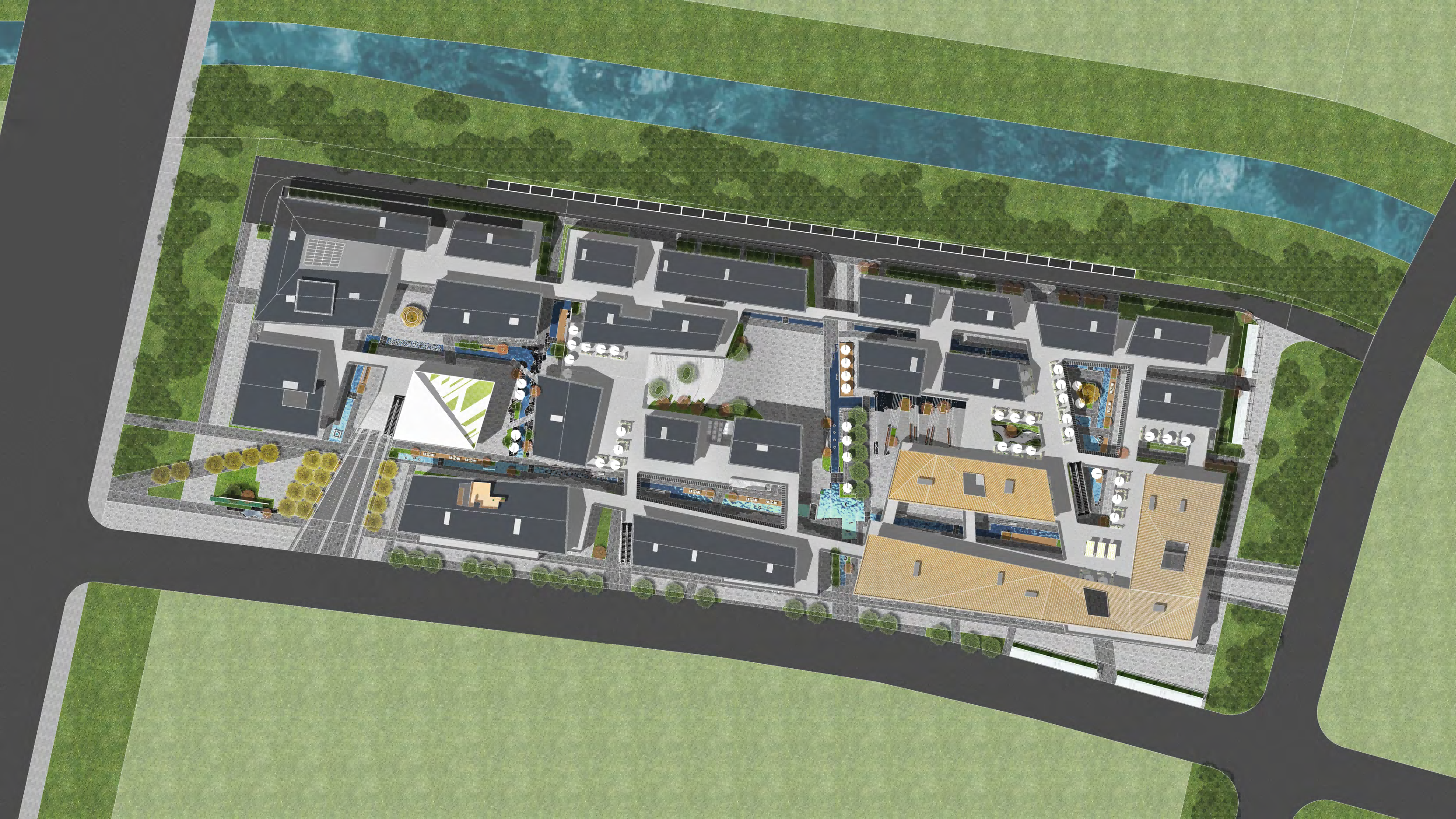 空间布局:规划多入口引导系统,设置主题广场、特色街区等功能区域,划分清晰动线,结合品牌门店与公共空间,实现消费、休闲、互动场景的有机融合。