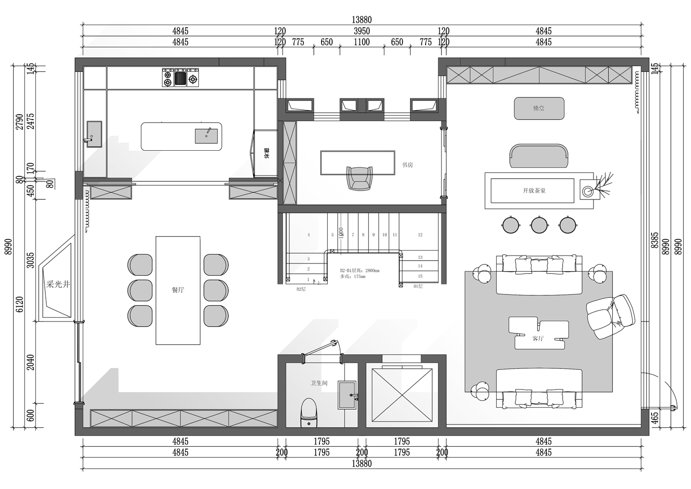 空间布局:将空间的光影艺术与雅致格调凝练为一体,精准传递出设计中“以光塑形、以雅定调”的核心思路。