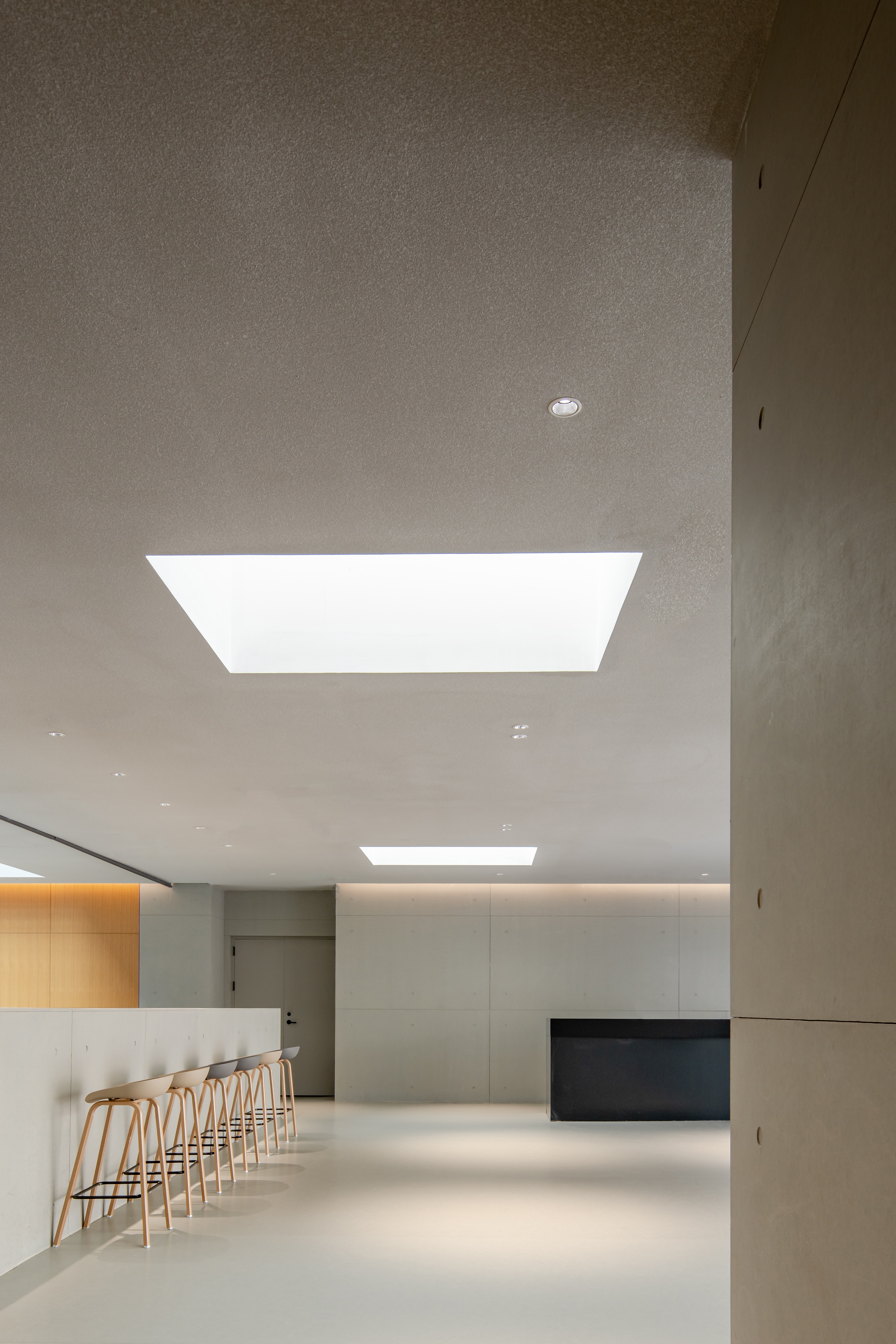 A6教学科研楼及配套功能相对丰富,空间围绕原有的漏斗进行功能组织,弧形元素的设计增加了空间的温度,叠加与自然的亲近,增加空间的亲生命性。混凝土表面粗粝的自然肌理,增加了空间的未来感,同时有机的多维度曲面增加了空间的生命力。本着设计可以跨越英雄式的思维和自上而下的纯粹审美,尽量保留历史的痕迹,叠加当下活动的印记,反映现在空间状态及使用者的需求。通过营造不同空间特色和光线变化,打破直线的单调感,形成空间的节奏。