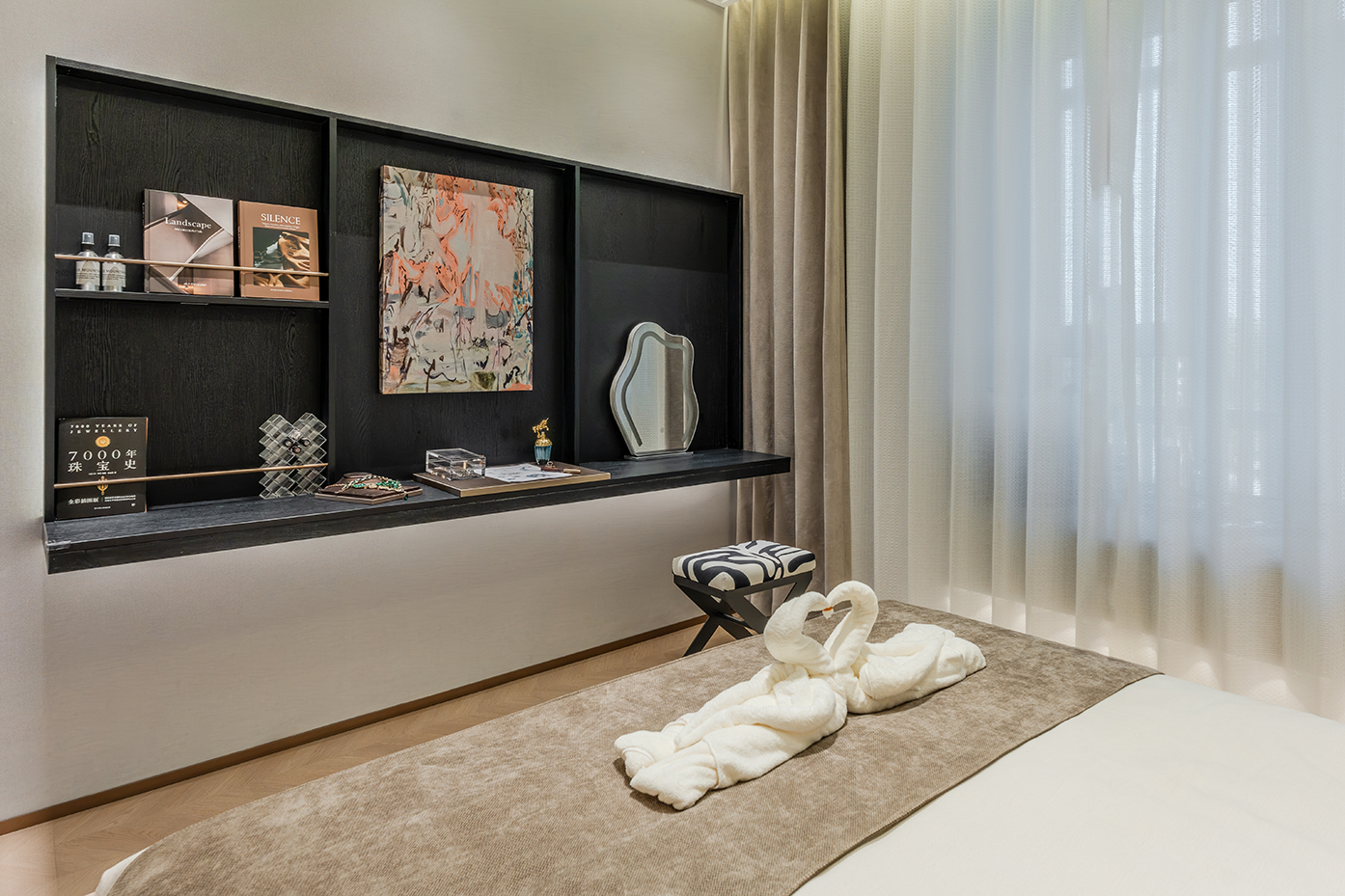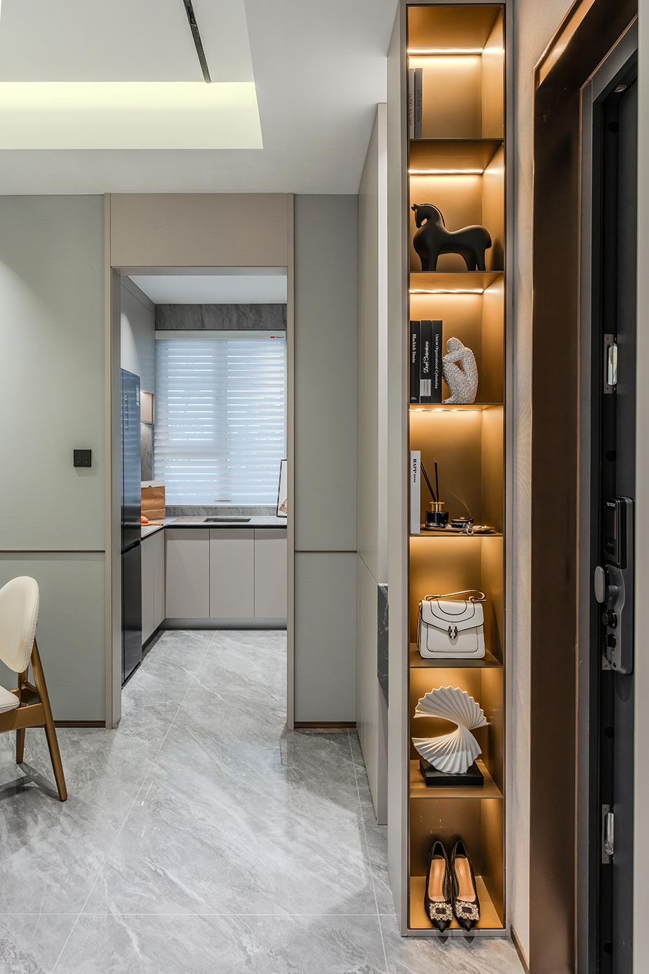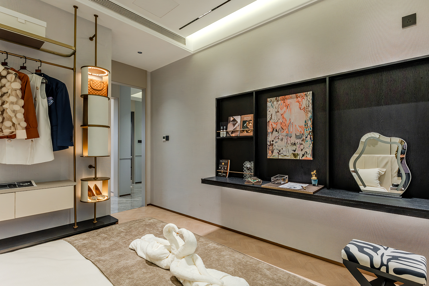 项目定位:以现代轻奢风为核心理念,通过浅灰、米白等中性色调搭配棕色、橙色等暖色点缀,打造兼具功能性与艺术感的空间。设计强调个性化与实用性,为用户呈现一个既时尚又舒适的居住或展示环境,满足现代都市人对高品质生活的追求。