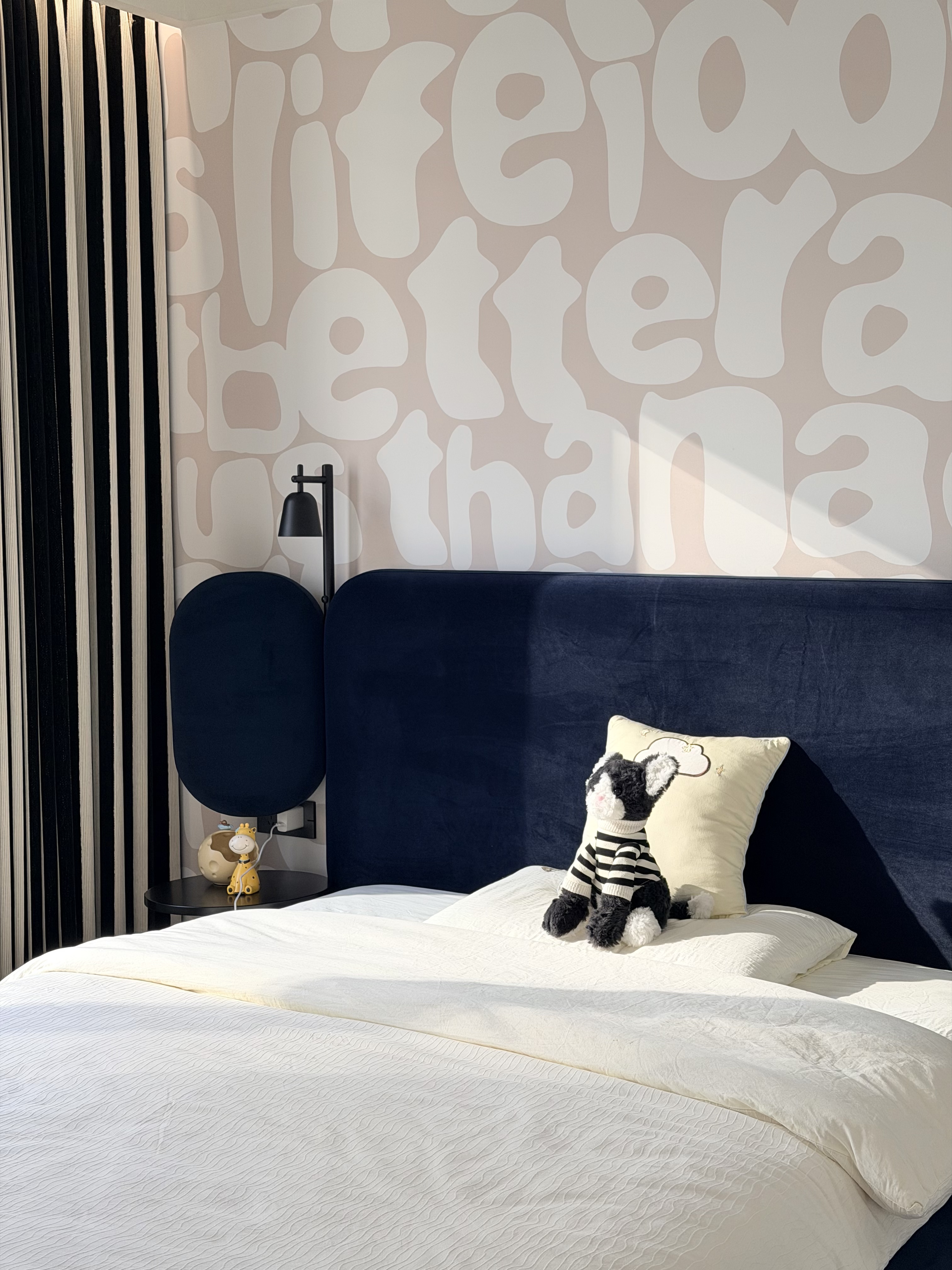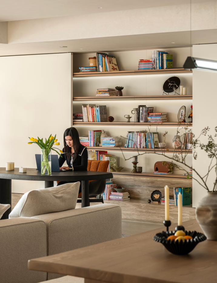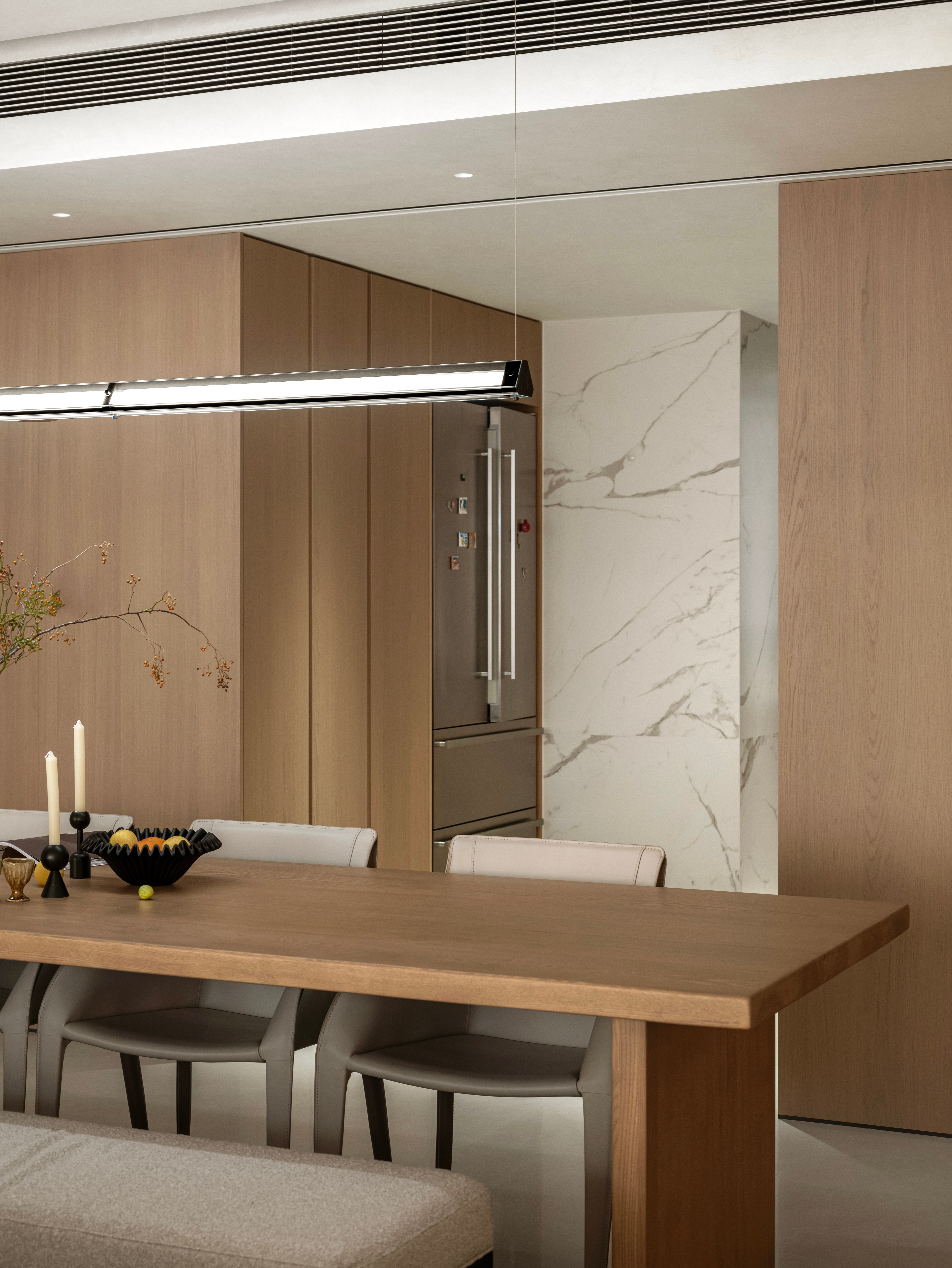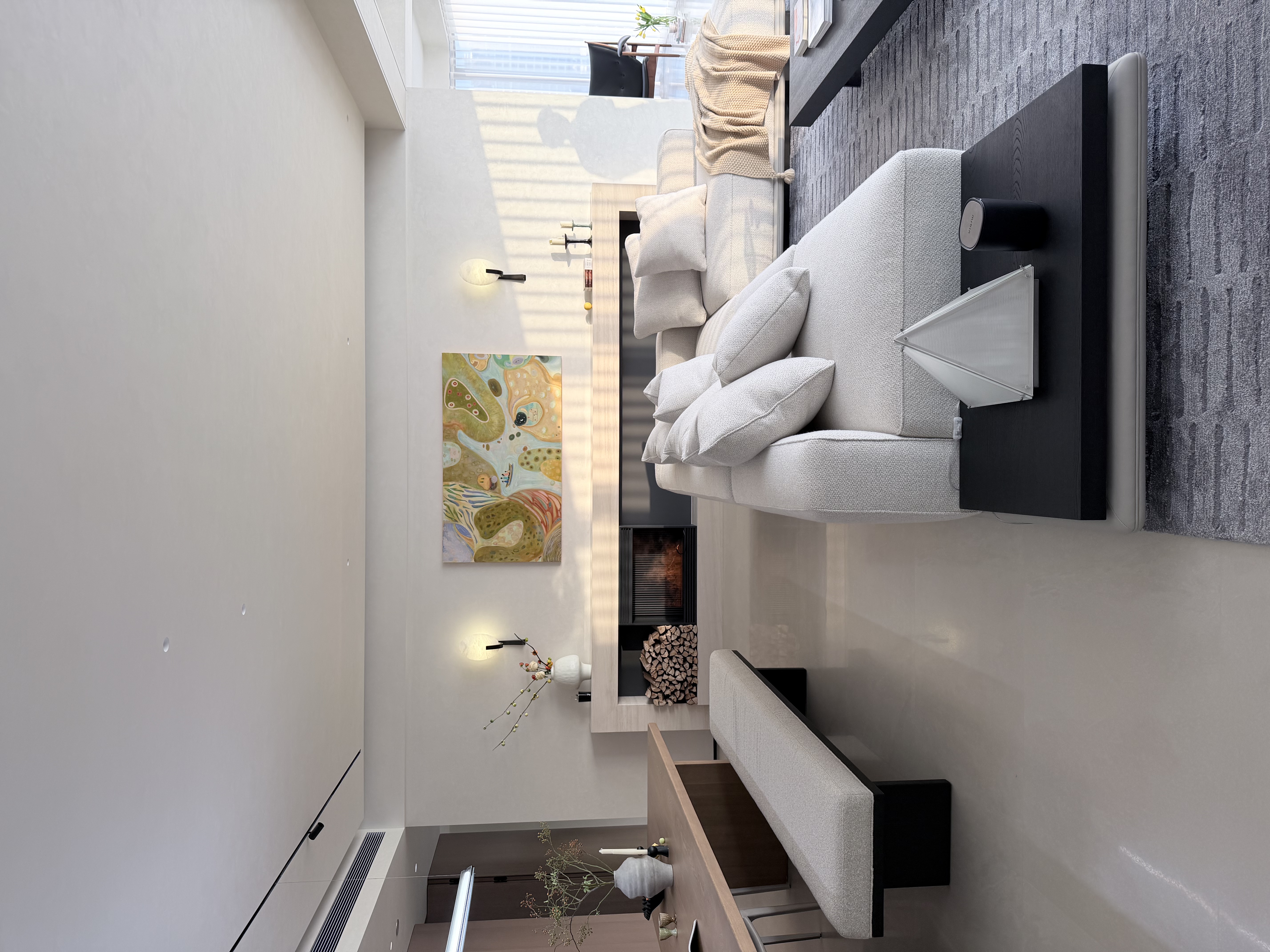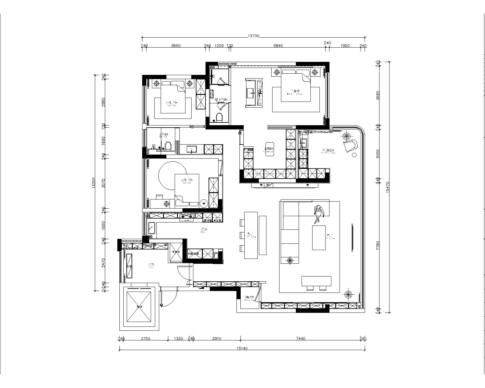 从业主一家本身出发,男业主经常出差,希望有归属感,女业主全职太太,每天就是围绕照顾两个孩子,生活琐碎。作为母亲的我,感同身受,希望家是可以放松的,自由的,更重要的是希望有那么一瞬间世界是安静的,可以完全是属于自己。所以整体规划是不仅要关注孩子们的成长空间,更多的的还要关爱男女业主的身心。让空间的功能和人的真实体验达到高度统一。所以本案摒弃了浮华的装饰,追求真实,自然,聚焦亲子空间的温度营造,一日三餐,烟火四季,去追求更好的人文居住环境。 -