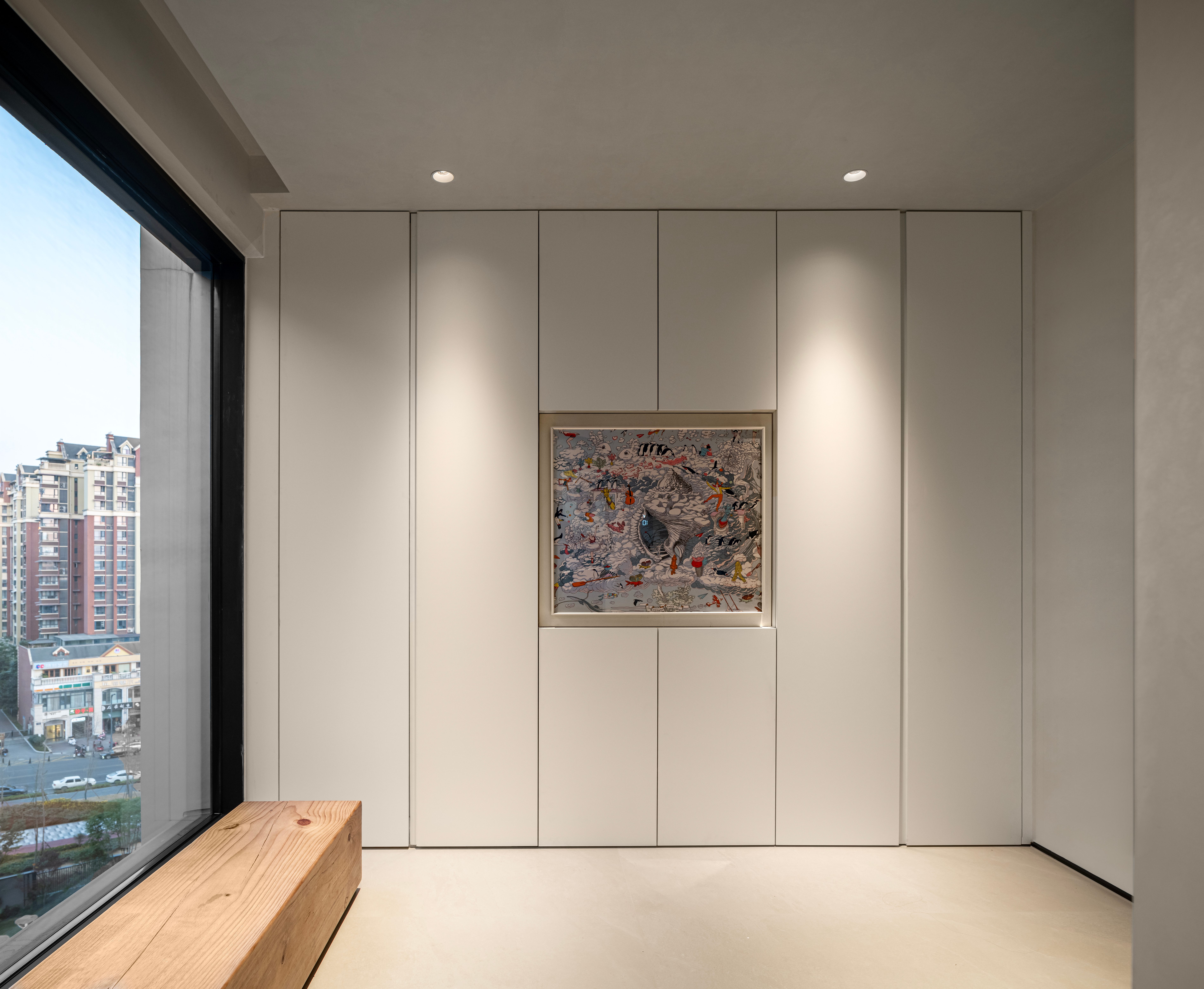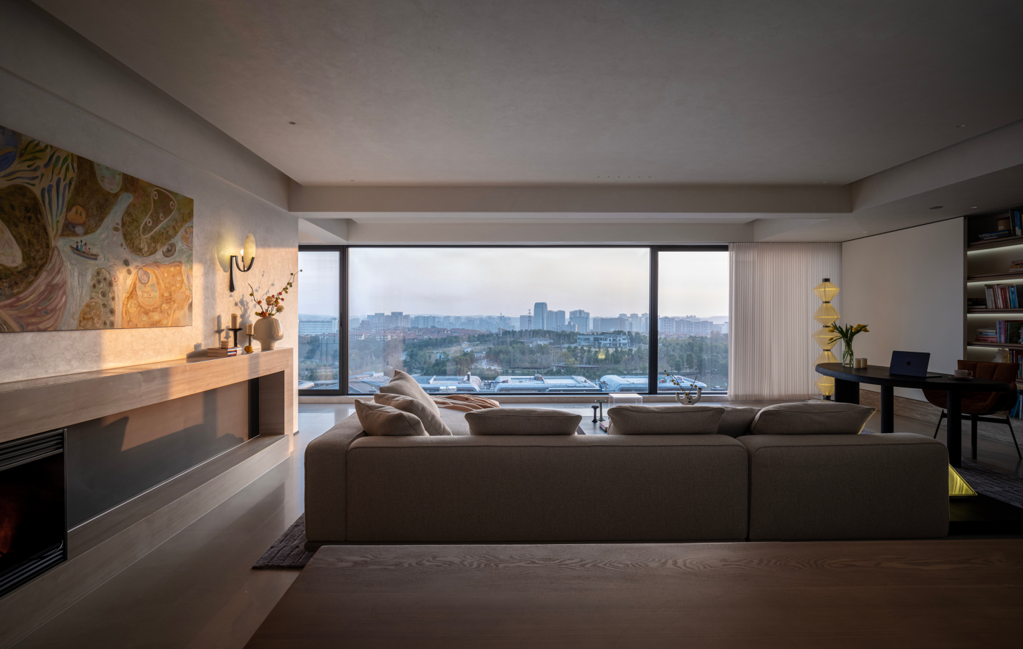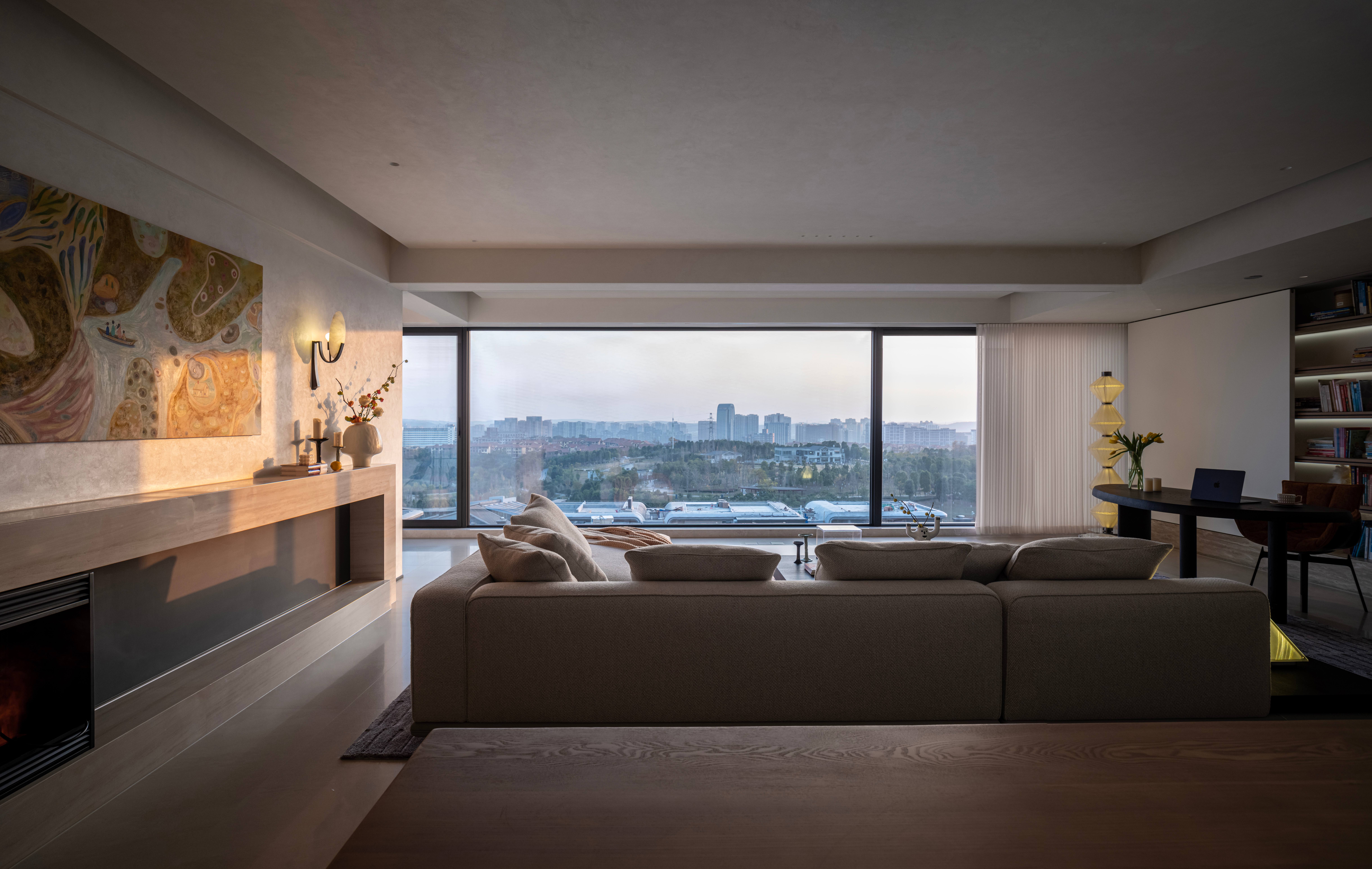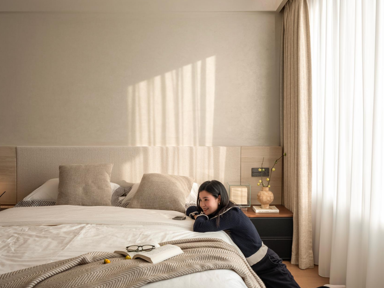 优雅的米色布艺邂逅内敛低调的木质元素,暗藏于平静之下的温馨典雅。
