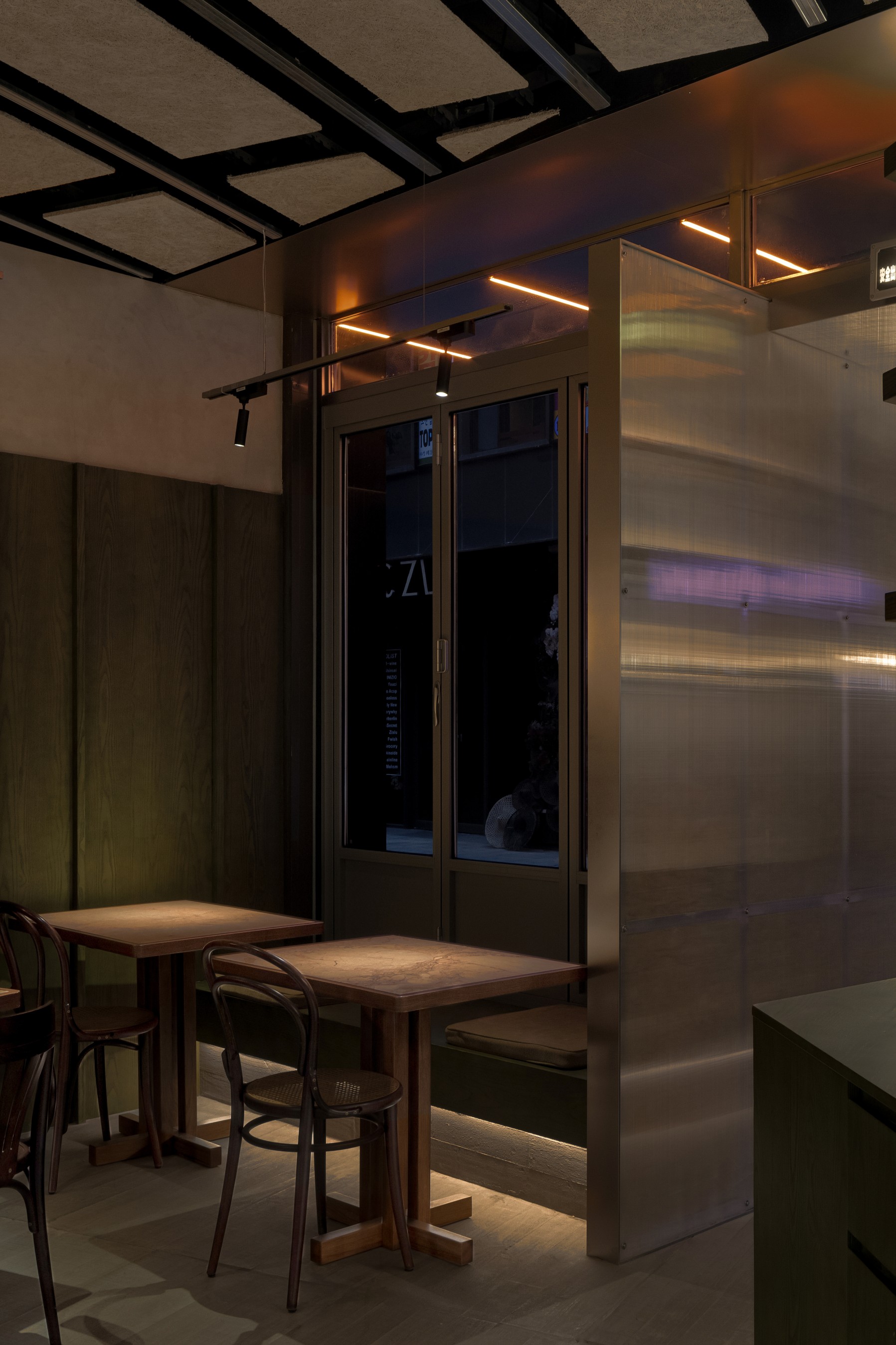 用户体验:开放界面与街角公共空间自然衔接,带来无隔阂的街区融入感;多感官沉浸体验贯穿全程,温暖材质触感搭配精致质朴料理,契合放松社交需求。细节处的记忆感家具、互动式厨房设计及舒适声光环境,共同强化“主理人小店”的私密氛围与温度感,为城市人群提供街角轻松休憩场景。
