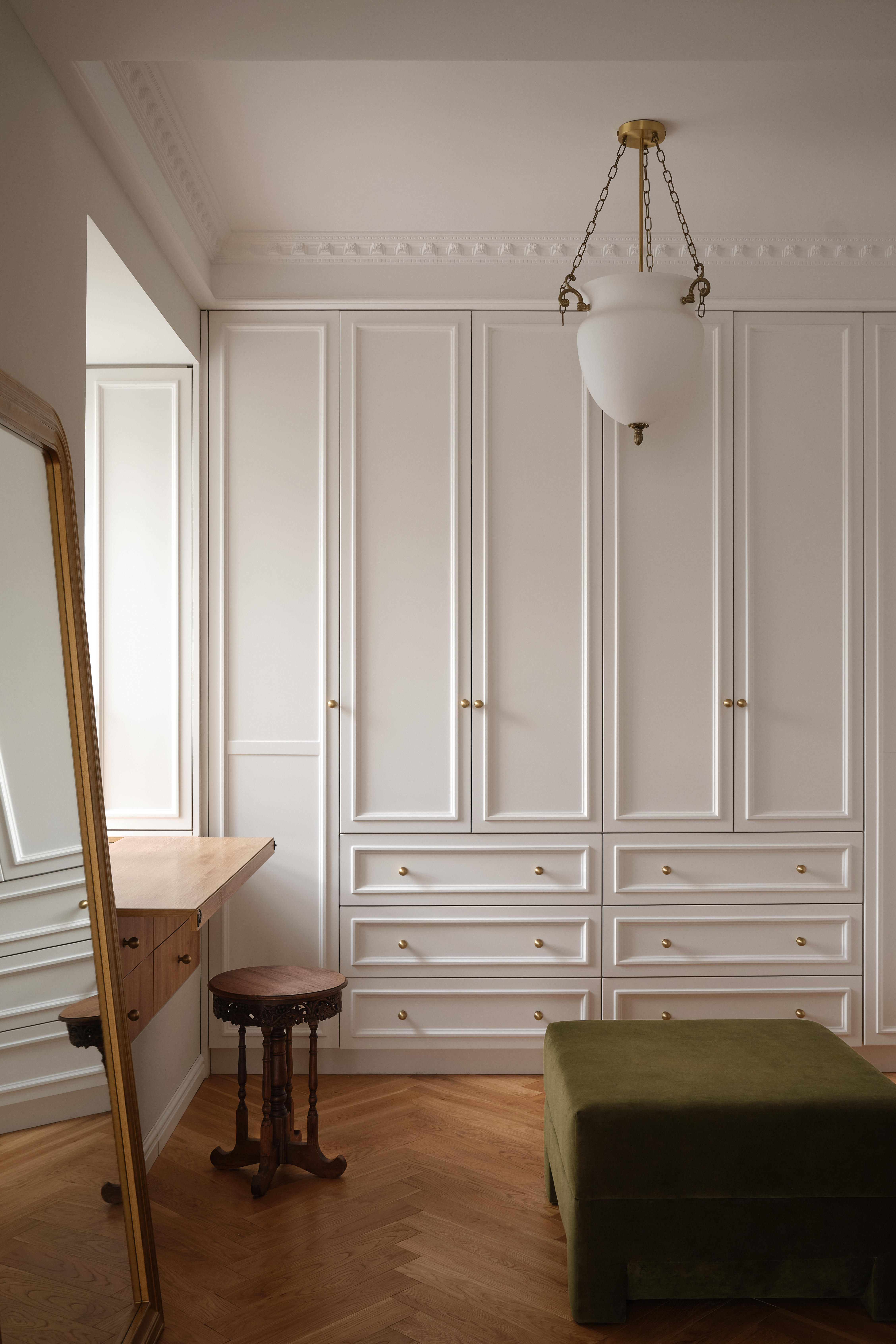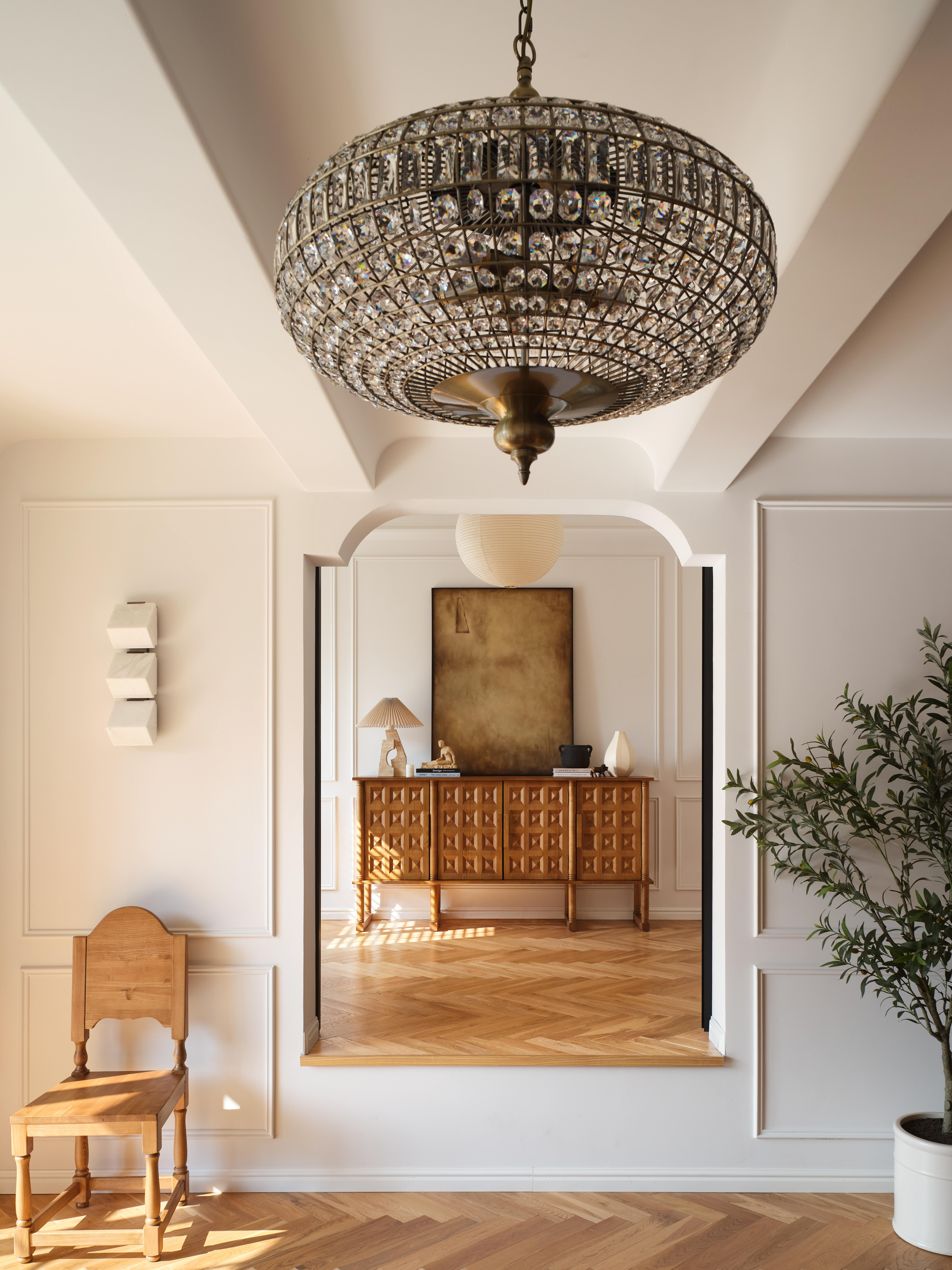 项目定位:这是一套承载着业主童年记忆的老宅,由外公留下的近20年居所,在岁月流逝中逐渐失去光彩。经与业主深度沟通,设计团队决定以复古法式风格为核心进行全盘改造,既呼应小区复古的外立面,也让这份家族记忆在新生中延续。