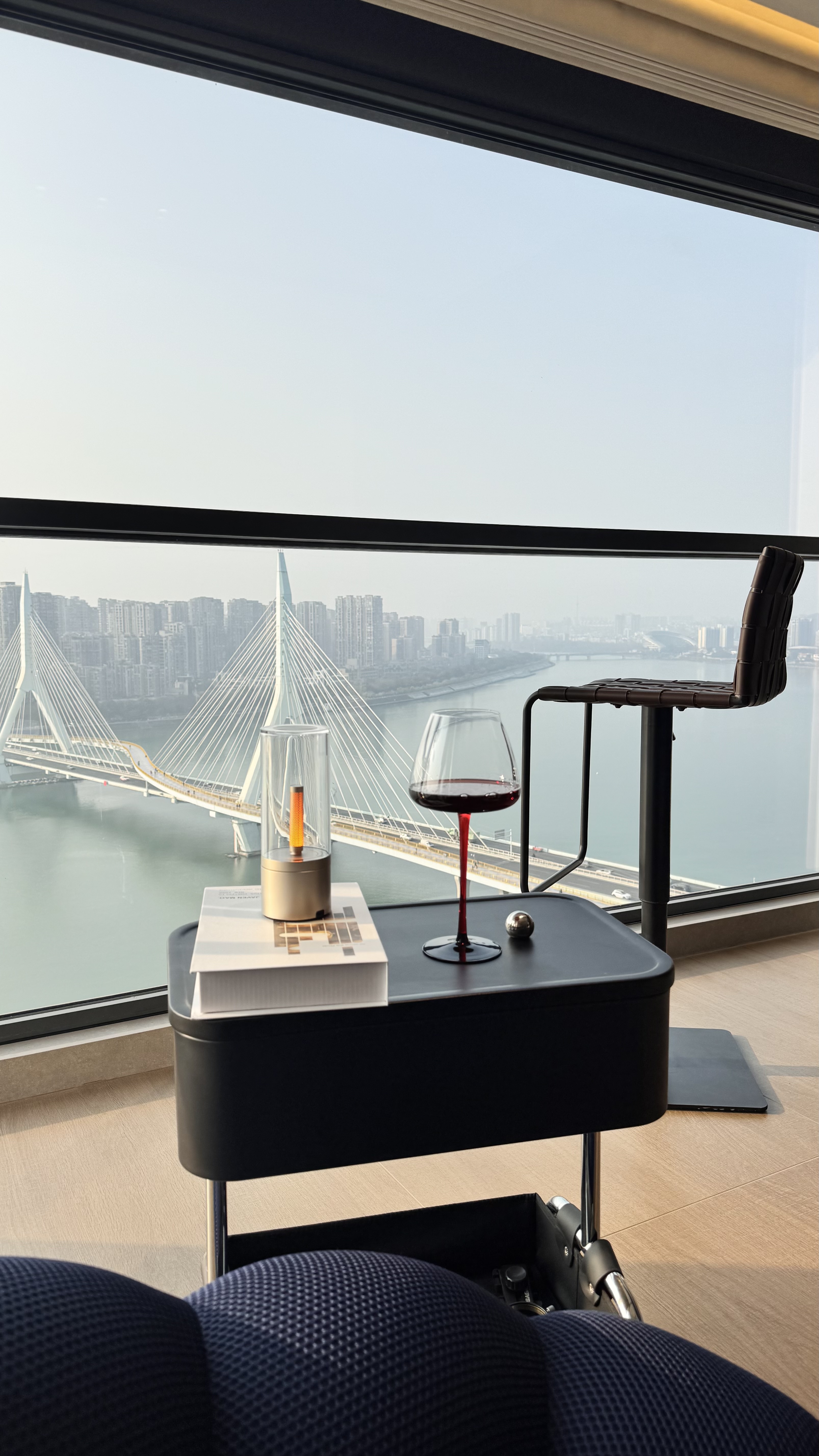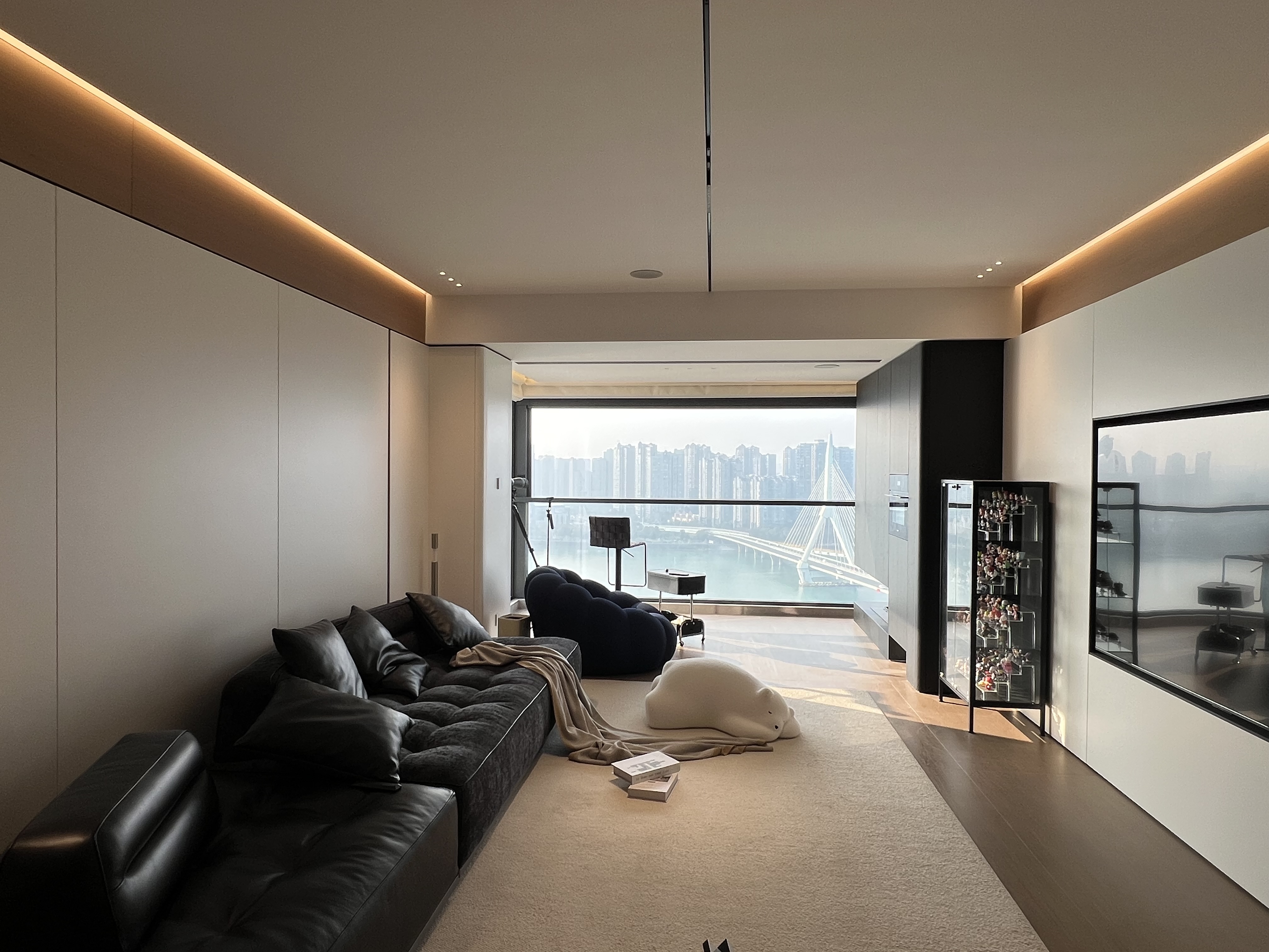 用户体验:原本只是想利用江景资源,没想到设计把江景变成了空间的一部分,坐在客厅的任何位置都能看到江景,晚上看着桥灯倒映在江里,感觉整个城市的美景都被装进了家里。