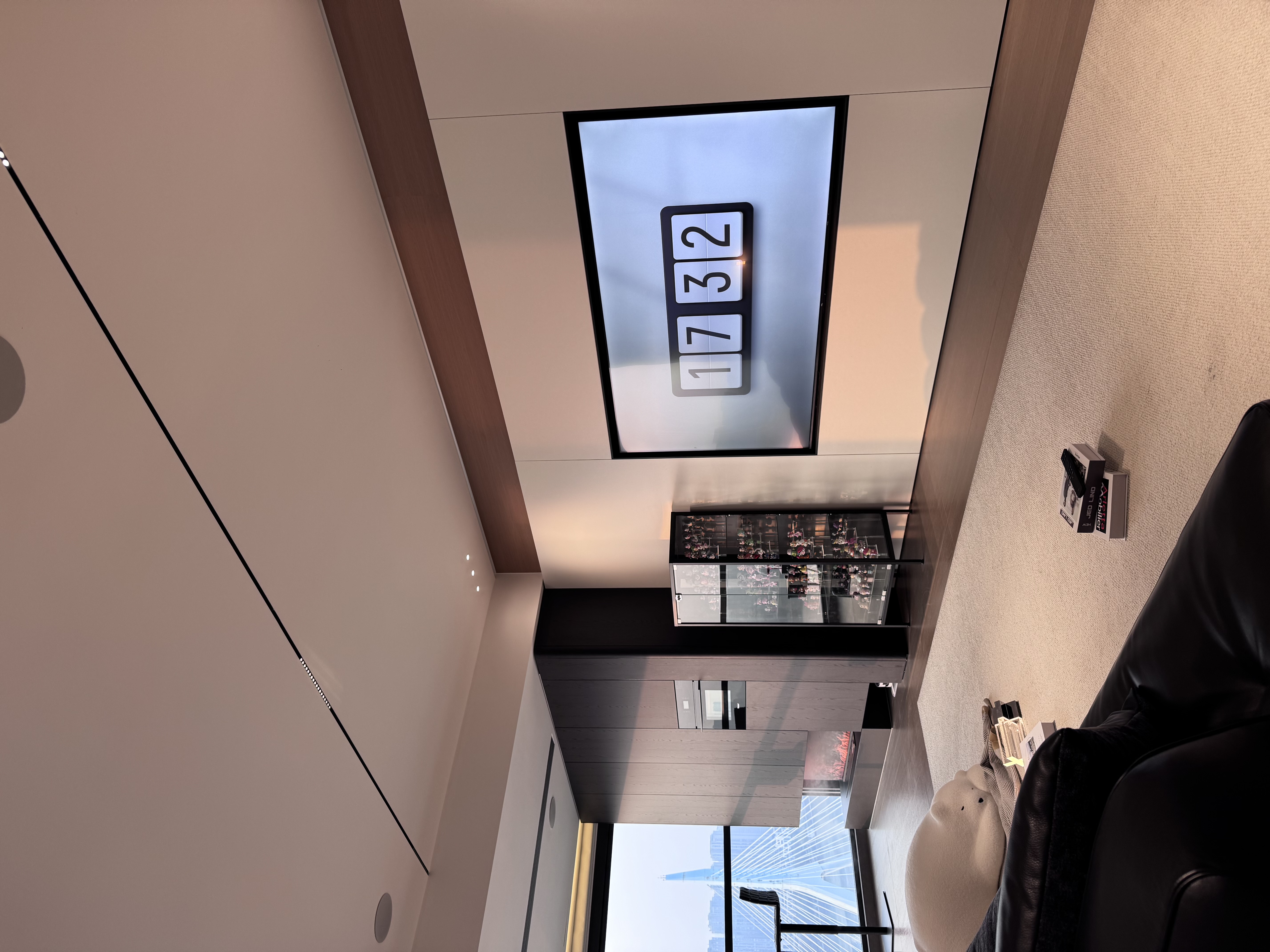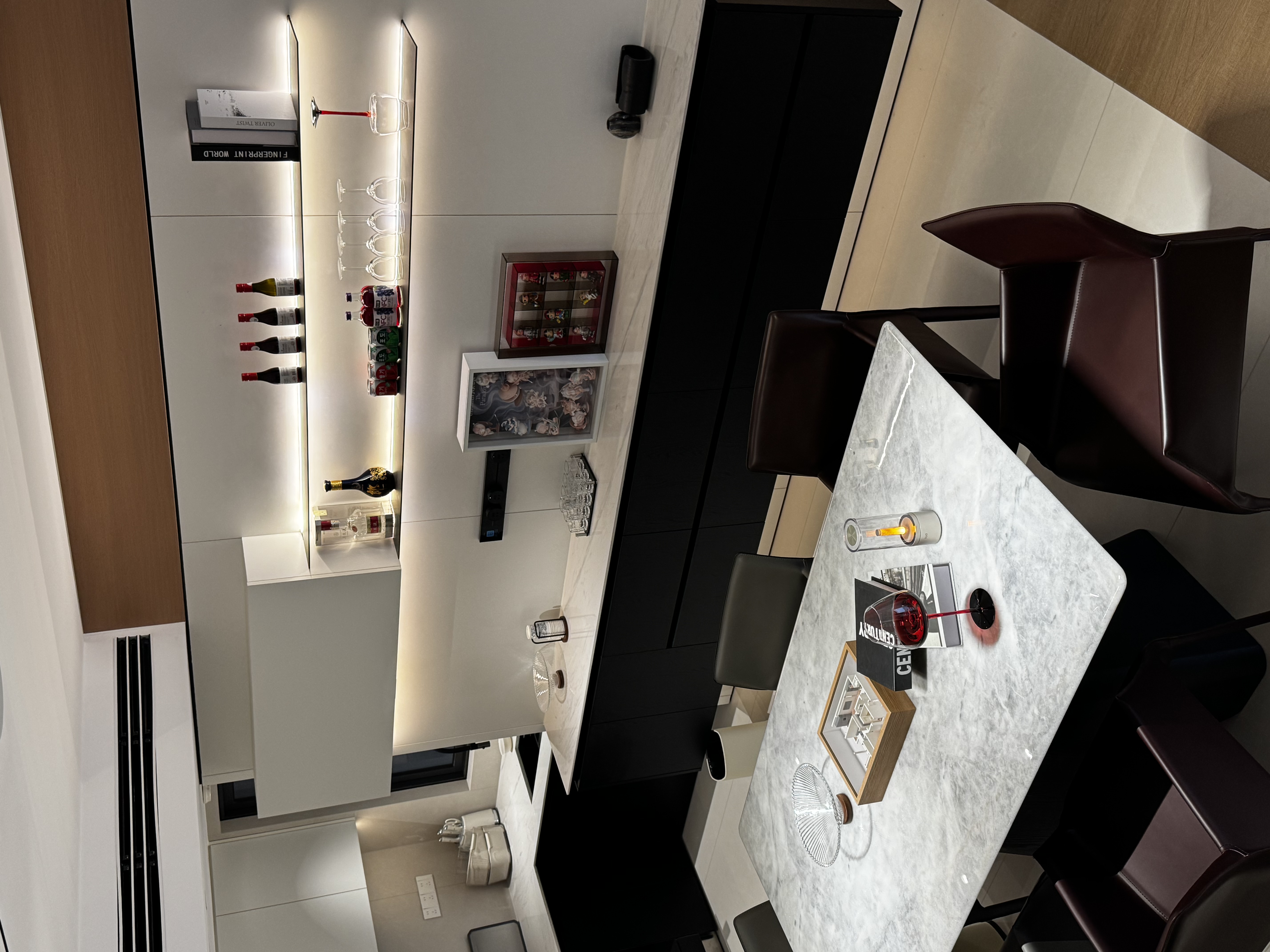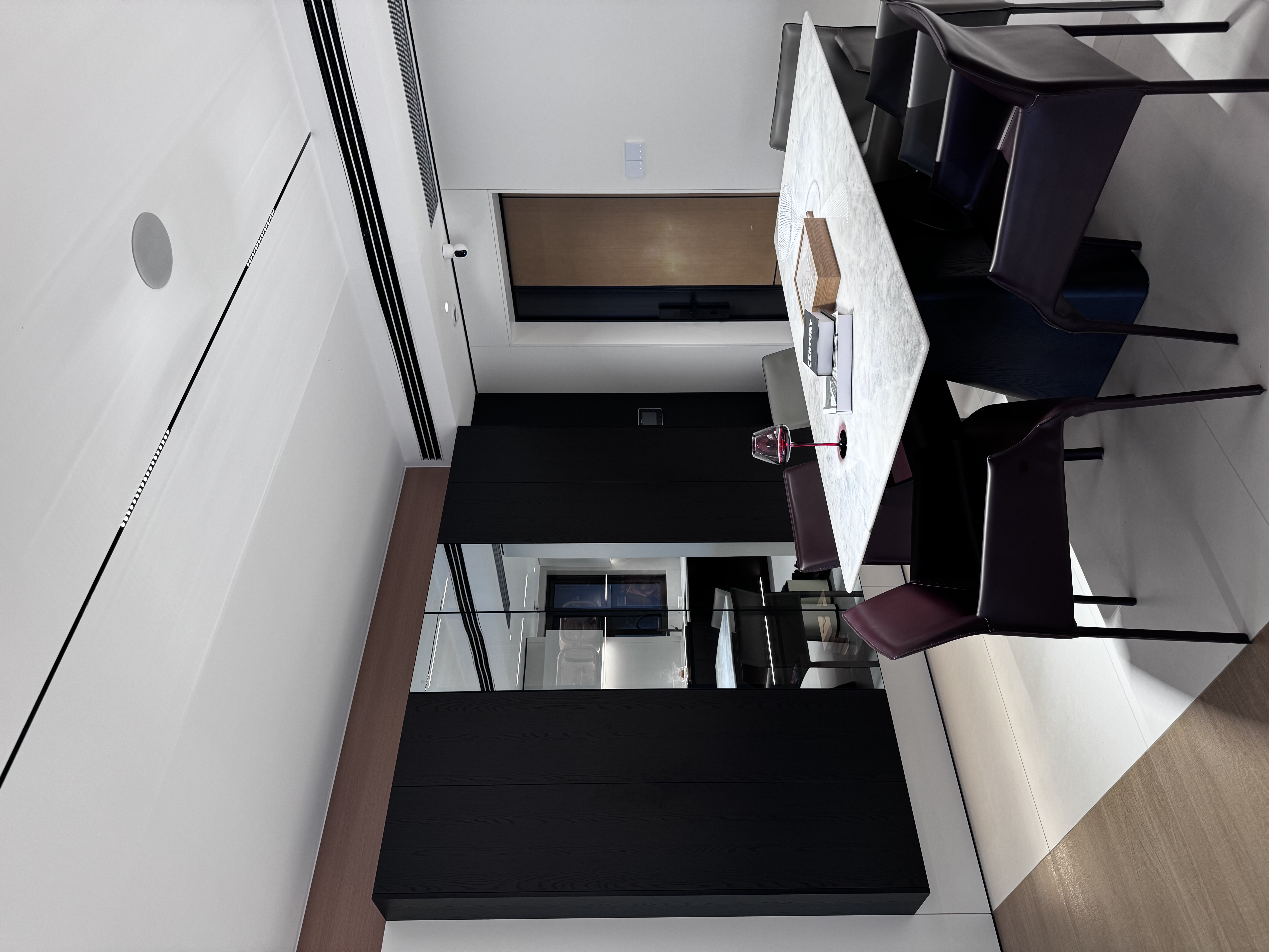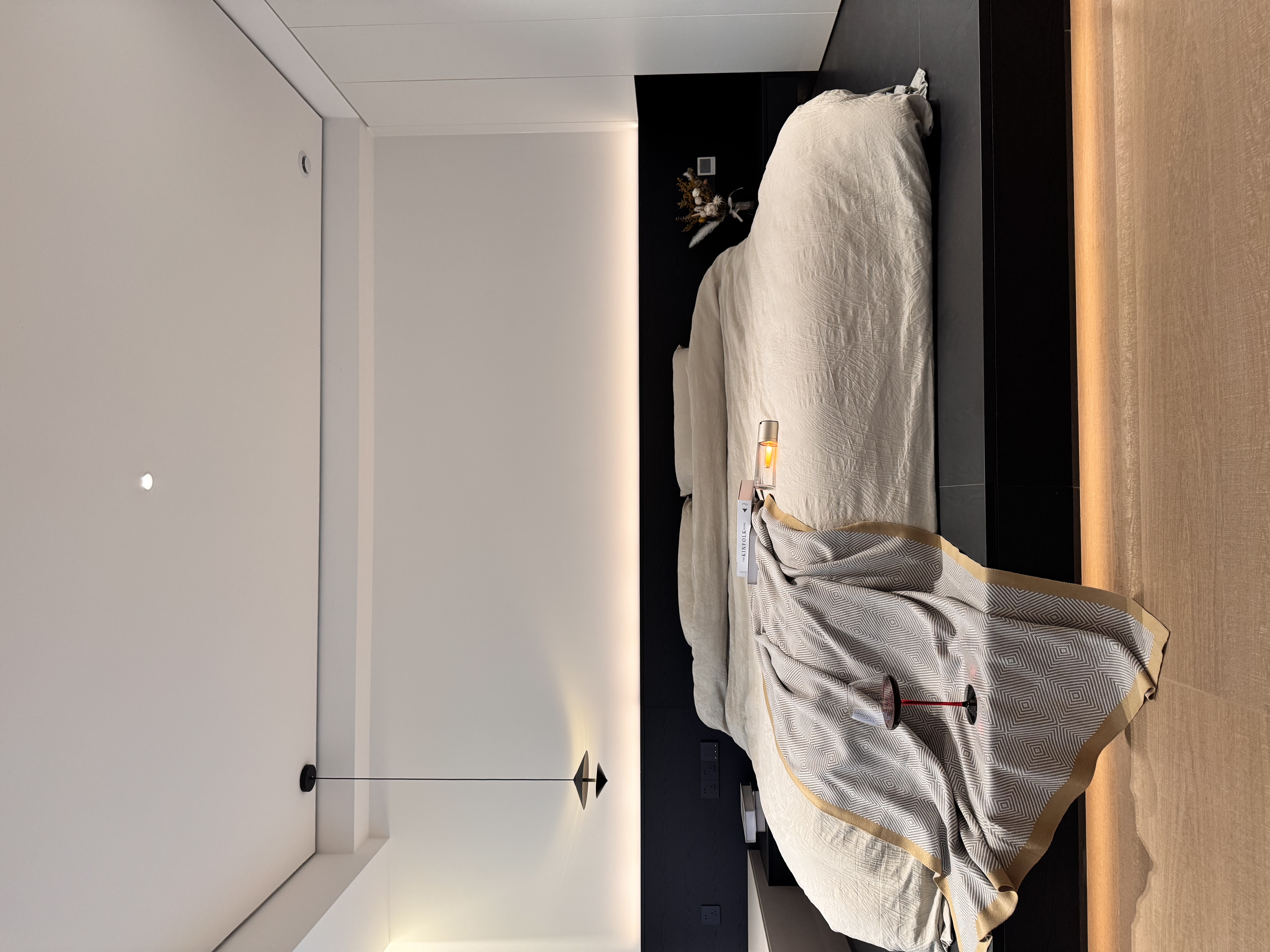 空间意境:打破传统极简风格的冷硬感,以江景为自然叙事核心,将轻奢材质(皮革、大理石、哑光金属)与自然景观做软性衔接,让极简不再是单纯的形式美学,而是成为“框定江景”的空间载体,实现设计风格为自然景观服务的逆向创作逻辑。