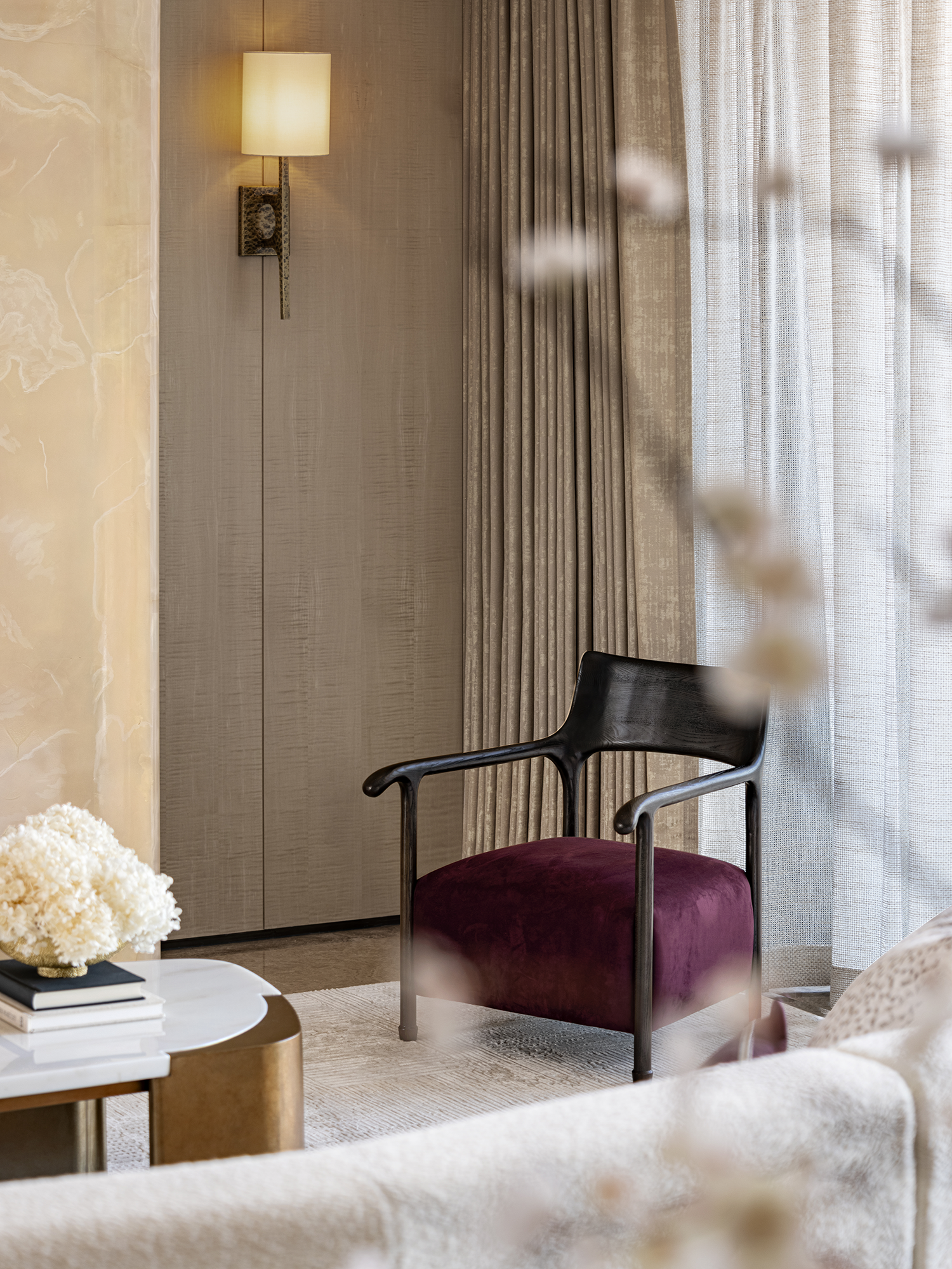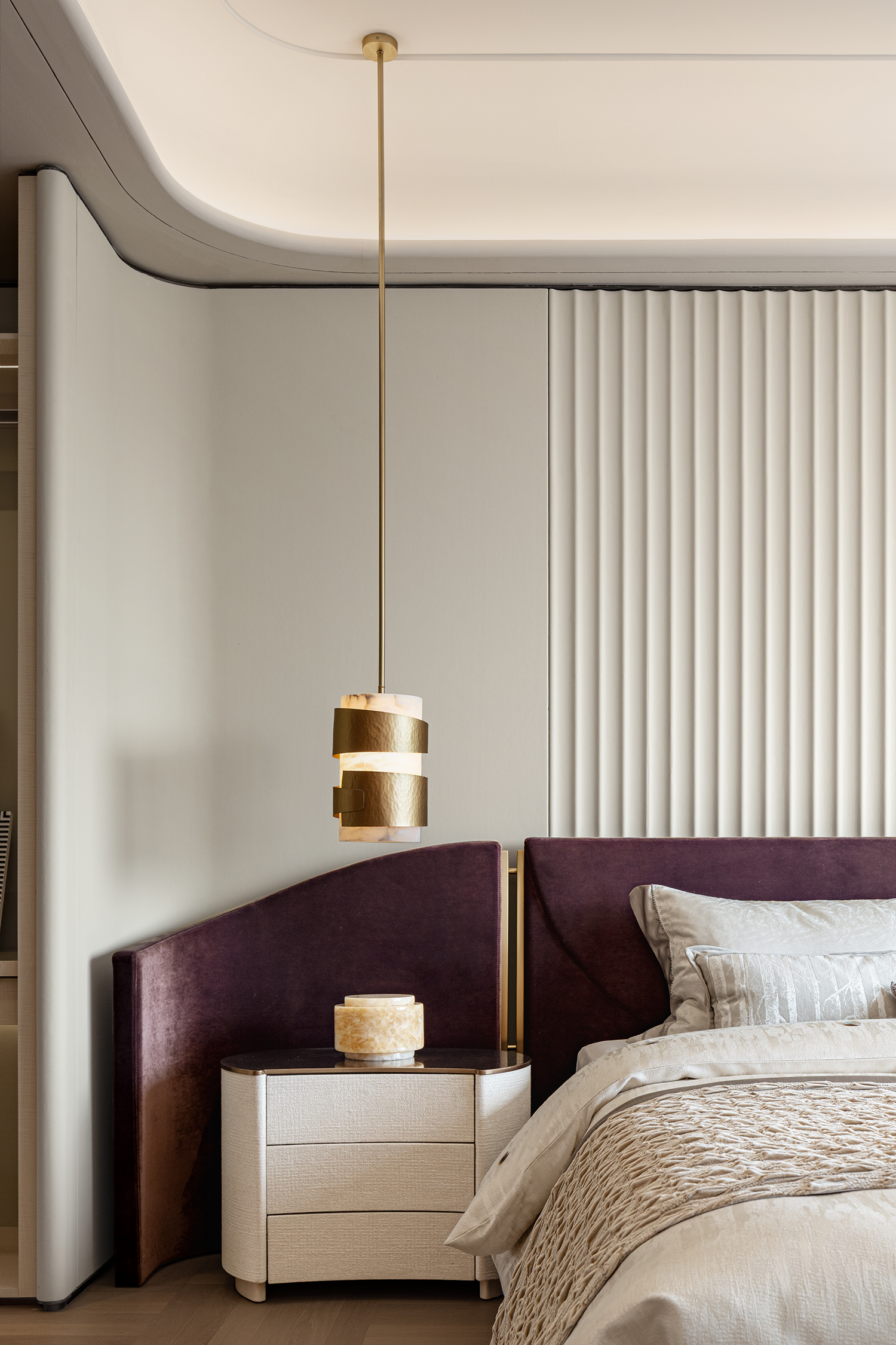 设计满足生活功能之后,使奢华消隐于材质的细微肌理,与静谧的光线。空间承载着时间的触感,为生活注入丰富的情感基调。