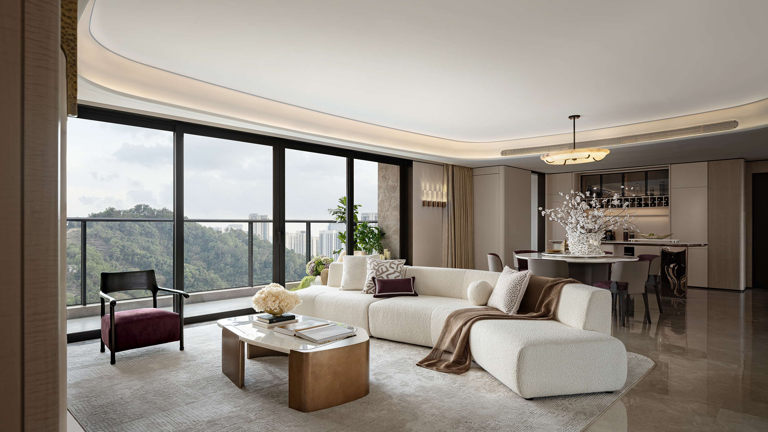 项目定位:项目位于深圳新一代市中心,为城市向北扩容的价值核心区,从自然生态到鹭湖城市人文,奠定鹏瑞鹭璟府传世豪宅的项目基调。当代居所的设计理念,早已跨越了对物理空间的简单构筑,转向追求个性,与内心情感的深度共鸣。设计以鹭江山色为引,深入诗的多样性,演绎鹏瑞·鹭璟府本自具足的优雅与奢华。