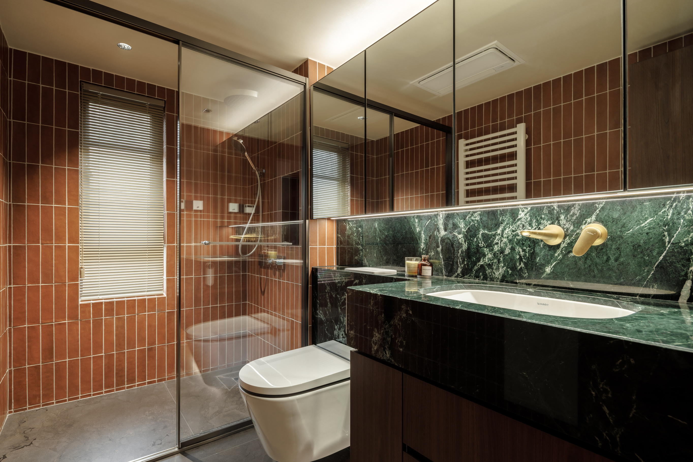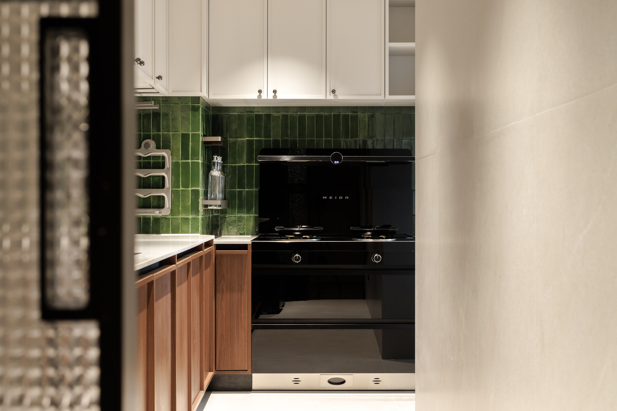 材料上主要采用了偏自然的瓷砖及奢石以及手工砖 打造独一无二的效果