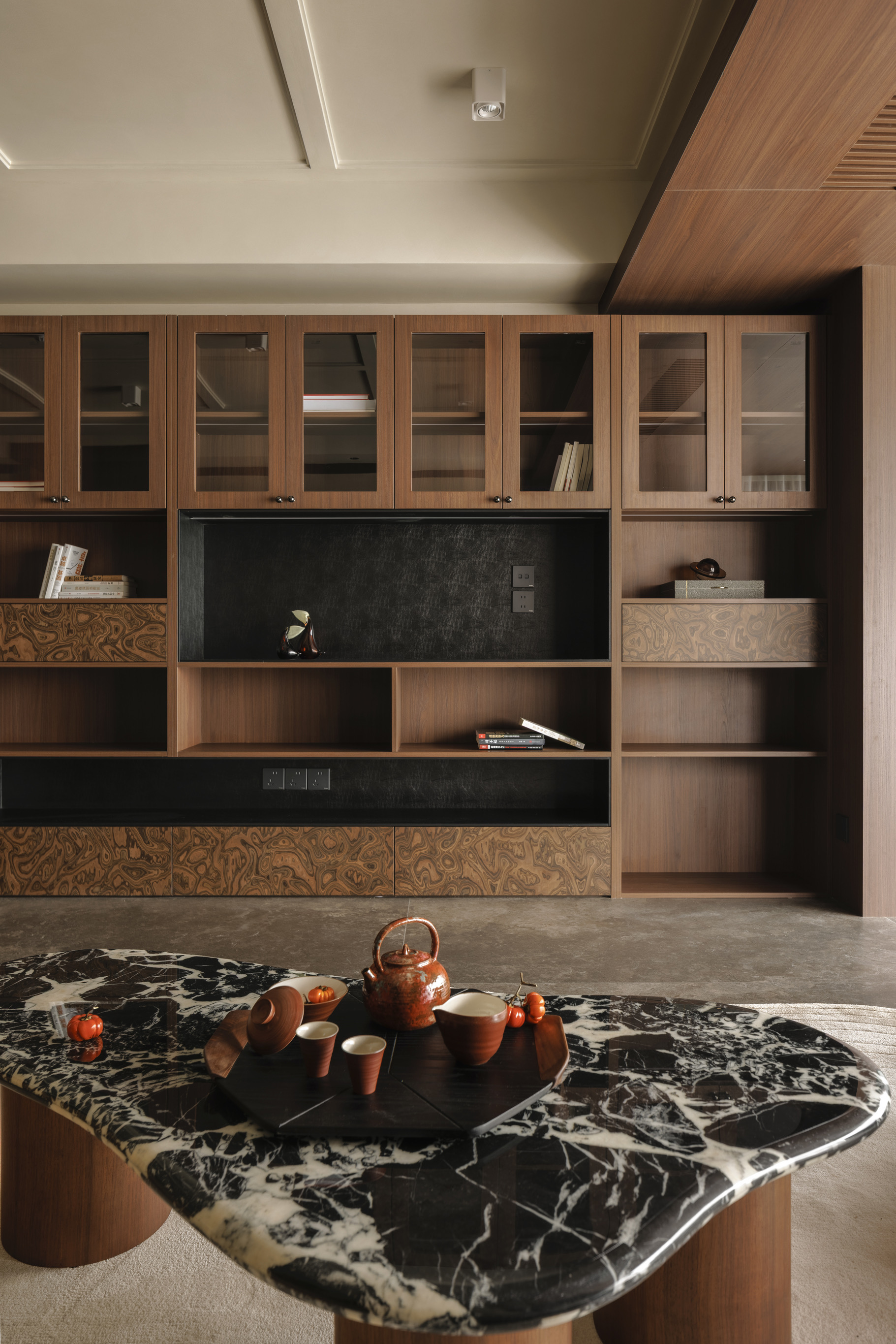 在客户喜欢的老钱风里加入了东方元素 提升空间美感