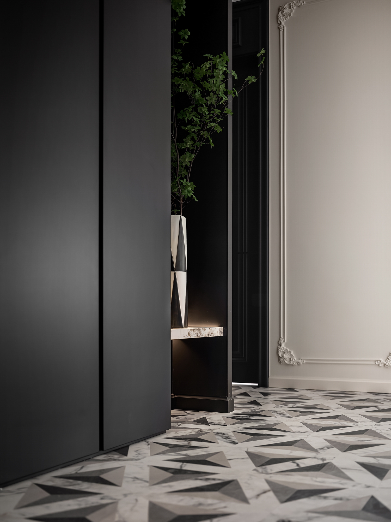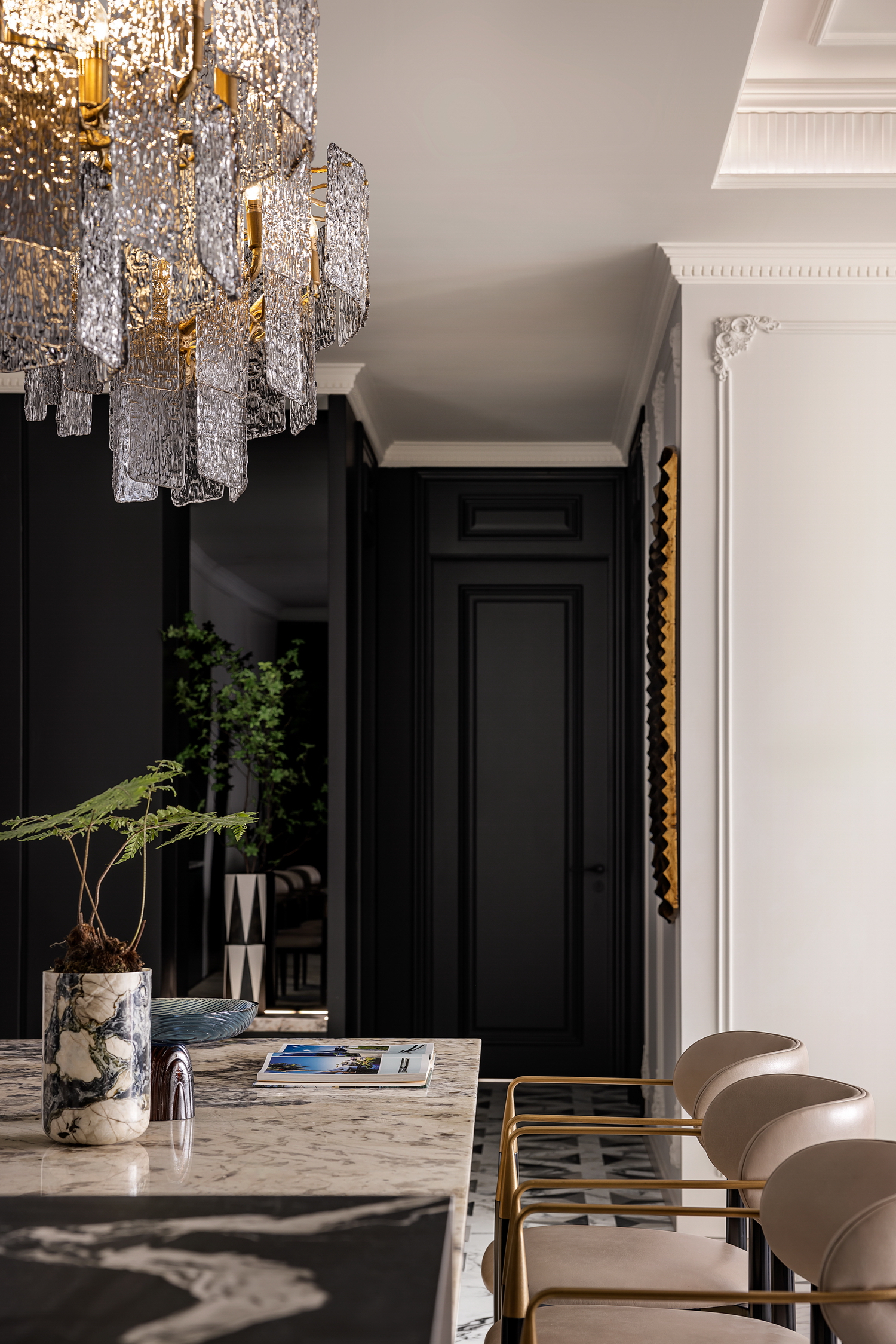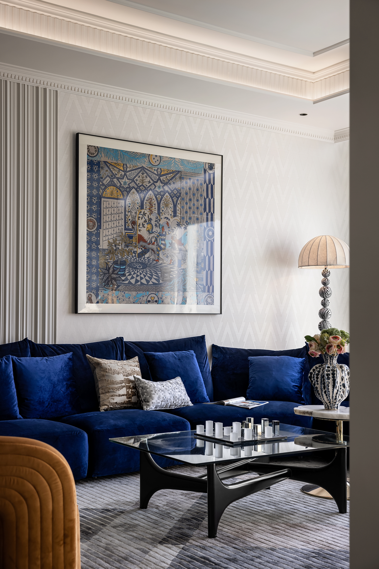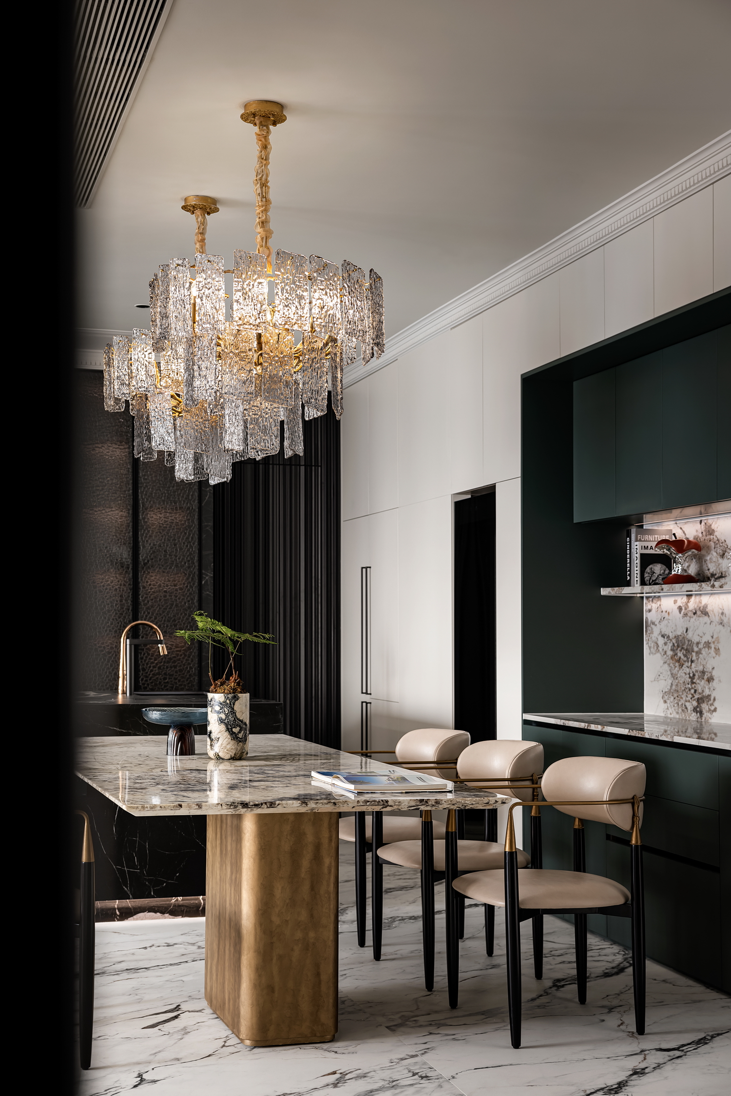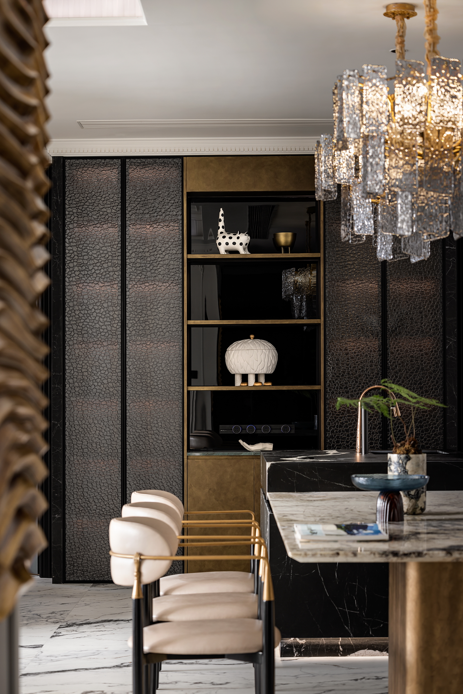 空间意境:Art Deco,起源于20世纪初,是一种融合了现代主义与传统美学的设计风格。它以简洁的线条、几何图形和华丽的装饰元素为特点,既展现了现代的简洁感,又不失奢华的气质。这种风格的精髓在于细节与整体的和谐统一,每一个角落都透露出精致与品味。