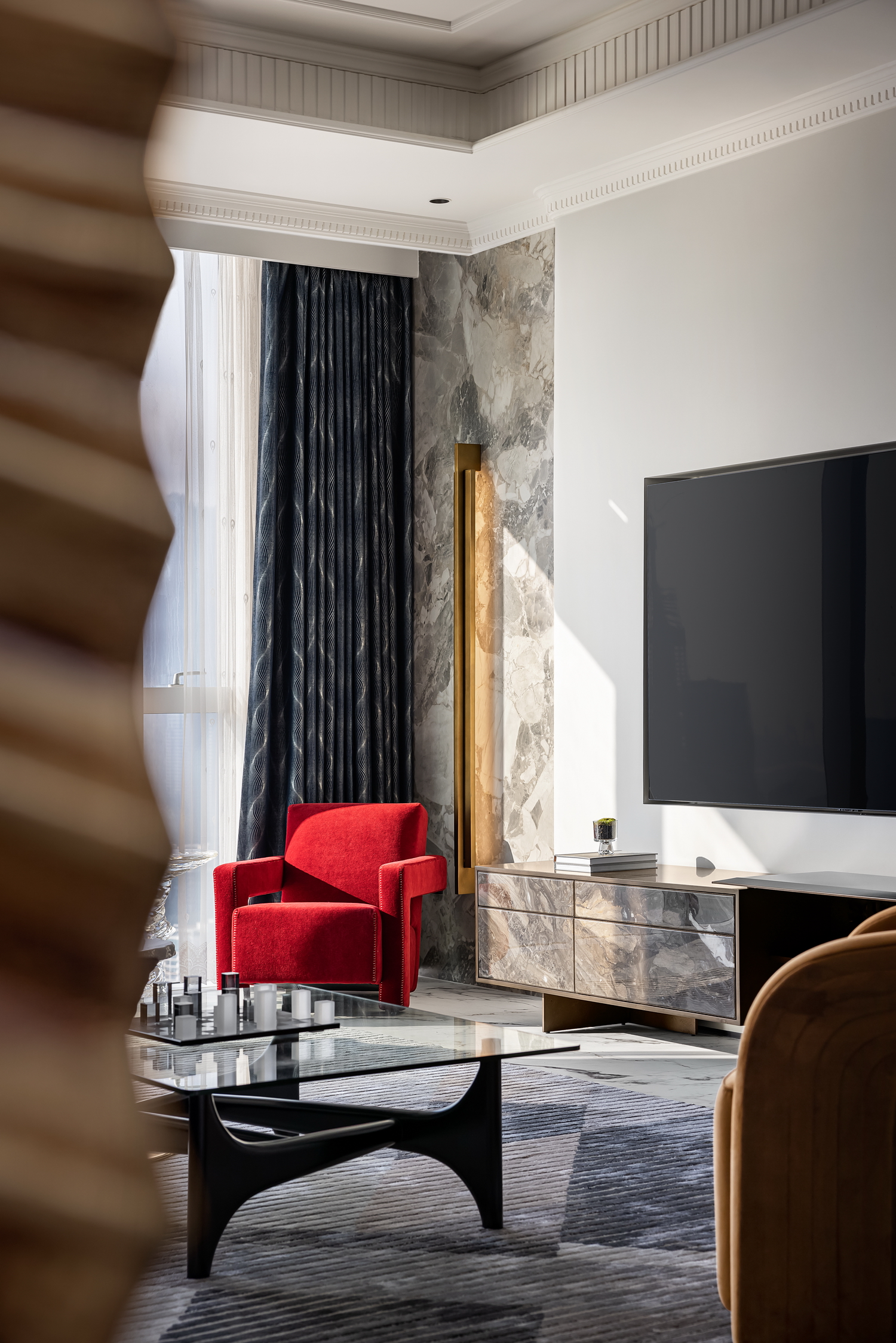 Art Deco风格的魅力还在于对细节的雕琢。金色的门把手、几何图案的地毯、金属质感的装饰品……这些看似微不足道的元素,却在不经意间提升了整个家的质感,让艺术融入生活的每一个细节。 -