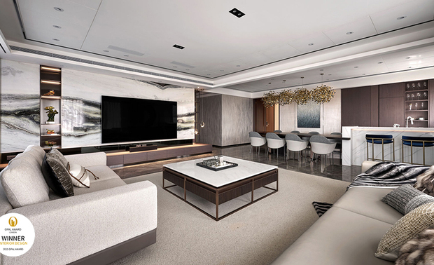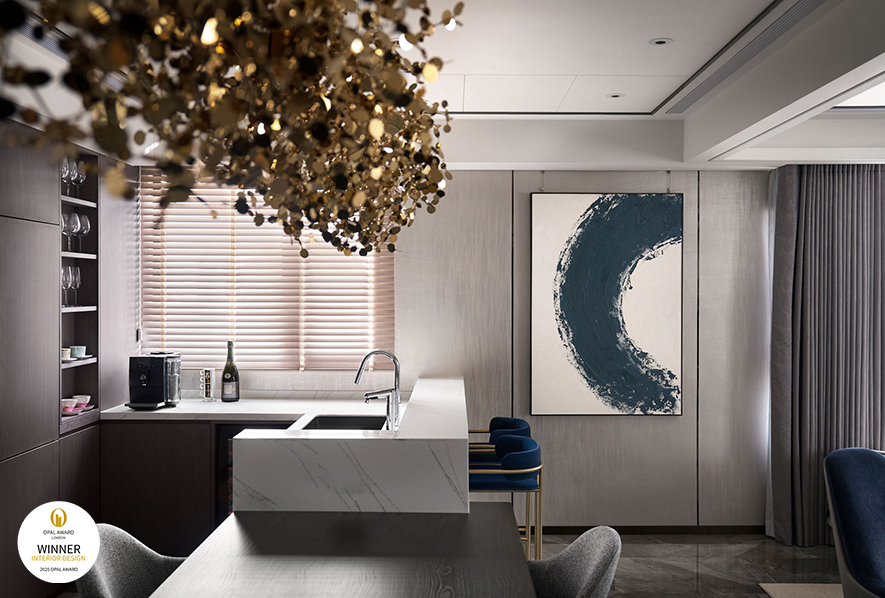 OUTSTANDING PROPERTY AWARD LONDON,OPAL(英国伦敦杰出地产大奖)由全球知名企业集团Farmani Group组织,并以招揽全球最佳建筑师、室内设计师与房地产开发商为目标,在创造异业菁英联合平台的同时,找寻各地最富创造力、革新感、社会影响力与永续性的设计方案。在本届2025年度赛事中,简兆芝室内设计 主持设计师 简兆芝 选择以住宅《璞玉天成》参与角逐,作品中运用两户合併的空间优势,以灰色基调搭配镀钛金属元素,结合温润木质与米白大理石,在繁华都市中筑起一片静谧桃源;其公领域以圆形、半圆形吊灯象徵「圆满」,回应一家四口对情感交流的渴望;私领域则依据家庭成员个性,透过纹理壁纸与丝绒窗帘,打造专属于每位居者的精緻场景,成功呼应大赛「找寻创造力、革新感」的宗旨,荣获「Winner」佳绩!