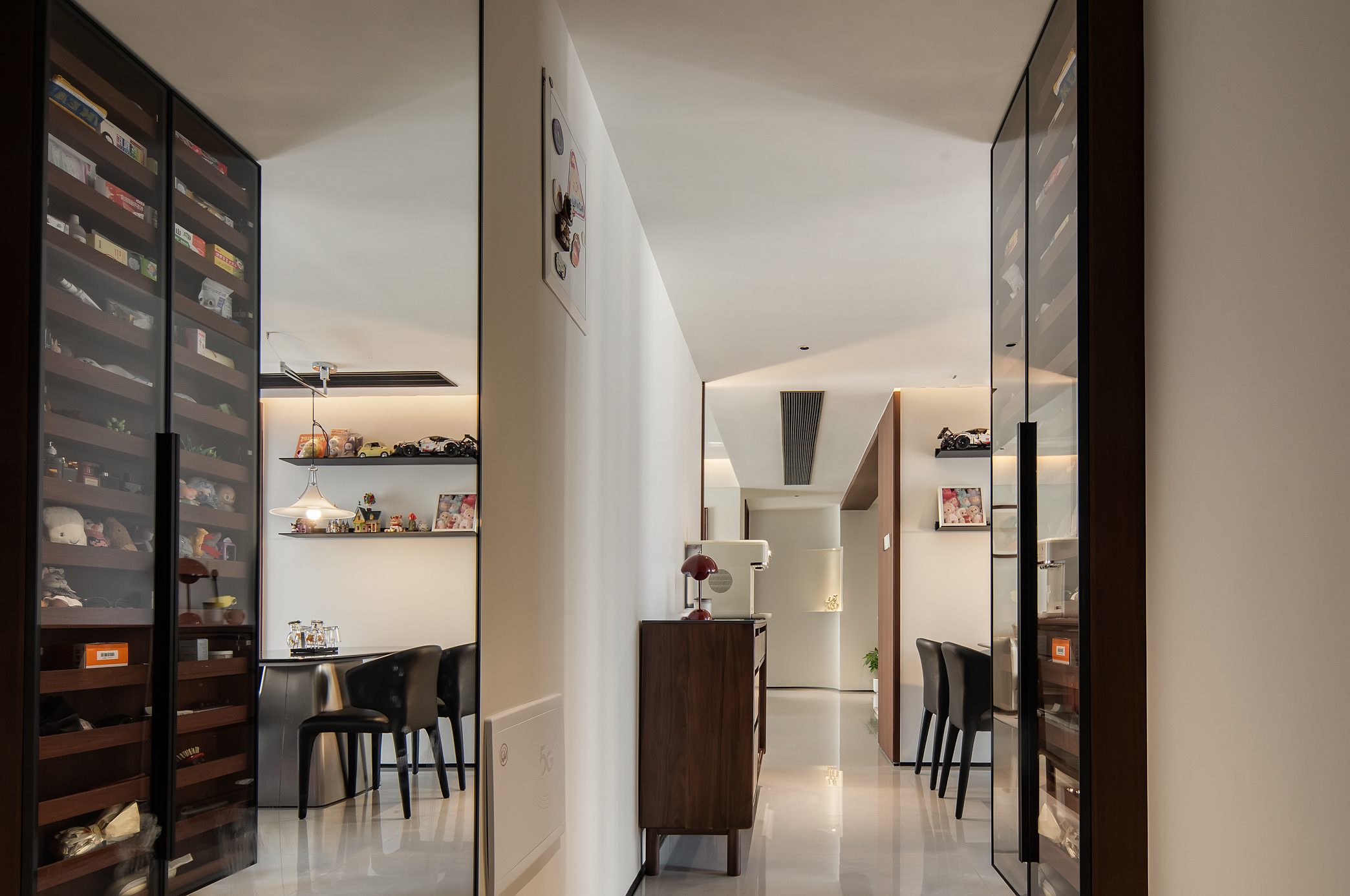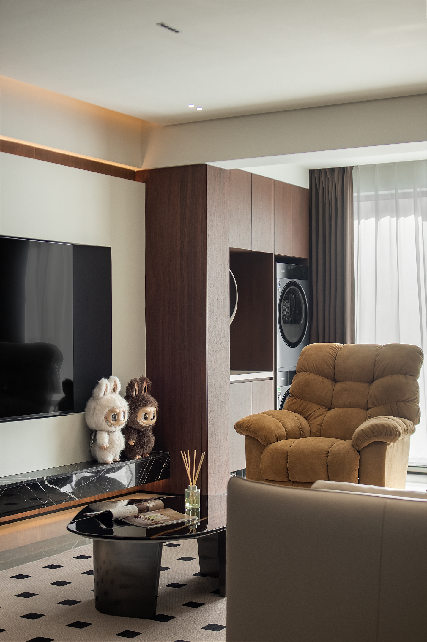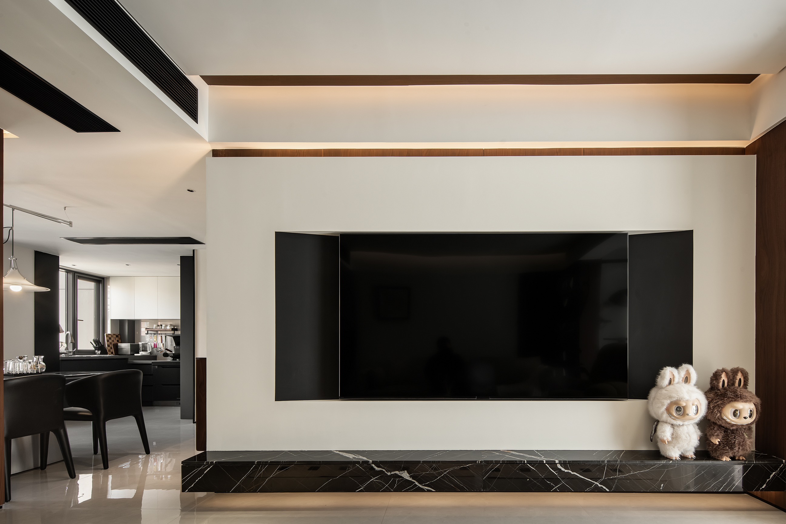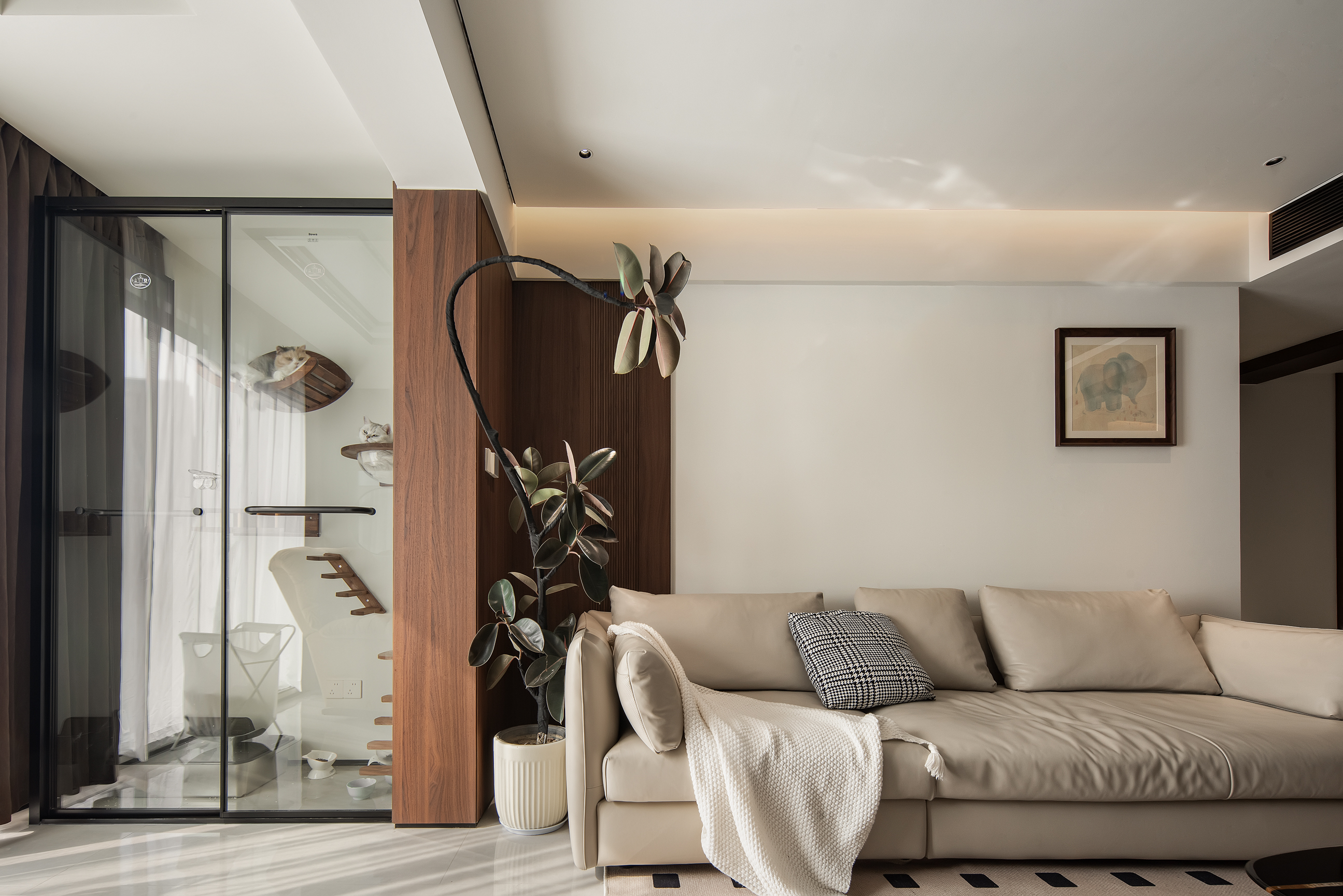 空间意境:本次意式极简设计在环境风格上打破传统极简的冰冷刻板与单一质感局限,以意式经典简约线条为基底,融合南昌本土居住的环境特征与生活需求创新营造空间氛围,弱化纯冷调几何布局的疏离感,融入温润的原木肌理与低饱和大地色系做环境质感调和,让简约线条与温润材质形成视觉平衡。