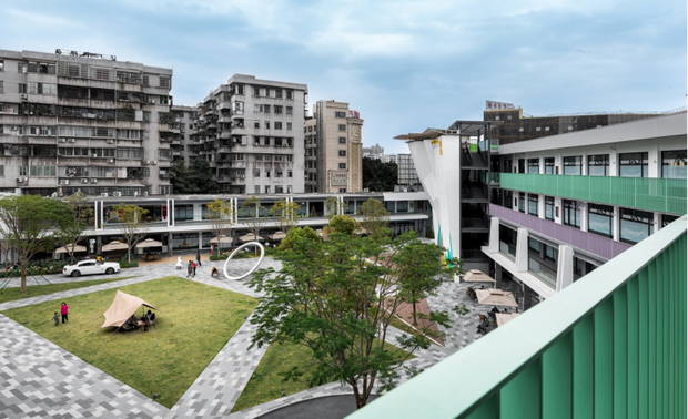 改造后,场地成为商务及社区兼顾的公园。既为园区内办公人员提供商务活动的室外空间,同时开放的公园边界也引导周边居民和路人进入场地活动,此提供社交、休息、亲子、锻炼、玩耍,以及不定期举办的各类活动,而场地的开放与包容让每个参与者都能平等的享受安静和休憩的机会。