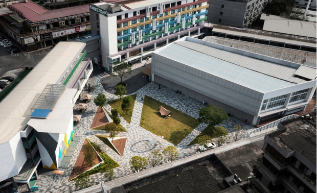 ▲三角休闲看台是休憩及观赏攀岩等活动的绝佳场地