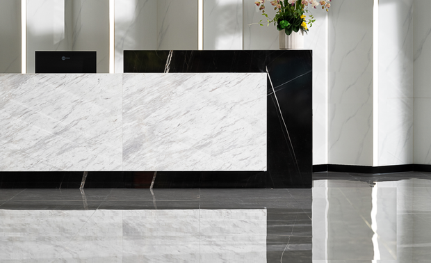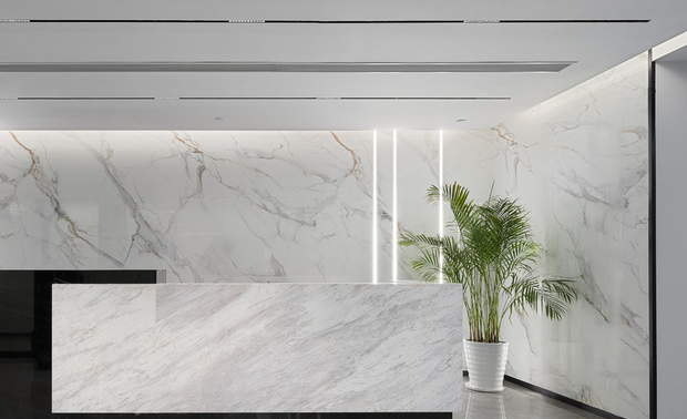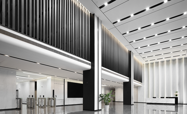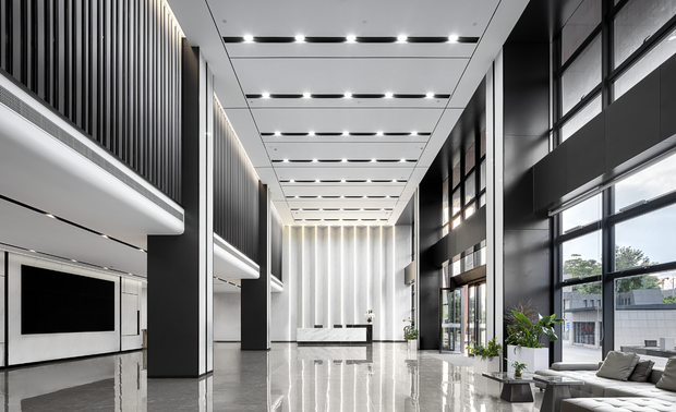 进入大厦,写字楼大堂设计简约有格调,宽敞又明亮。黑白灰的配色严谨又不是高级。光影自如穿梭,而光源埋伏其中,“见光不见源”,让空间更加的空灵多变,让人们感受到尊贵与舒适。