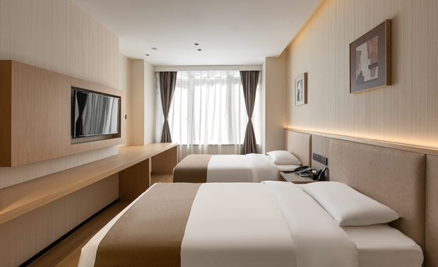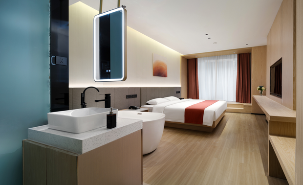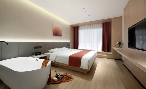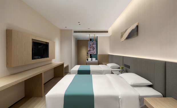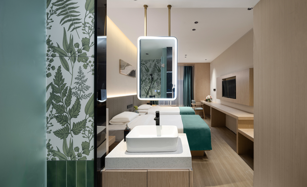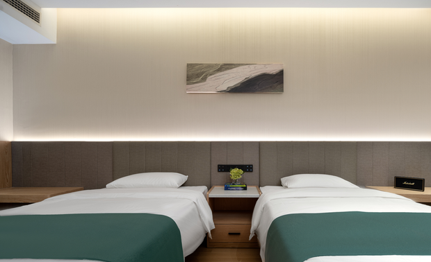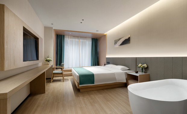 以绿色为主色调的客房,营造一种城市绿洲般的宁静氛围,为旅客提供一个身心放松的空间。绿色象征着生机与希望,能够为在重庆逗留的旅客带来愉悦的心情,让他们度过一段愉快的休闲时光。选择入住绿色调的客房,便能感受到自然的和谐与宁静,从而在旅行中放松身心,尽情享受在重庆的美好时光。