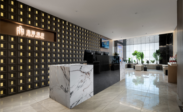 步入翡丽酒店,旅客将立刻被整面可变色的LED背景墙所吸引,一整面多彩可变的LED背景墙,它不仅为接待区注入了活力与俏皮,还巧妙地展示了重庆这座8D魔幻城市的独特韵味。