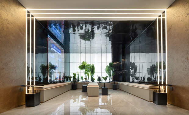 同时,将酒店的社交特性融入到设计中,以酒店公共区域为依托,通过精心规划的灯光、深渊镜和镜面金属等元素在丰富色彩变幻的同时为酒店增添时尚气息,还创造了一个放松的社交场所,满足了住客们的需求。同时,为线上社交平台的达人们提供了拍照和打卡的空间,这些设计策略有效地提高了酒店品牌的认知度。