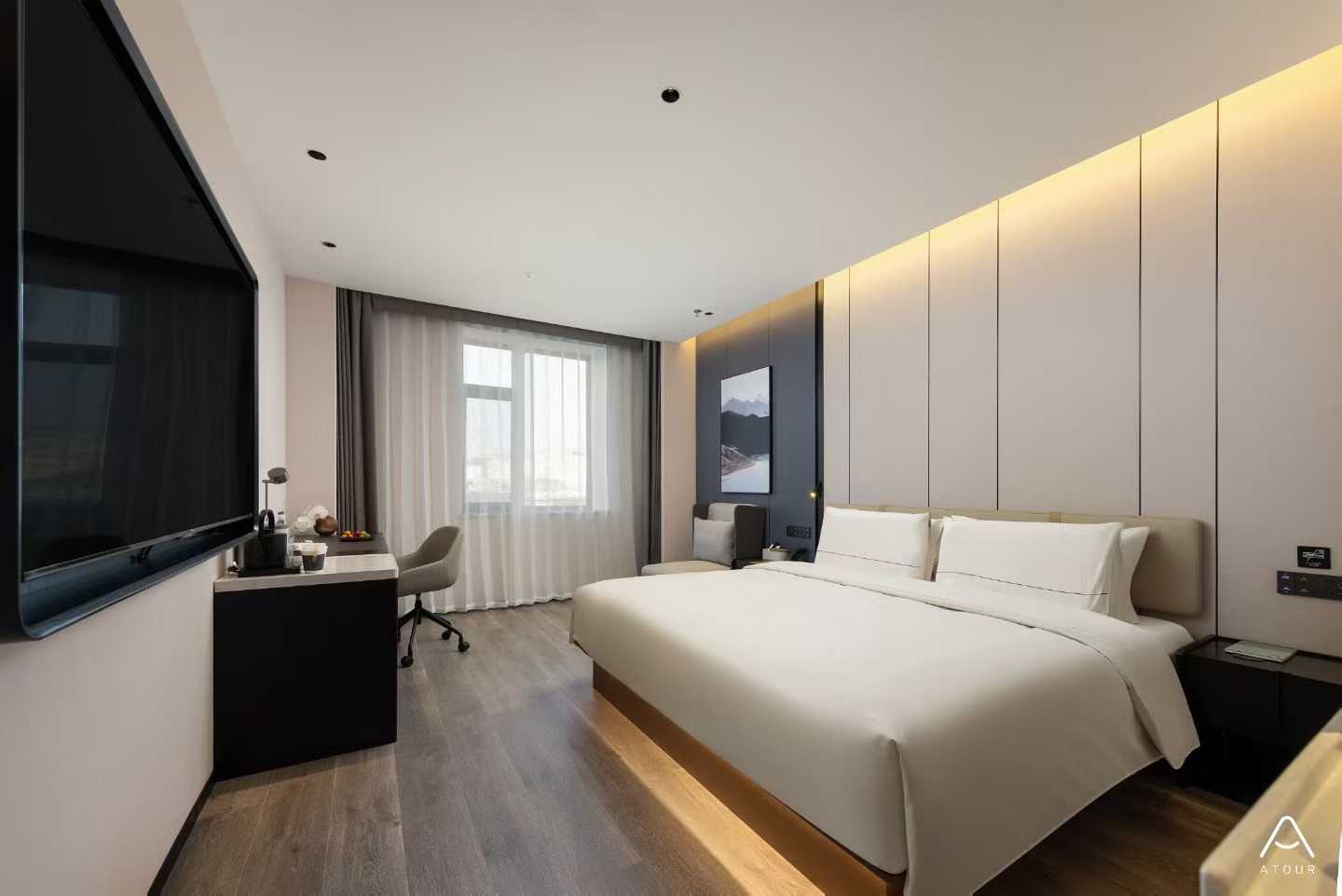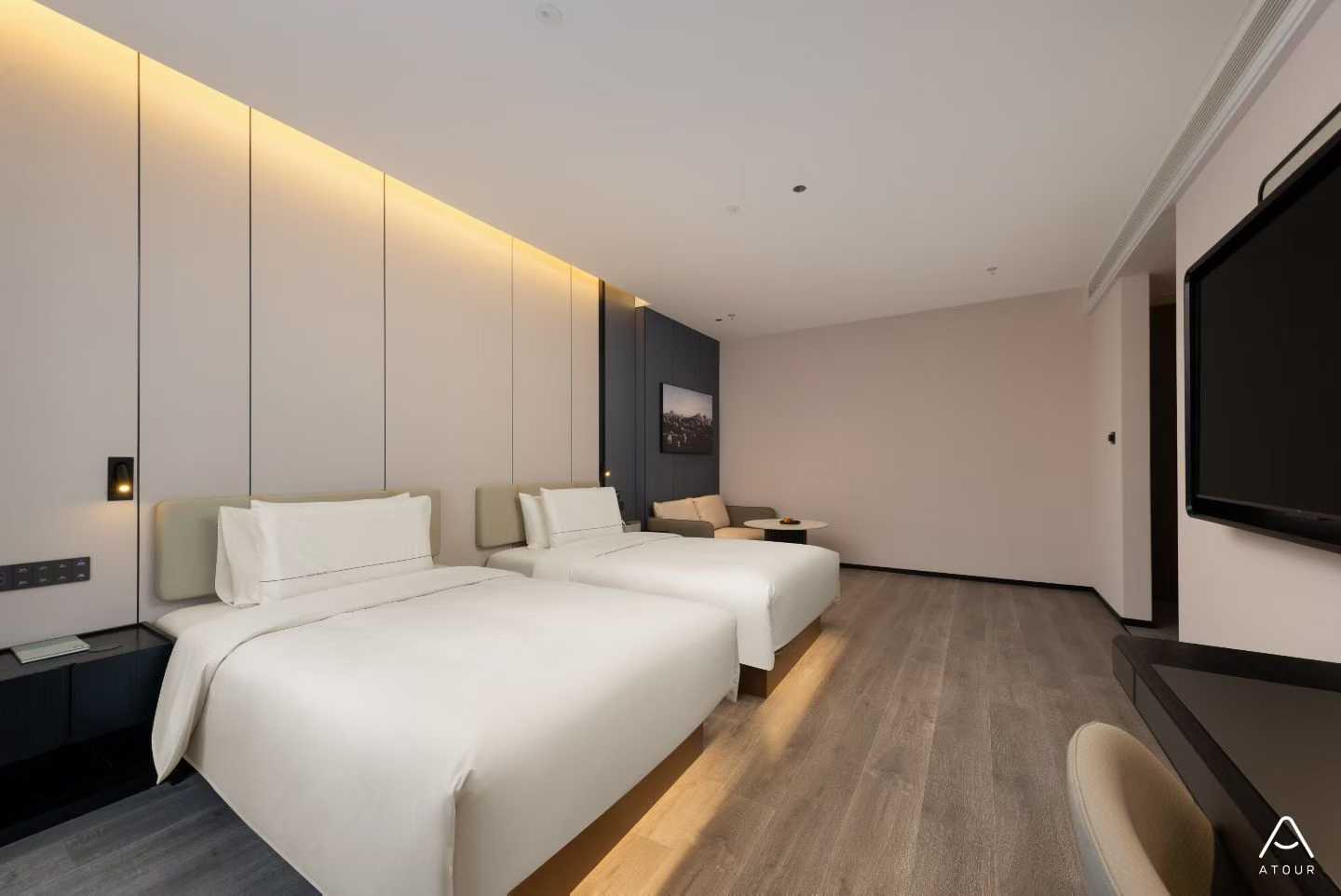 “止宿鸳鸯鸟,宿归沙案湄”,亚朵的客房以“宿归” 为名,取自寒山诗句,寓意 “好好休息的地方”。创造“让眼睛舒适、身体妥帖、心灵平静”的休憩氛围,让旅人在奔波后,真正卸下疲惫。