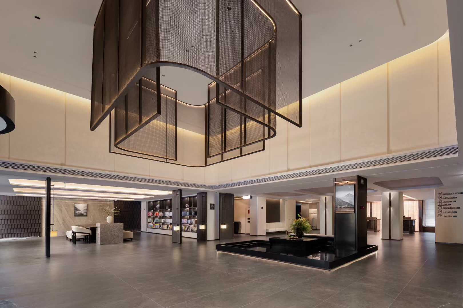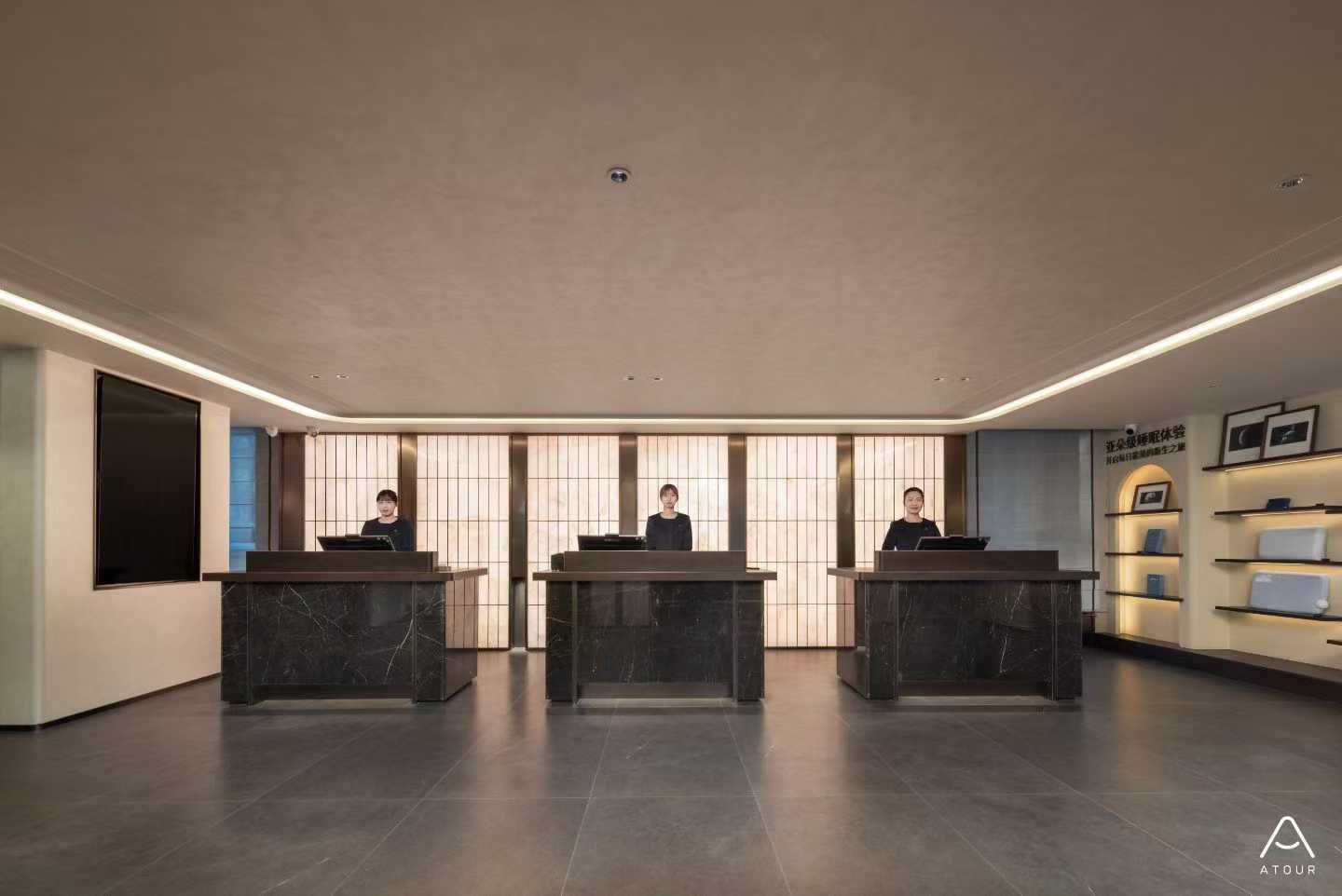 旋门而入,映入眼帘的不是标准化大堂,静水、花束、艺术漆、高空镂空金属、静纹理石材穿插交融,一种久违的宁静瞬间包裹了每一寸感官。这是沈阳中街故宫长安寺亚朵酒店,一个都市旅人洗去“班味儿”的疗愈之所。