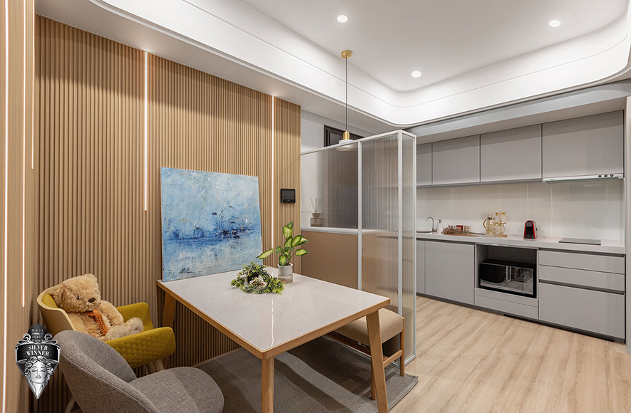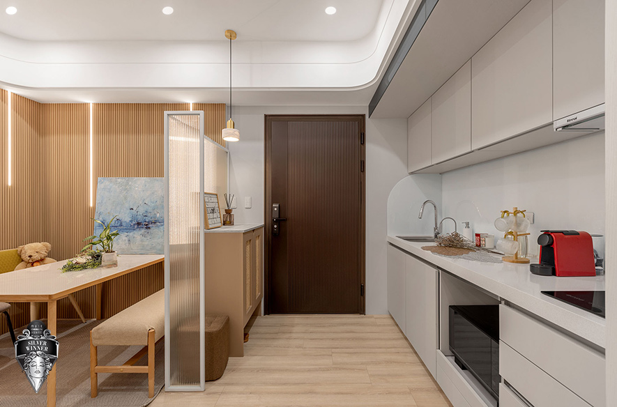 9美国 MUSE Design Awards致力于发掘全球设计缪思,涵盖建筑、室内、时尚等领域。2026年共吸引来自124国、超过十万件作品参赛,由200多位专业评审严格遴选,为国际设计界的重要指标。在作为设计师自用示范宅兼办事处的《光落之境》中,艾美幸福设计 设计总监 许捷甯 活用大面积长虹玻璃、镜面及大理石等建材,透过其反射特性延展空间纵深感,配合搭载多样弹性功能的吧檯、榻榻米区,以实际作品达至宣传品牌可将小宅化作视野开阔、机能充沛场域的效果;贴合示范宅和办事处定位的匠心设计,亦紧扣赛事着重创新巧思的核心理念,成功赢得「银奖」佳绩!