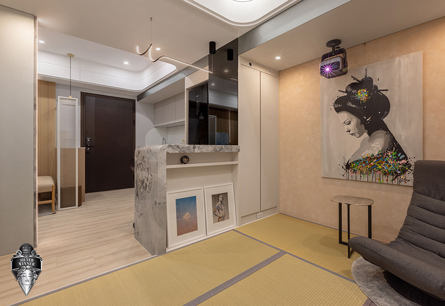 美国 MUSE Design Awards致力于发掘全球设计缪思,涵盖建筑、室内、时尚等领域。2026年共吸引来自124国、超过十万件作品参赛,由200多位专业评审严格遴选,为国际设计界的重要指标。在作为设计师自用示范宅兼办事处的《光落之境》中,艾美幸福设计 设计总监 许捷甯 活用大面积长虹玻璃、镜面及大理石等建材,透过其反射特性延展空间纵深感,配合搭载多样弹性功能的吧檯、榻榻米区,以实际作品达至宣传品牌可将小宅化作视野开阔、机能充沛场域的效果;贴合示范宅和办事处定位的匠心设计,亦紧扣赛事着重创新巧思的核心理念,成功赢得「银奖」佳绩!