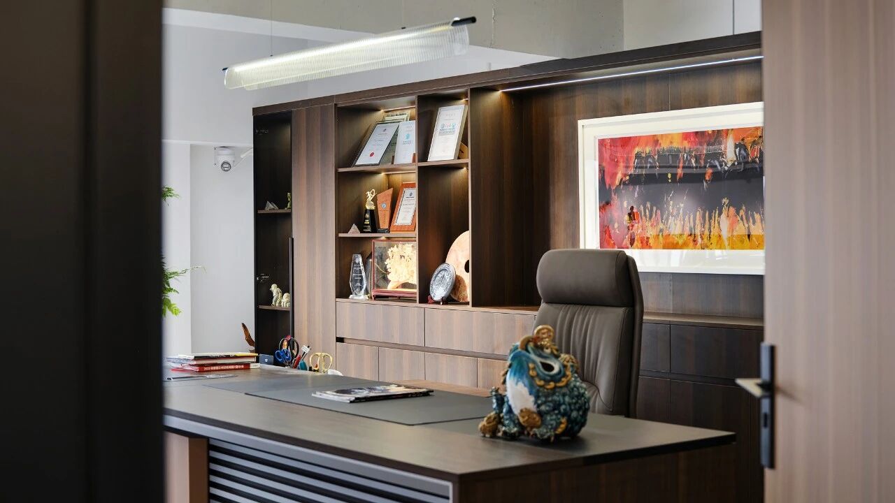 从员工办公室的通透绿意,到董事长办公室的沉稳格局;
