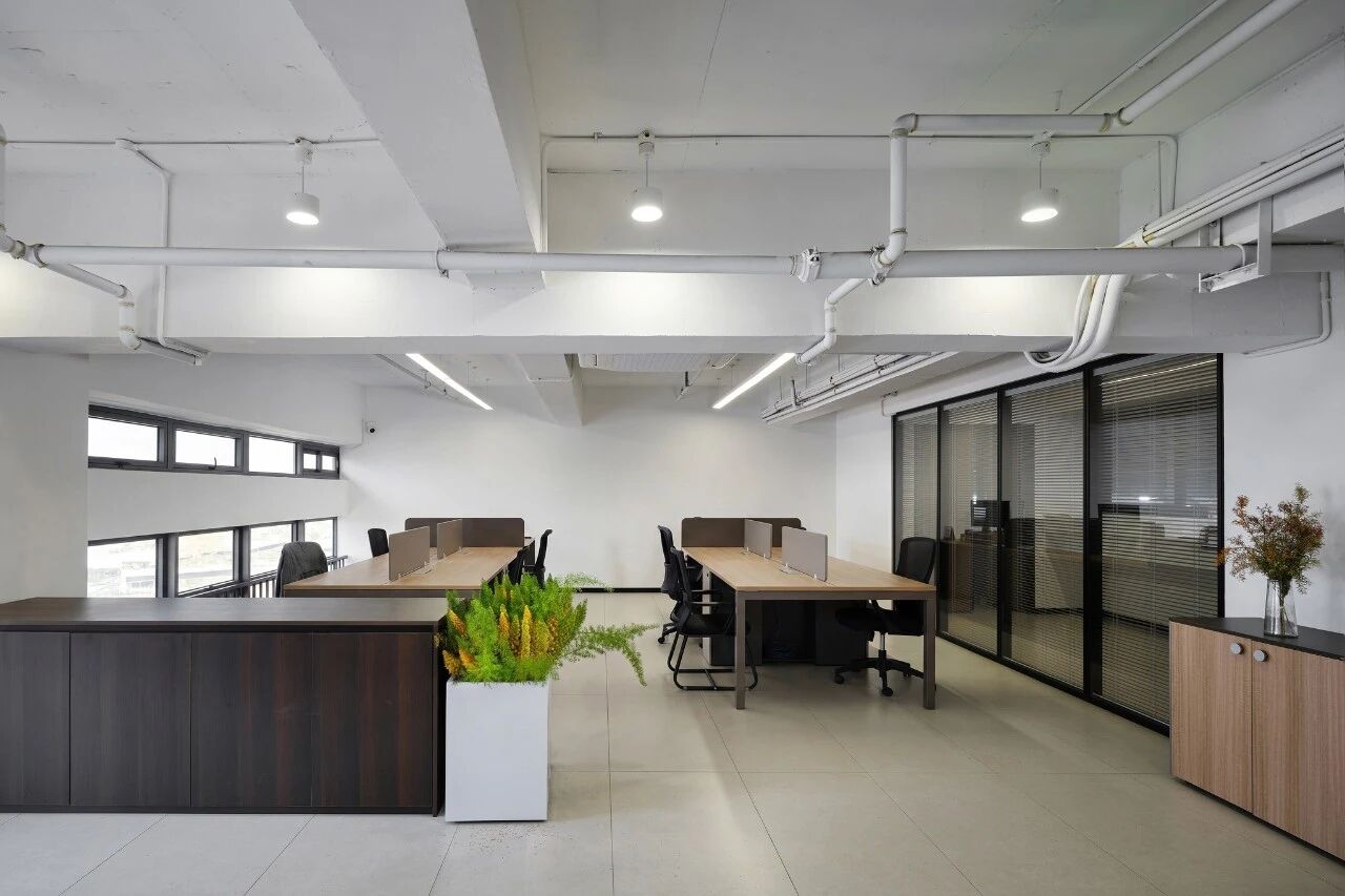 浅色系的地面与墙面,搭配原木色的家具,在明亮的自然光线下,营造出清爽、专注的办公氛围,让效率与舒适在此共生。