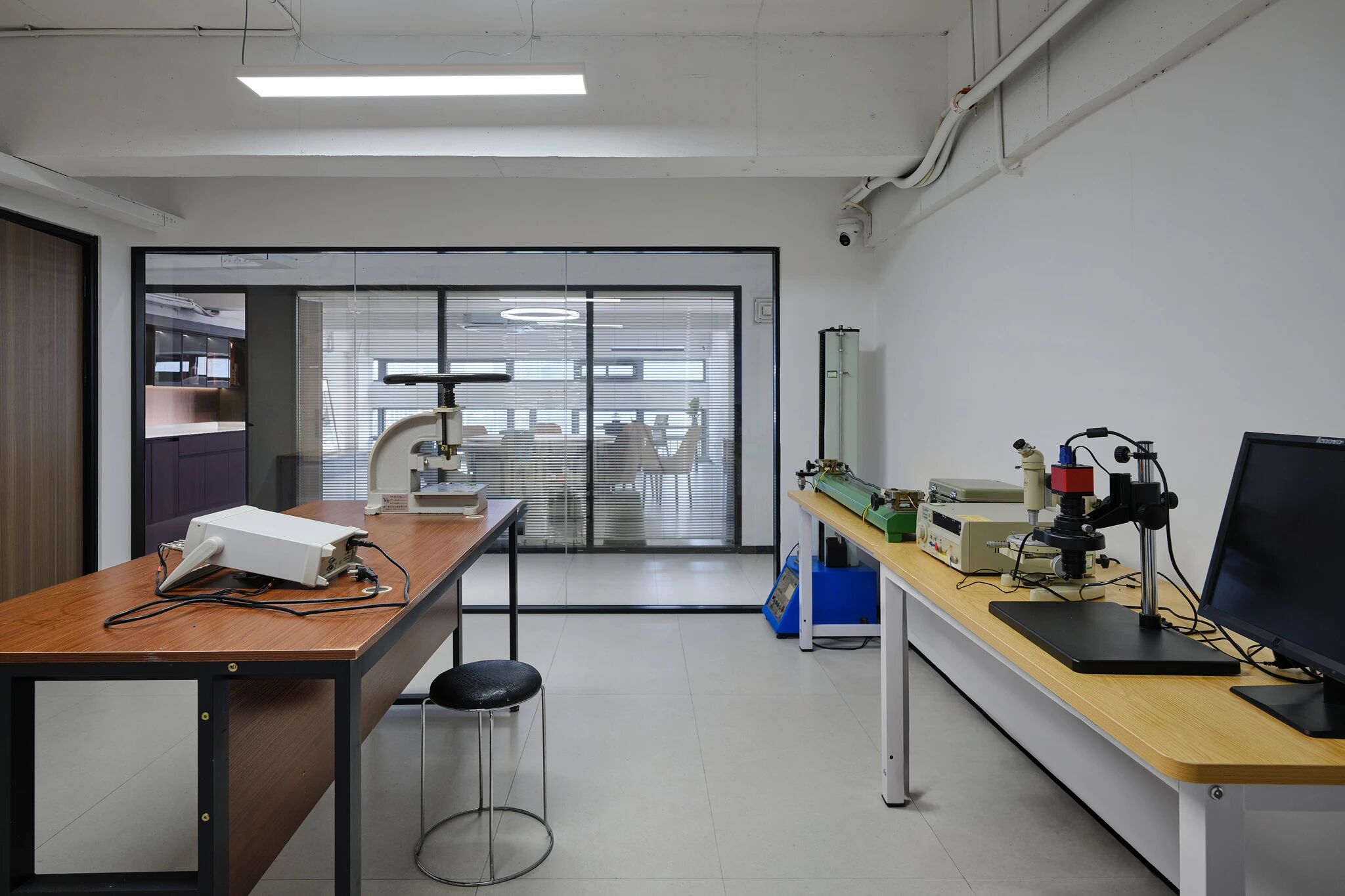 质检间以清晰的动线规划与充足的照明,确保每一道工序都精准、高效。我们注重功能的实用性,同时通过简洁的设计,让严谨的质检工作也能在有序、舒适的环境中开展,彰显声王科技对品质的极致追求。
