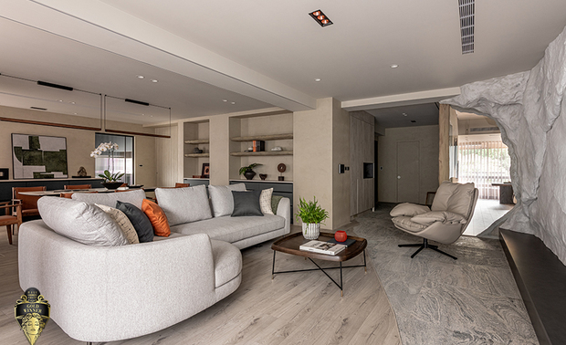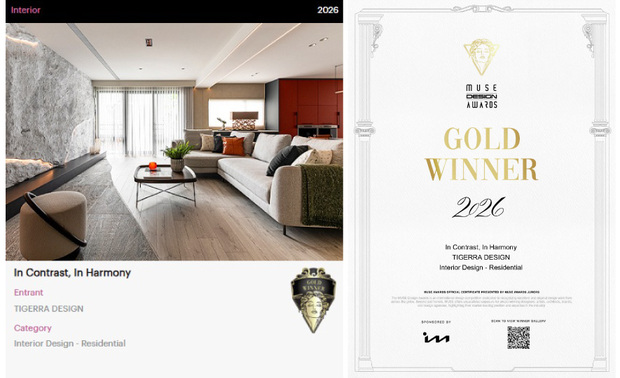 美国MUSE Design Awards致力于发掘全球设计缪思,涵盖建筑、室内、时尚等领域。2026年共吸引来自124国、超过十万件作品参赛,由200多位专业评审严格遴选,为国际设计界的重要指标。虎宙设计 设计总监 梁诗敏 深入探究屋主二人的喜好特质,藉由双客厅的格局设计,规划一处飘蕴朴实禅意、一处鲜明吸睛的迥异公领域,分别回应男女主人对沉心自然、创新艺术的品味追求,同时于机能层面满足各自的商业会谈与社交茶叙需求;复合型住宅《岩境‧橙曦》不仅贴合居者们的生活习惯,亦对应本赛事讲究的「创意巧思及创作深度」核心,顺利斩获「金奖」出色佳绩!